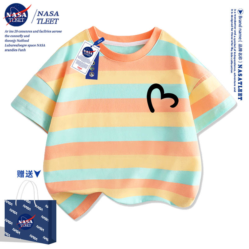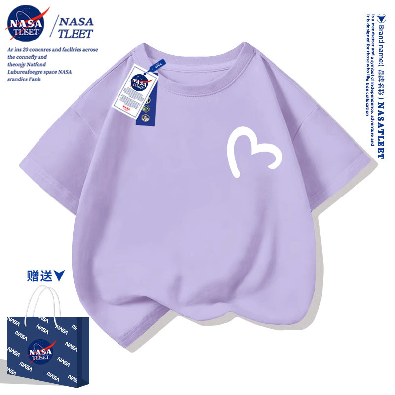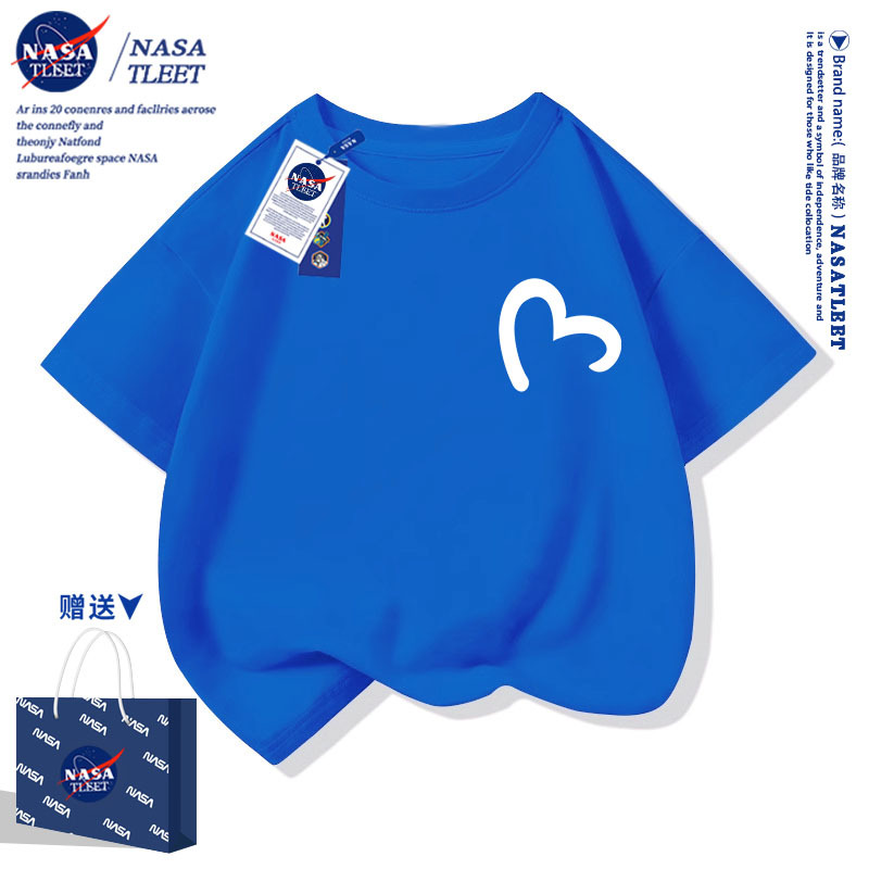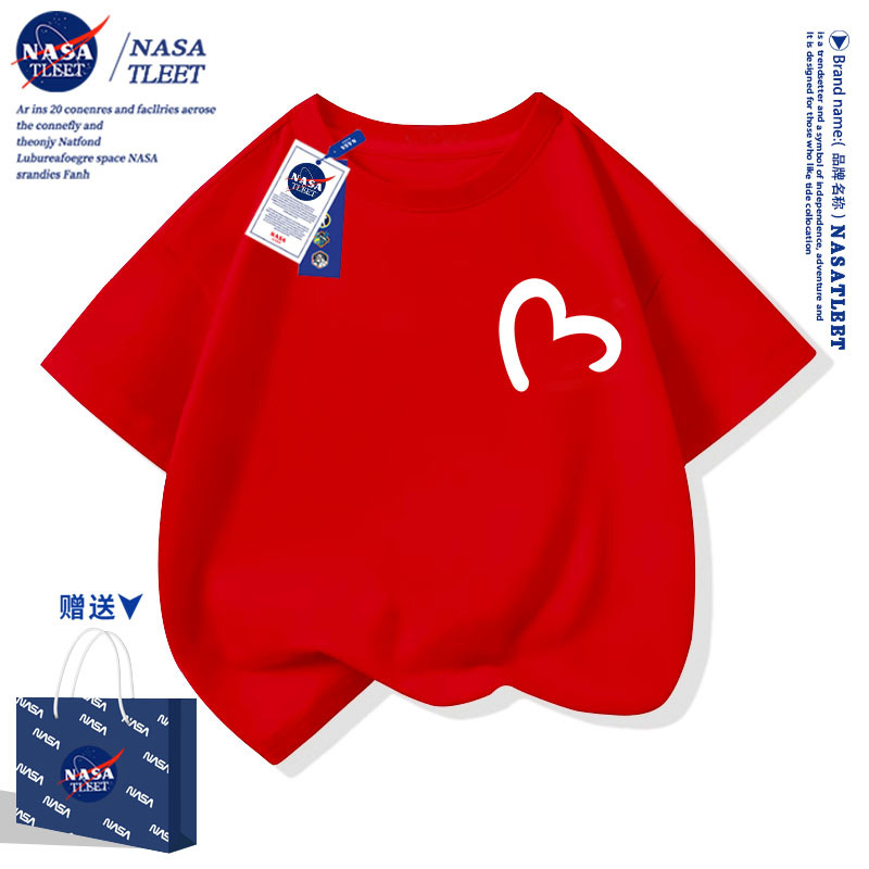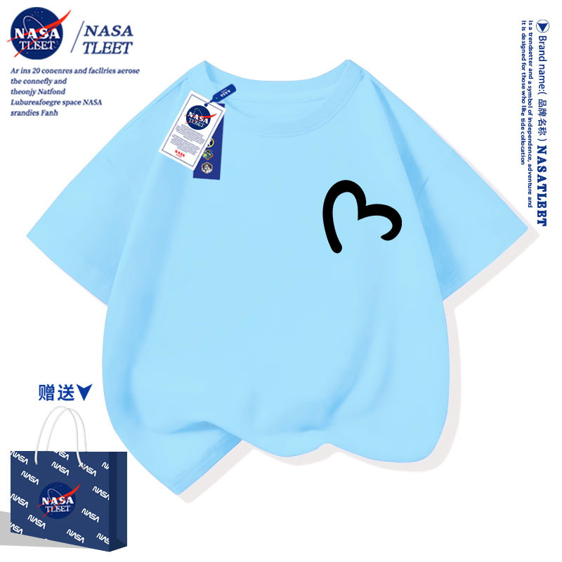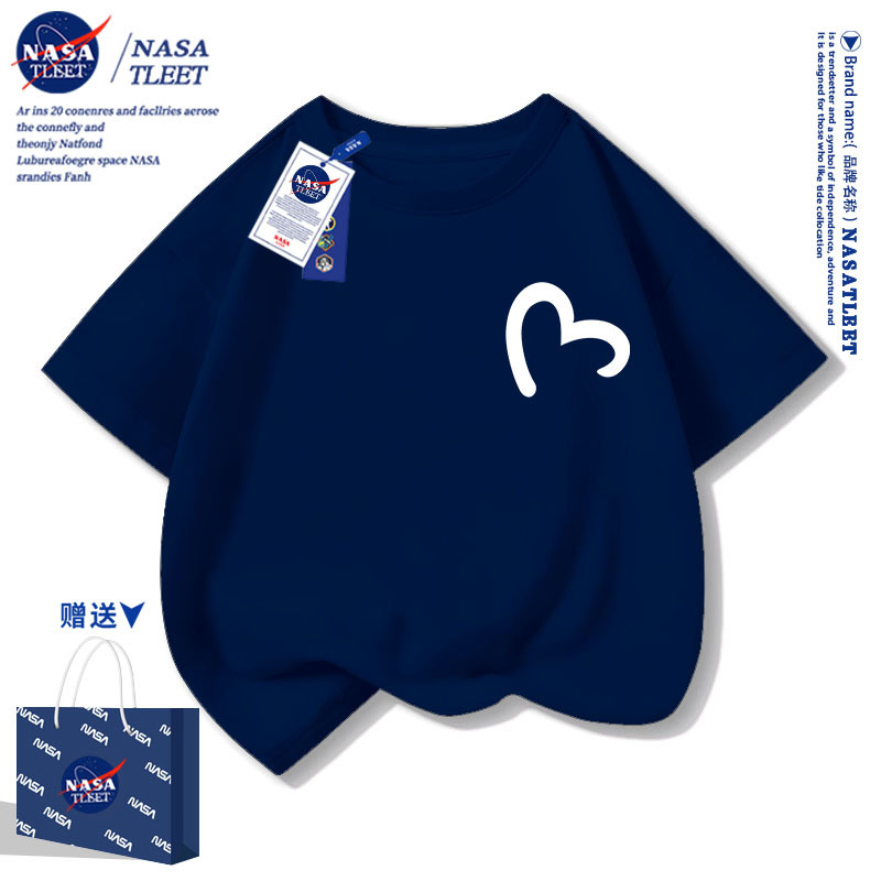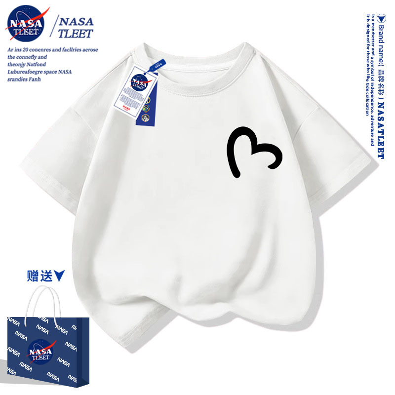 NASA 공동 브랜드 트렌디 브랜드 심플 패션 반팔 남성 및 여성 아동복 여름 새로운 면베이스 셔츠 올 매치 티셔츠