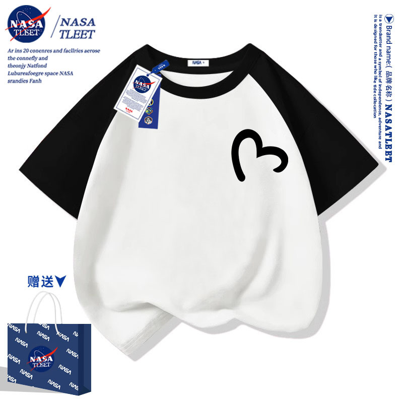 NASA 공동 브랜드 트렌디 브랜드 심플 패션 반팔 남성 및 여성 아동복 여름 새로운 면베이스 셔츠 올 매치 티셔츠스토어 가기