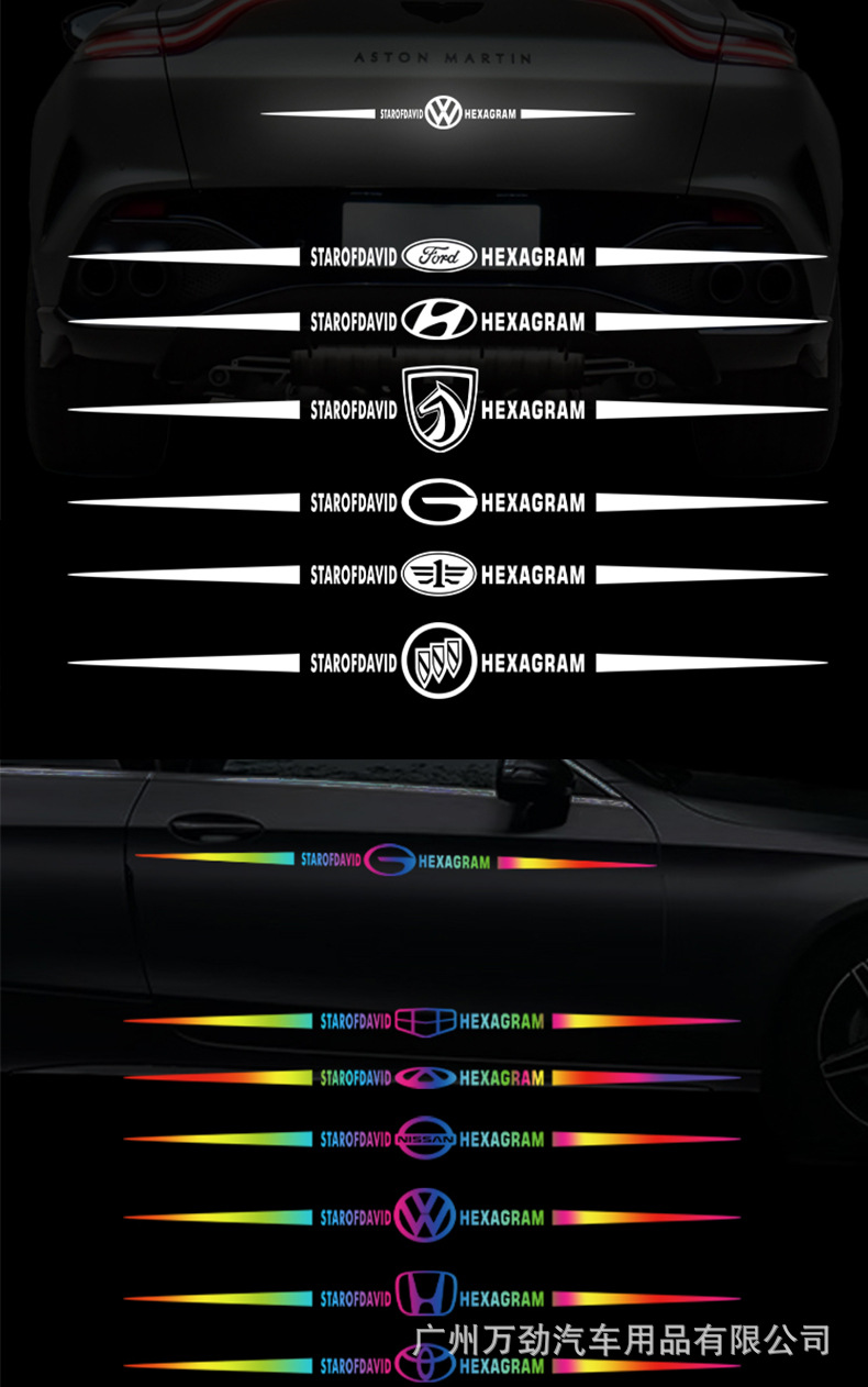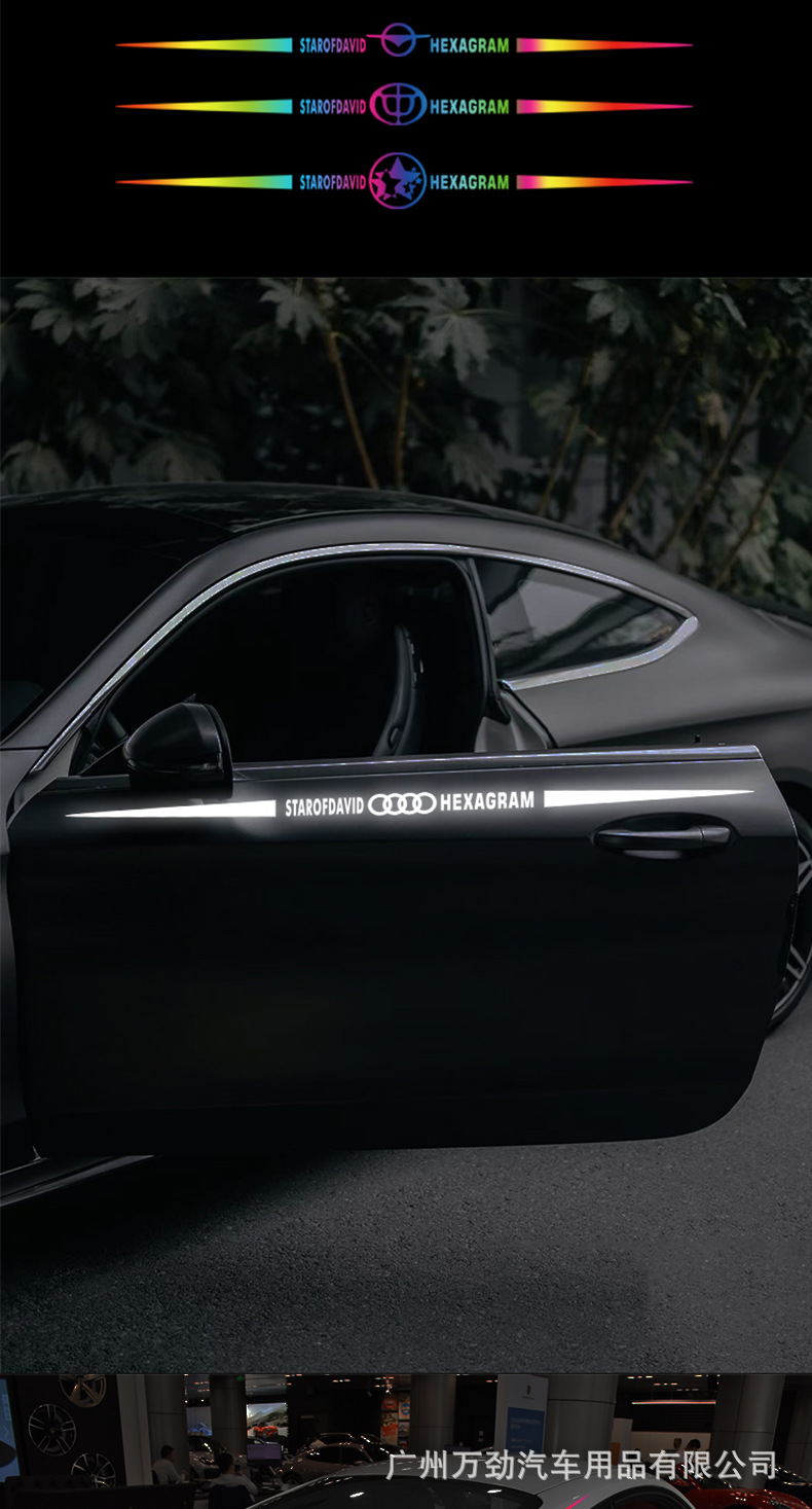 스크래치 자동차 로고 바디 도어 후면 유리 방수 크리에이티브 스트립 스티커를 차단하는 강력한 반사 경고 자동차 스티커