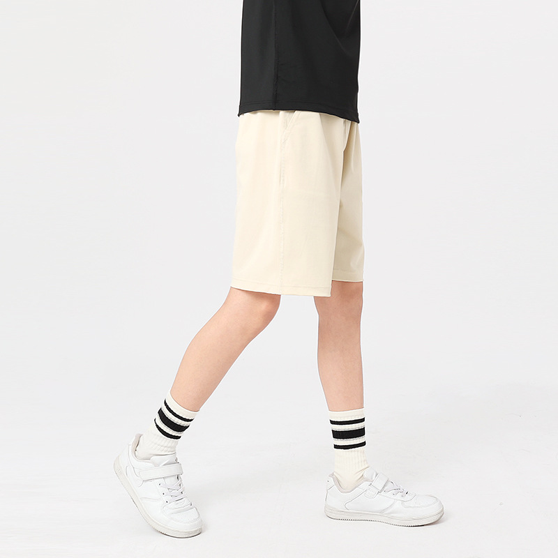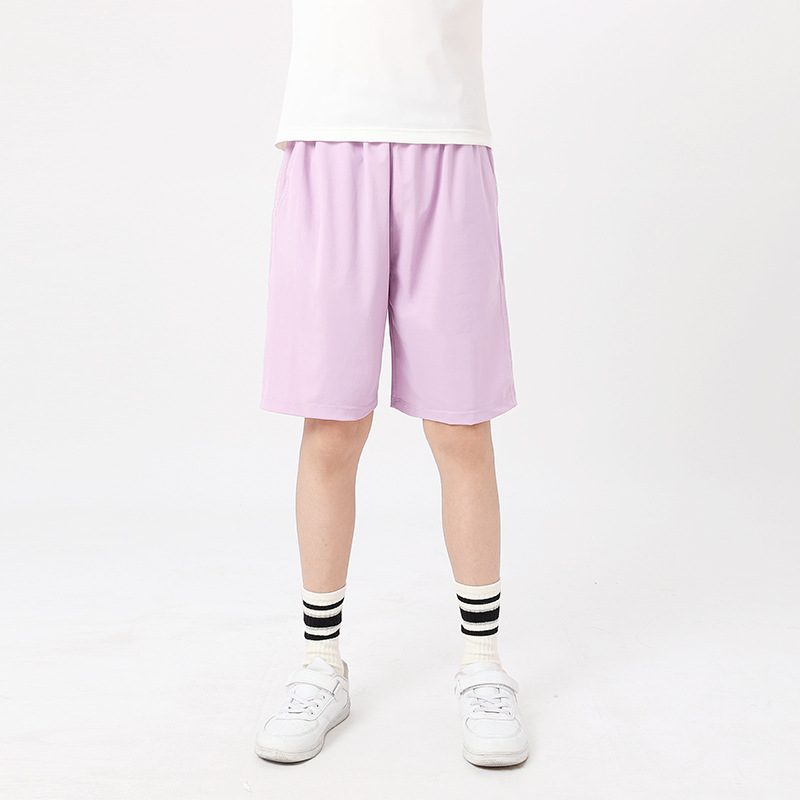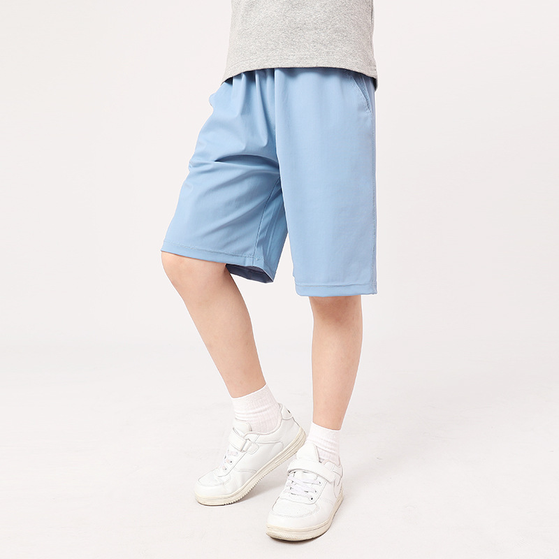 큰 어린이를위한 여름 한국 스타일 새로운 어린이 스포츠 반바지 속건성 얼음 실크 캐주얼 단색 5 점 바지 소녀 바지스토어 가기
