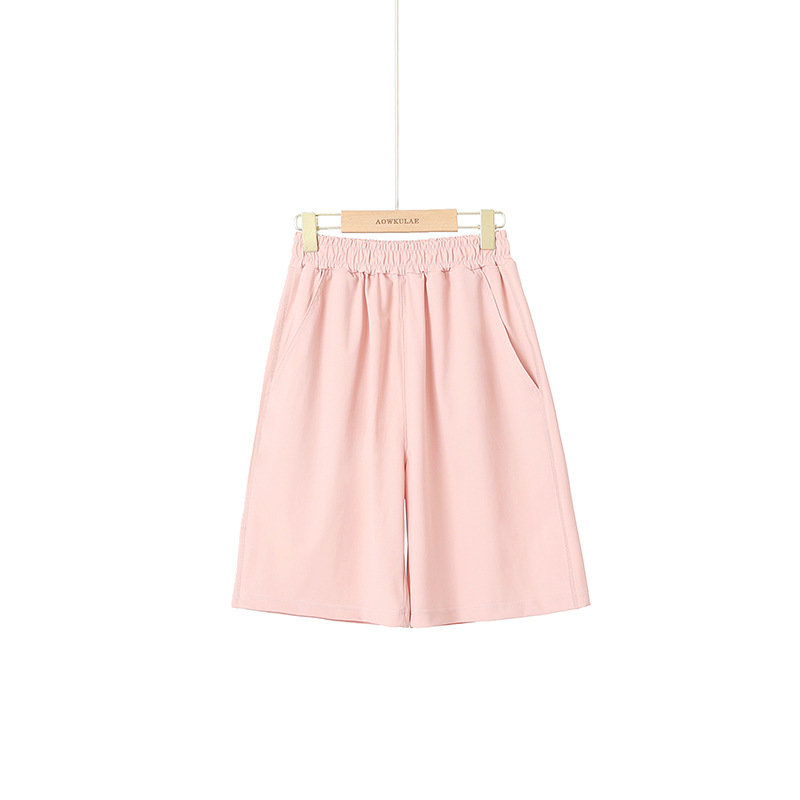 큰 어린이를위한 여름 한국 스타일 새로운 어린이 스포츠 반바지 속건성 얼음 실크 캐주얼 단색 5 점 바지 소녀 바지