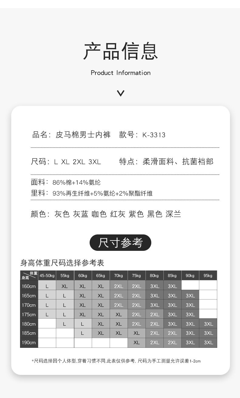 가을 겨울 남성용 무봉제 속옷 60수 면 항균 남성용 단색 중간 허리 라지 사이즈 사각팬티 항균 통기성