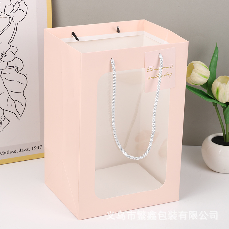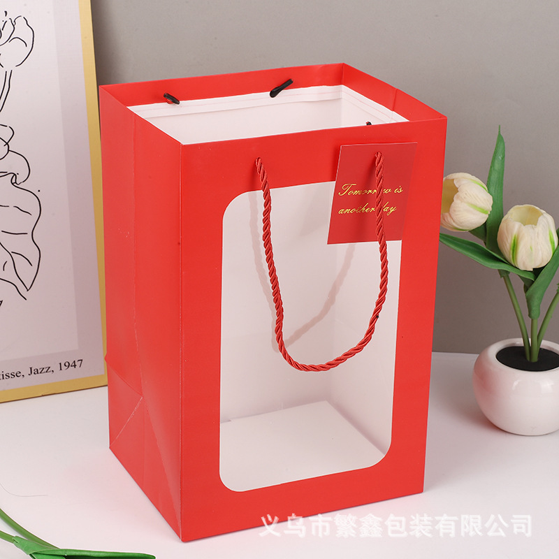 고급스러운 선물 가방, 투명 종이 가방, 꽃다발 포장 가방, 발렌타인데이 선물 가방, 창문이 있는 손잡이가 있는 가방