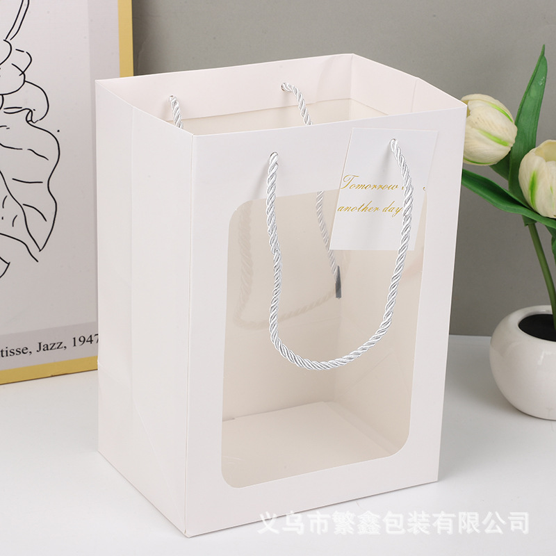 고급스러운 선물 가방, 투명 종이 가방, 꽃다발 포장 가방, 발렌타인데이 선물 가방, 창문이 있는 손잡이가 있는 가방스토어 가기