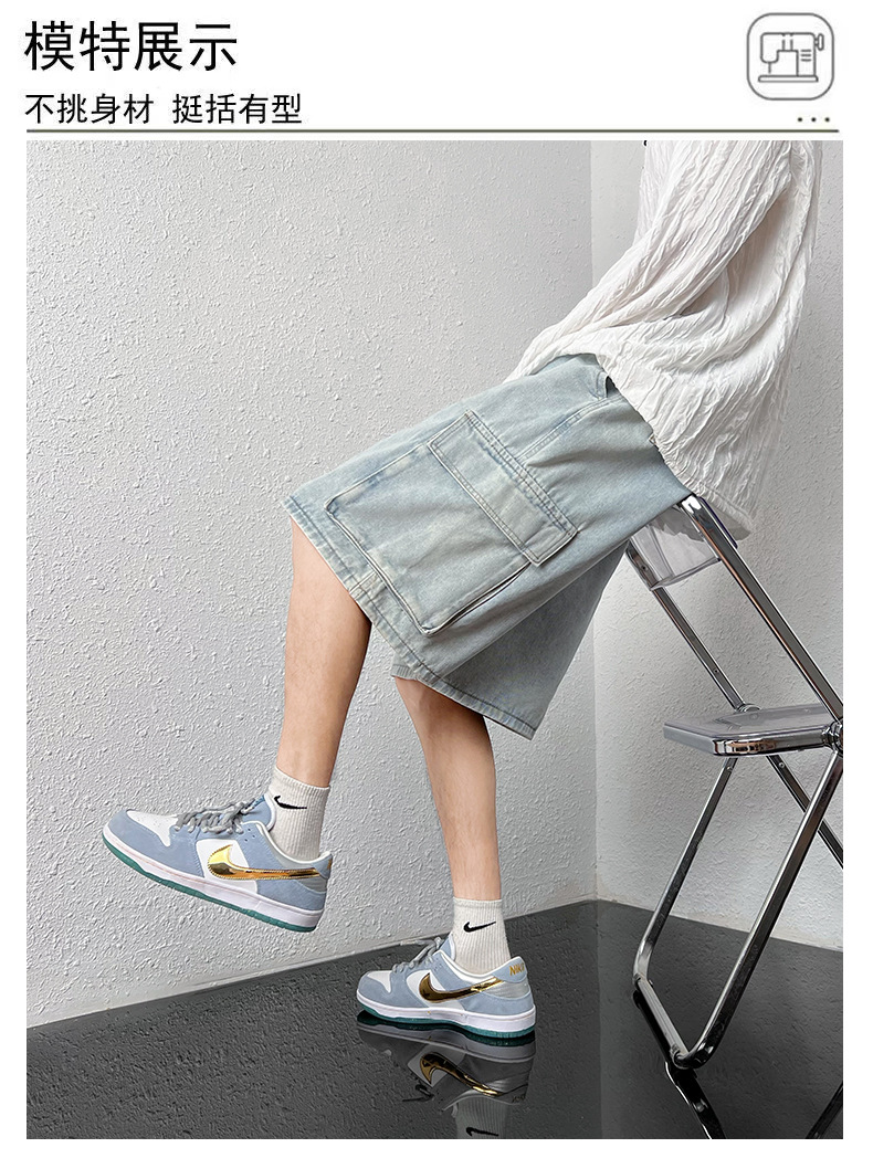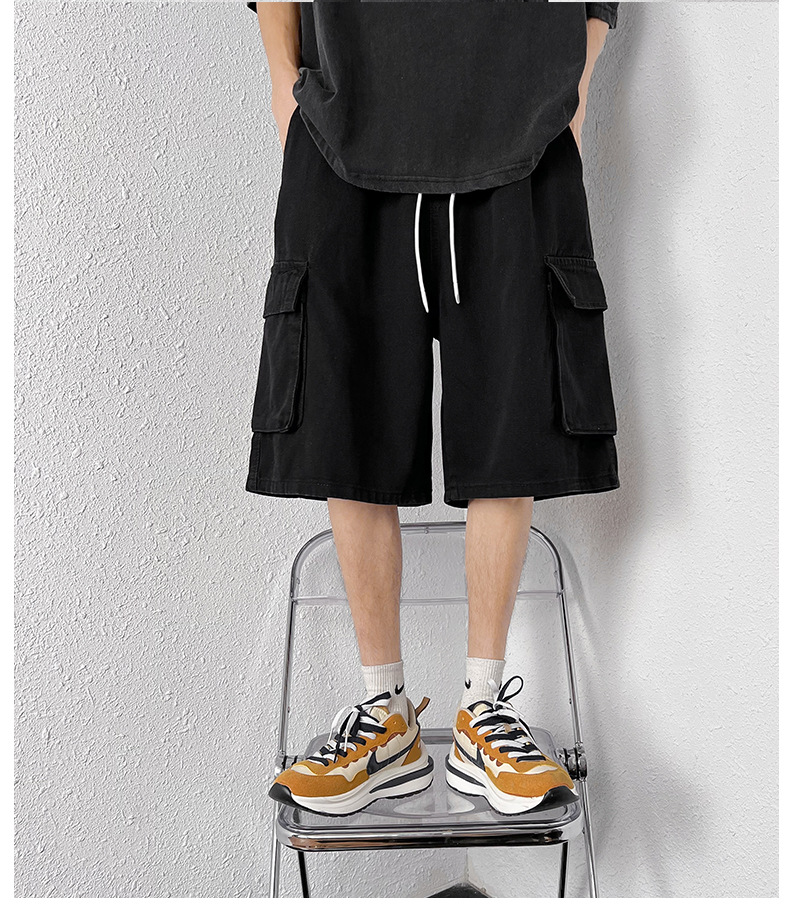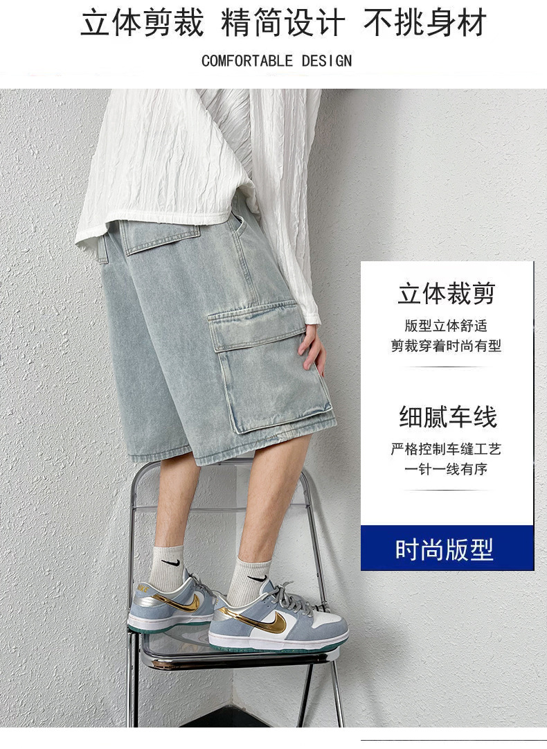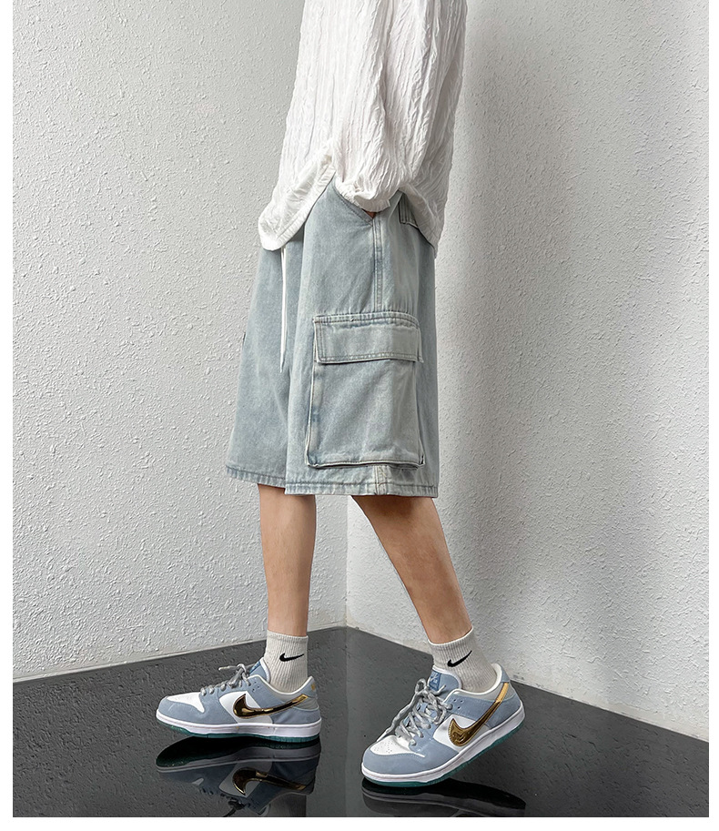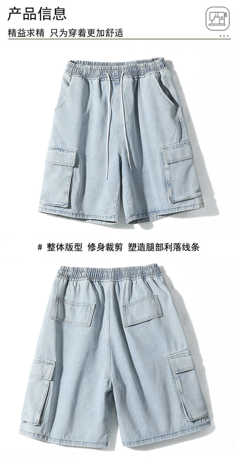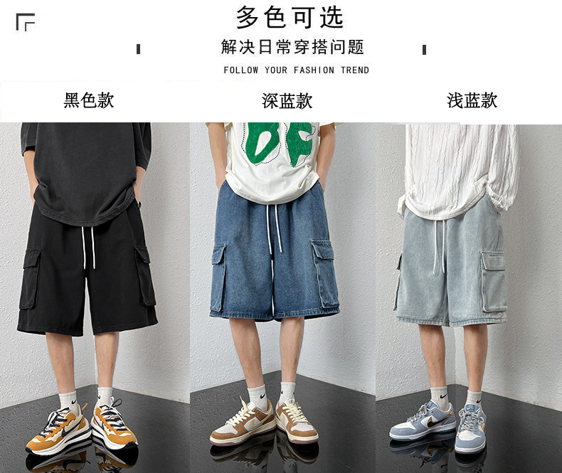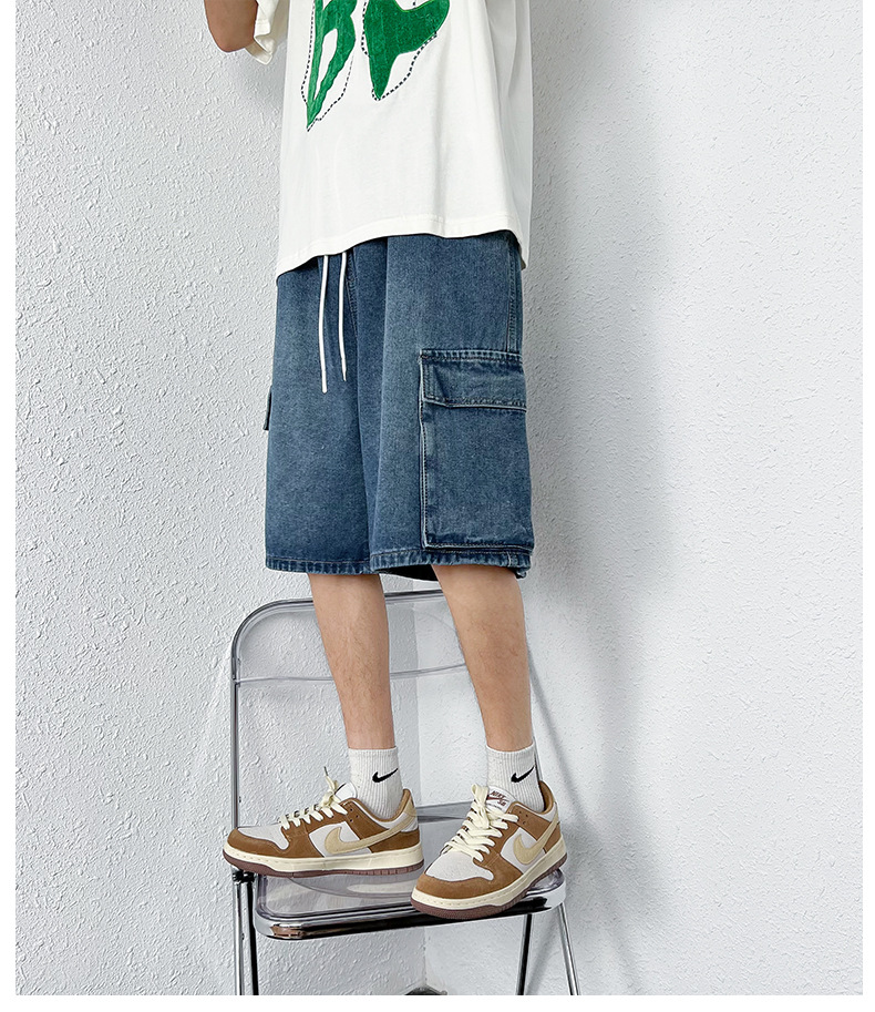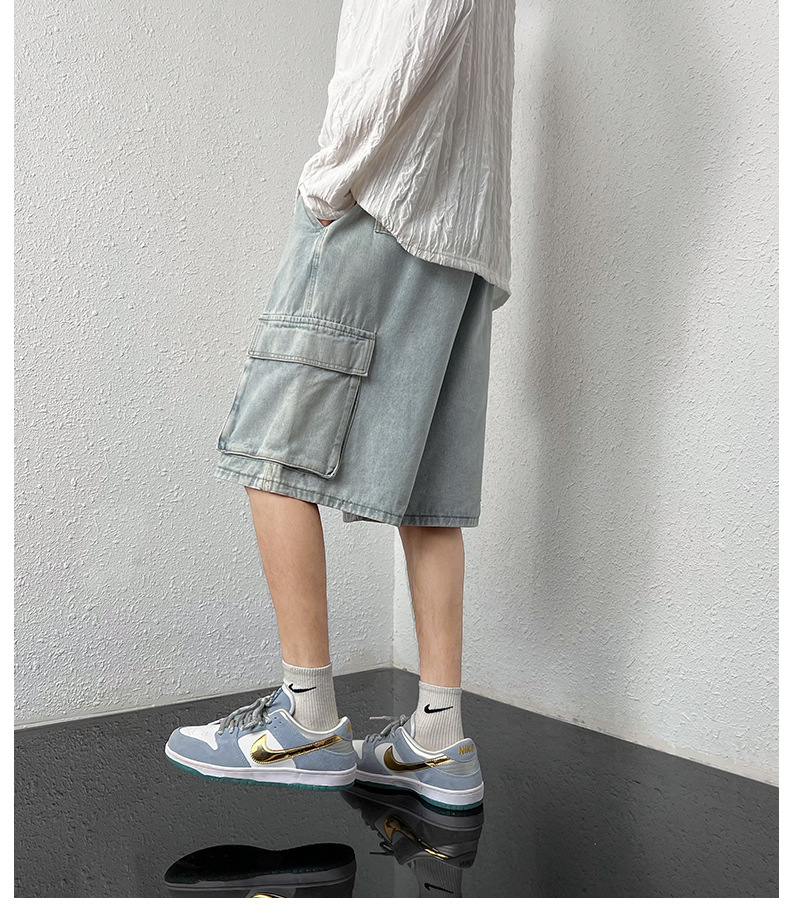 홍콩 스타일 BF 데님 반바지 남성 여름 유행 브랜드 스트레이트 캐주얼 작업복 중간 길이 바지 멀티 포켓 와이드 레그 하프 길이 바지스토어 가기