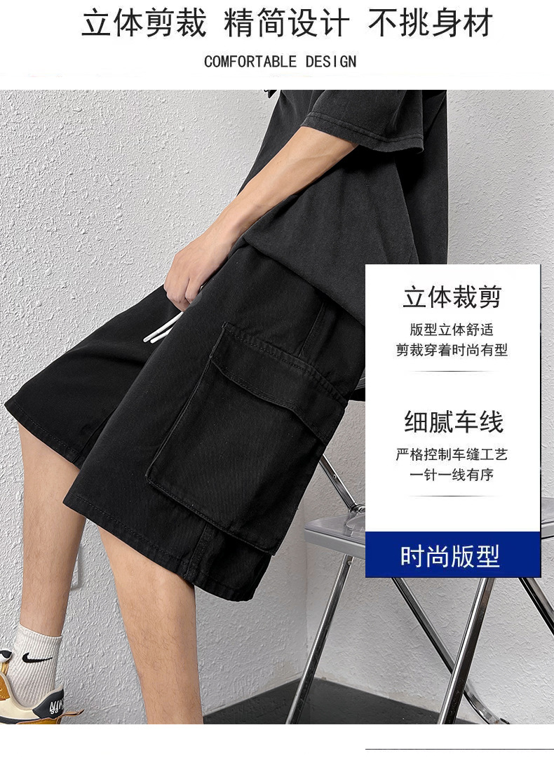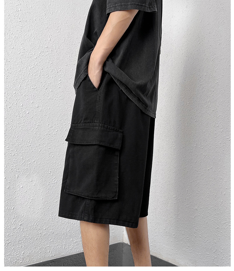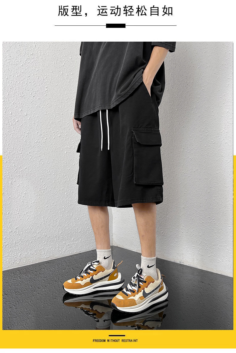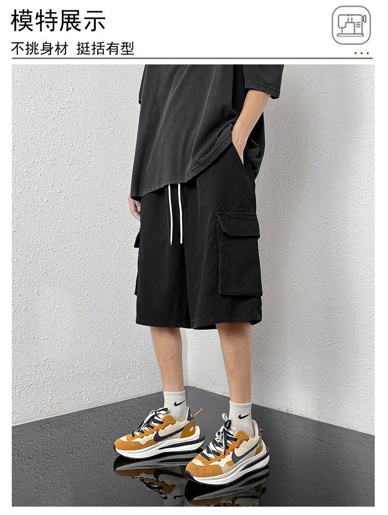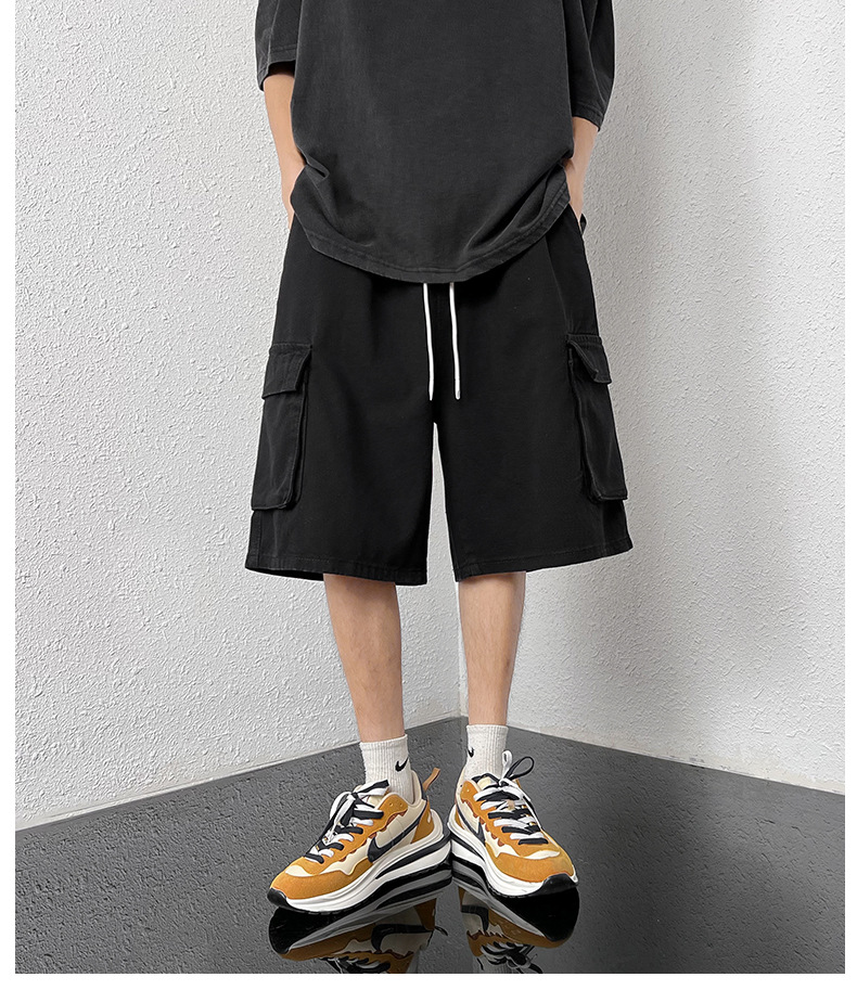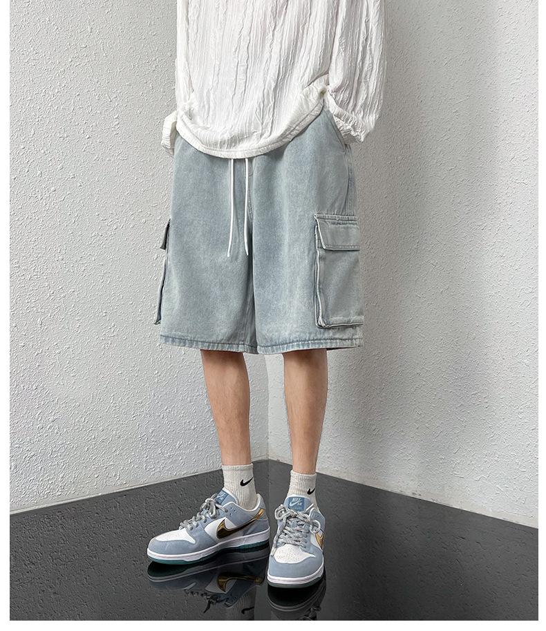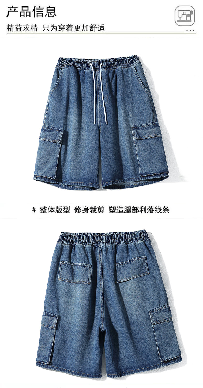 홍콩 스타일 BF 데님 반바지 남성 여름 유행 브랜드 스트레이트 캐주얼 작업복 중간 길이 바지 멀티 포켓 와이드 레그 하프 길이 바지스토어 가기