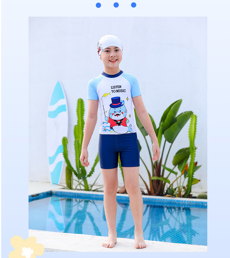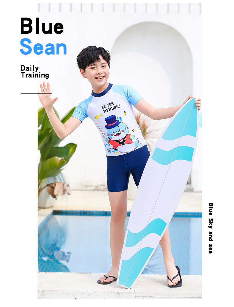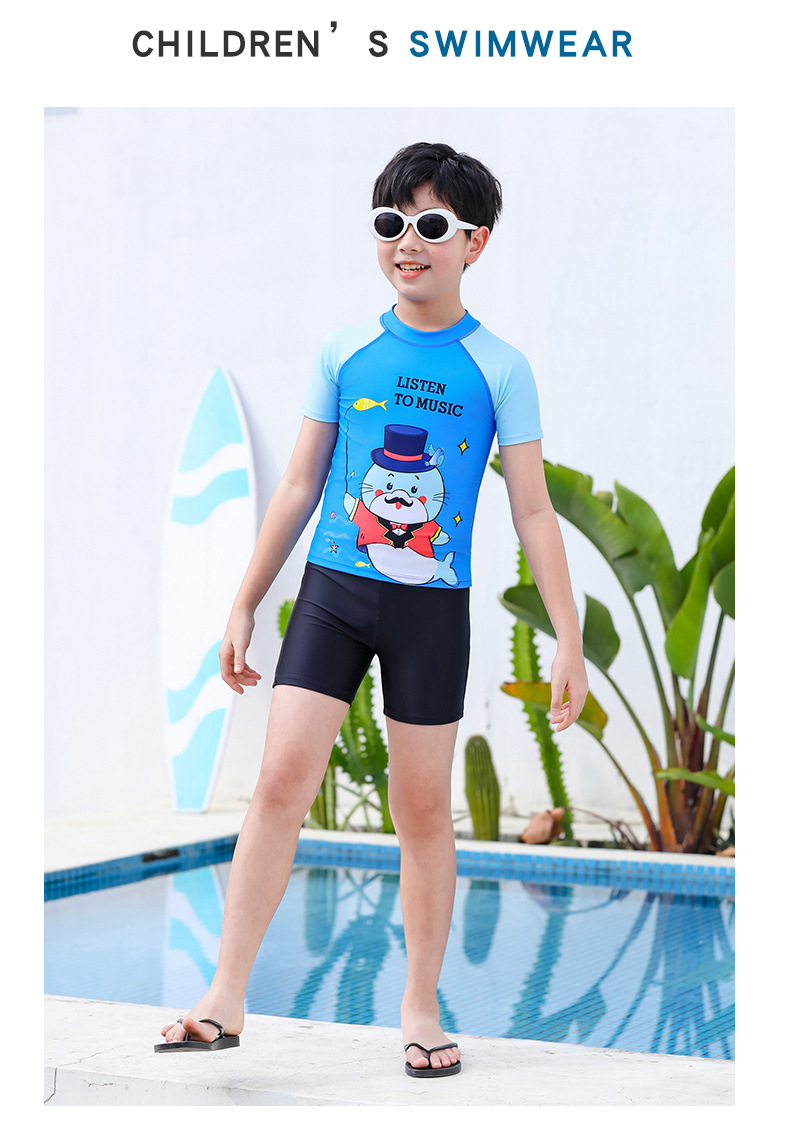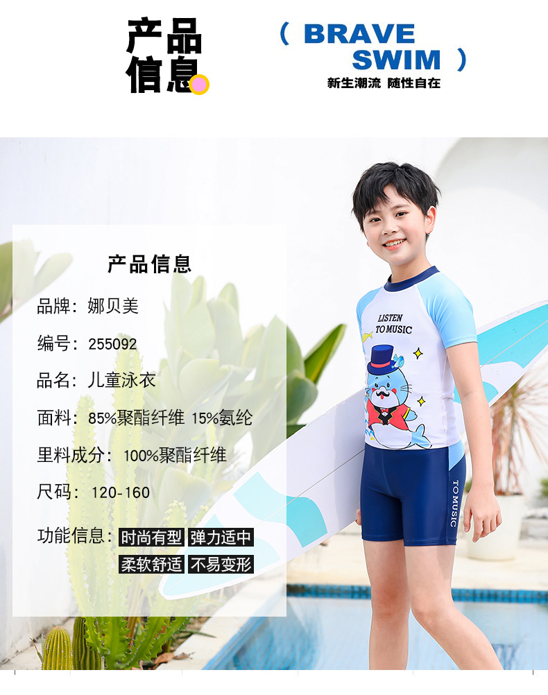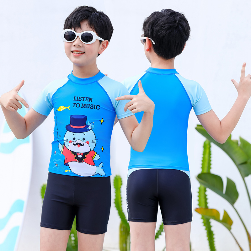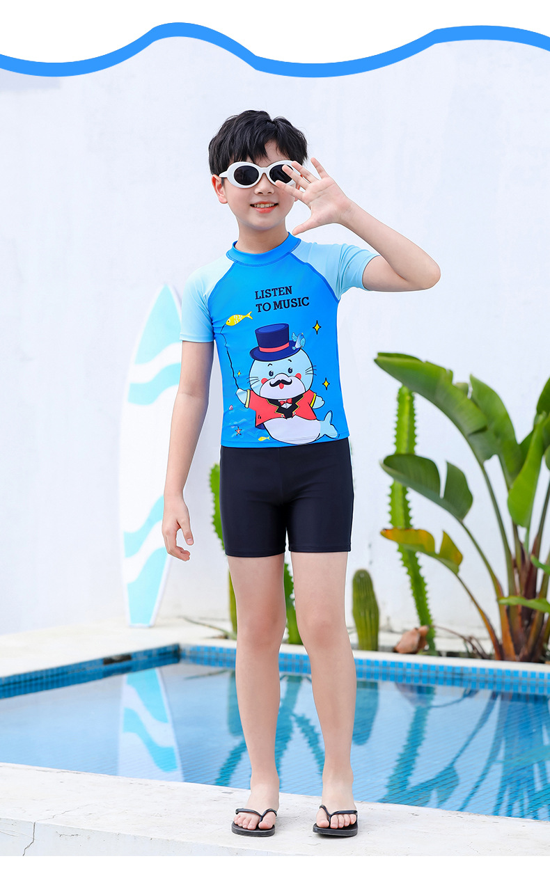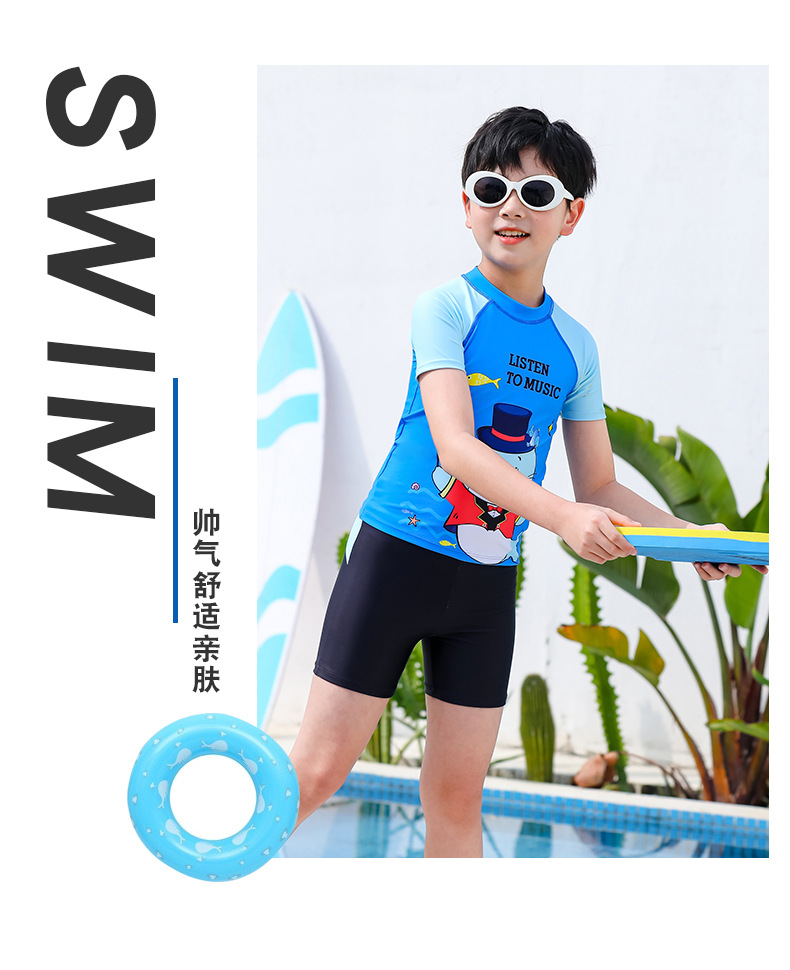나베이미 공장 도매 25종 신상 아동 분리형 수영복 반팔 자외선 차단 만화 캐릭터 남아 수영복 원피스 도매스토어 가기