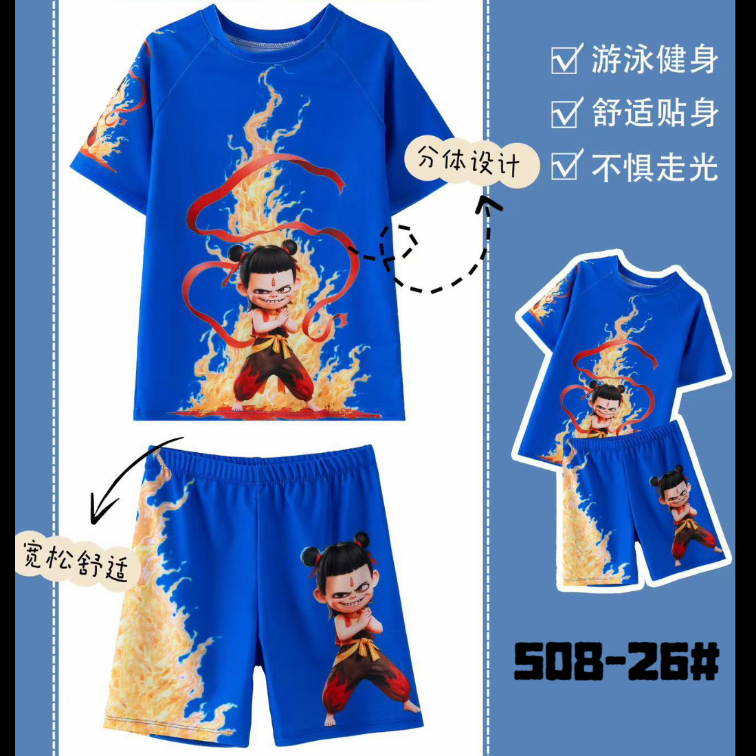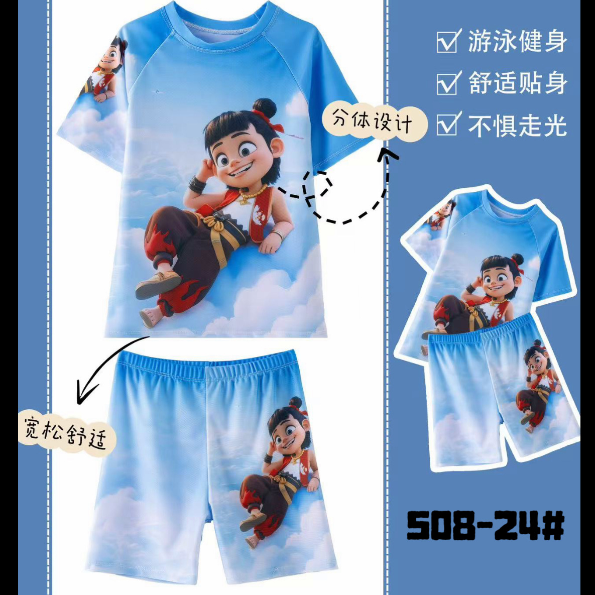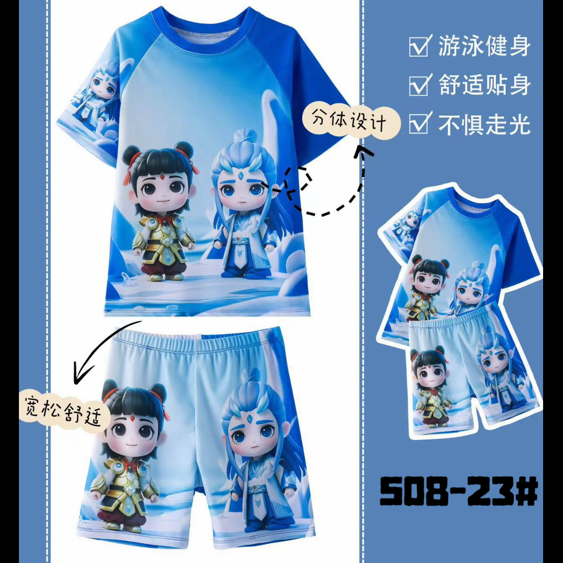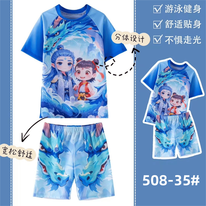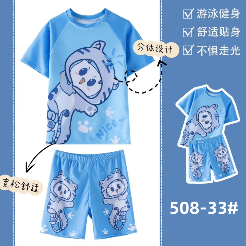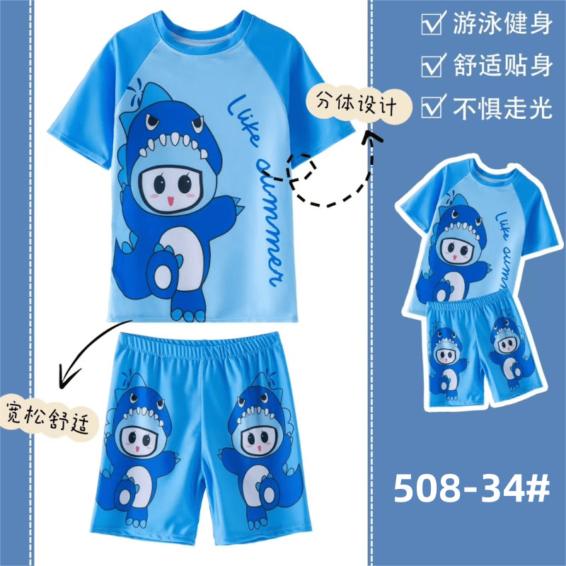 어린이 수영복 학생 태양 방지 빠른 건조 수영복 남성 및 여성 대형, 중형 및 소형 어린이 만화 귀여운 온천 해변 수영 세트