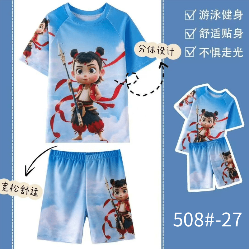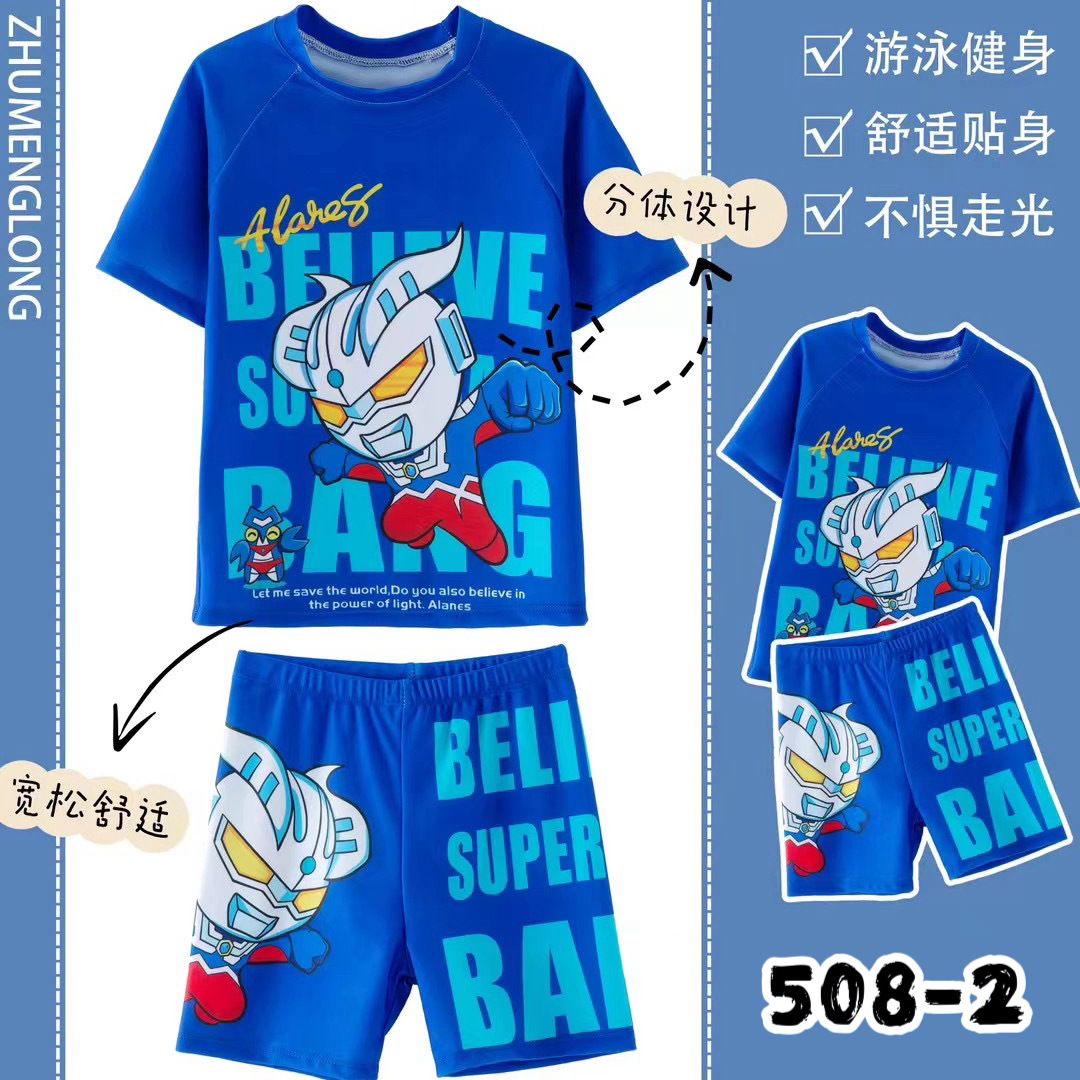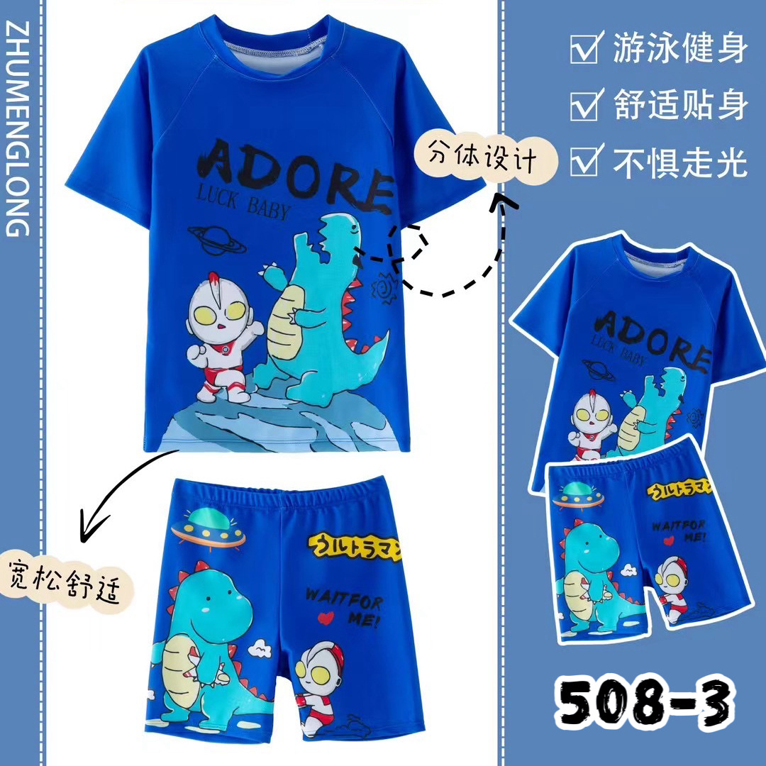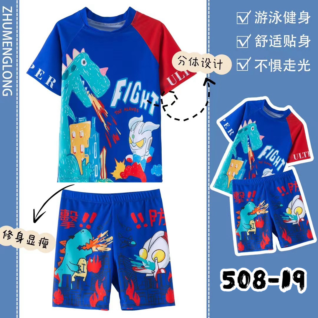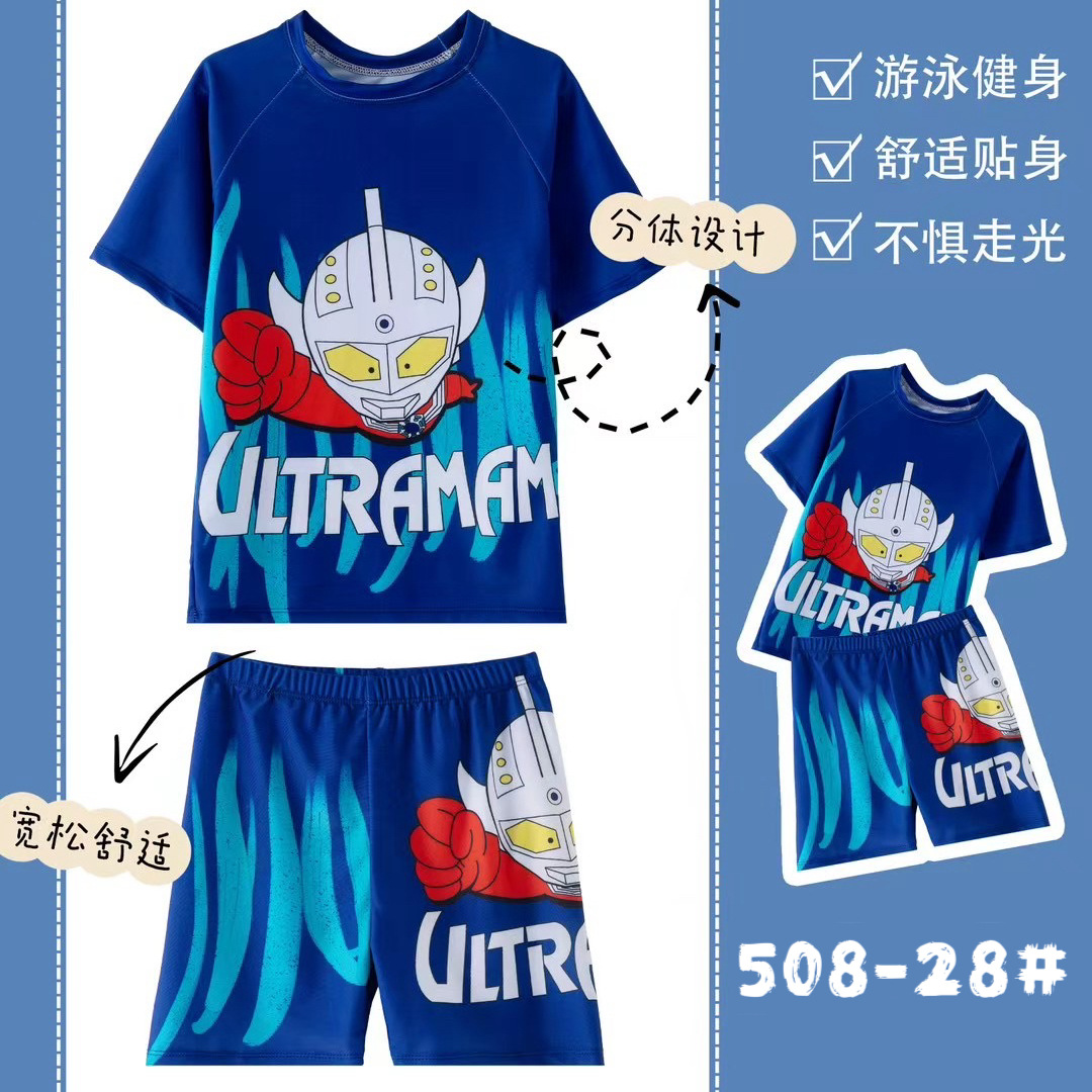 어린이 수영복 학생 태양 방지 빠른 건조 수영복 남성 및 여성 대형, 중형 및 소형 어린이 만화 귀여운 온천 해변 수영 세트