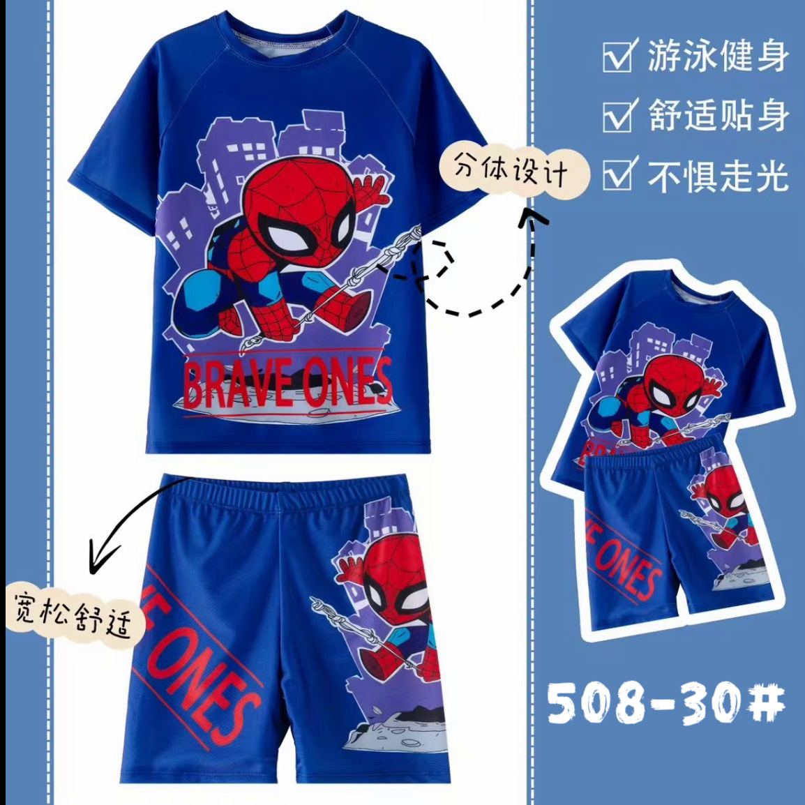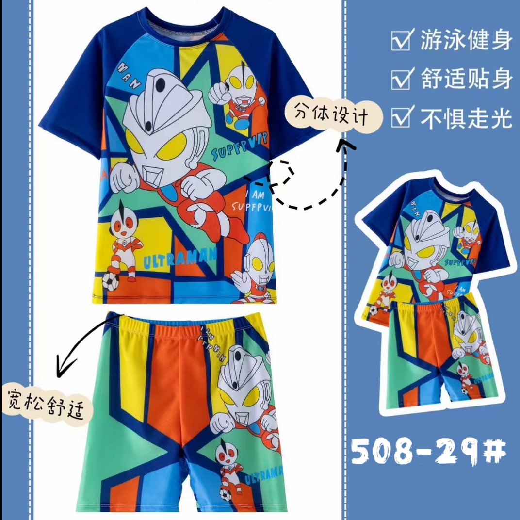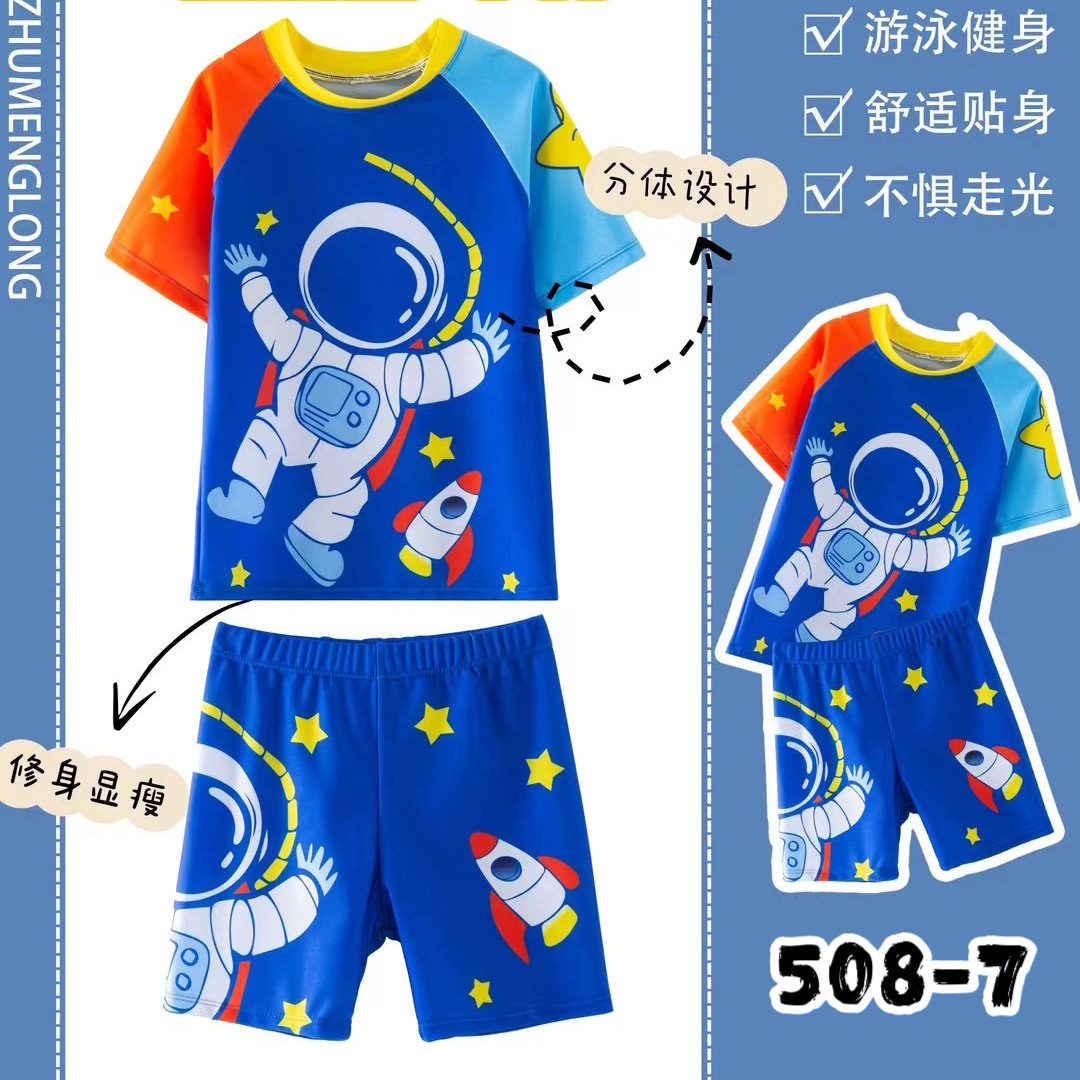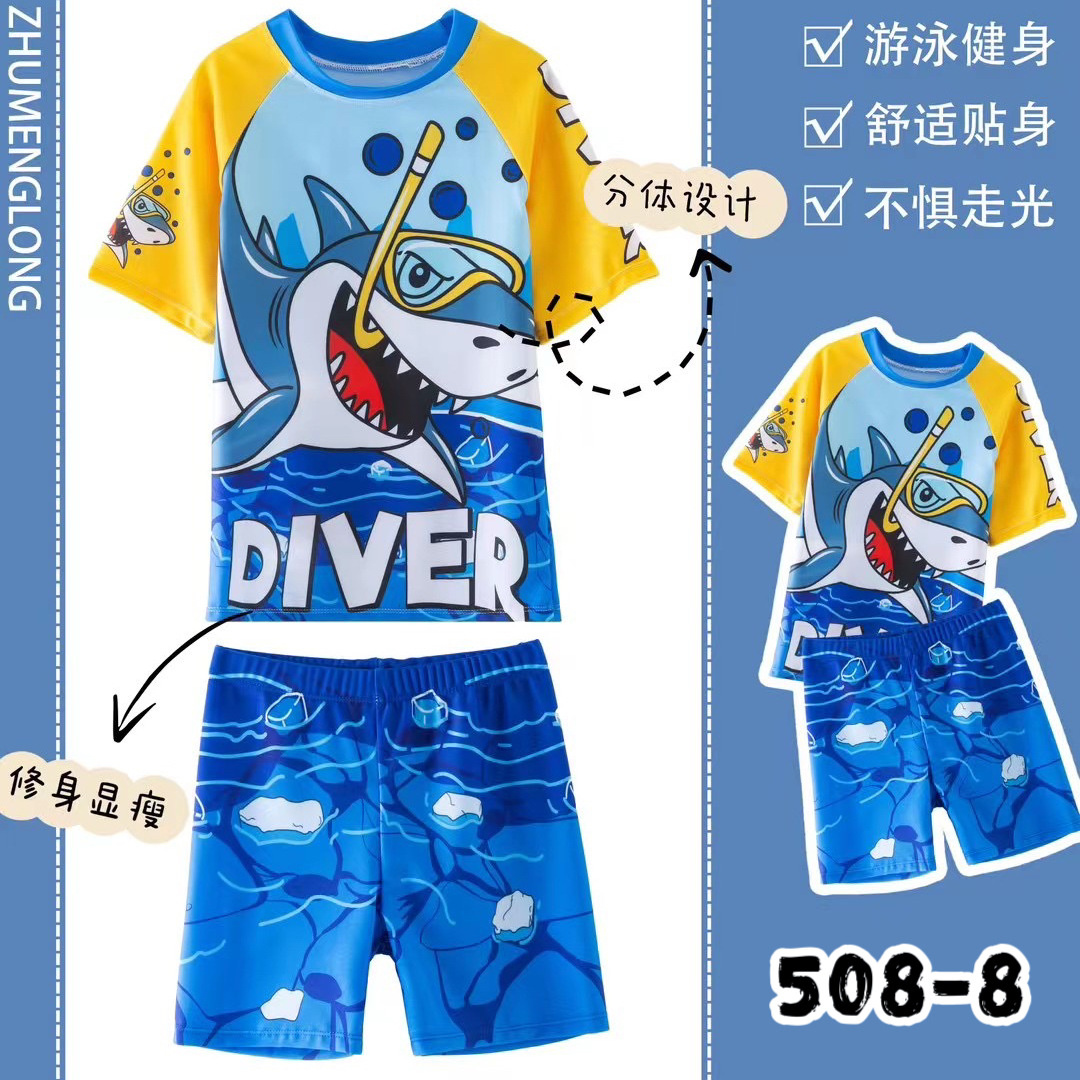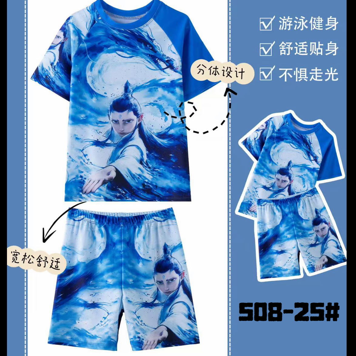 어린이 수영복 학생 태양 방지 빠른 건조 수영복 남성 및 여성 대형, 중형 및 소형 어린이 만화 귀여운 온천 해변 수영 세트