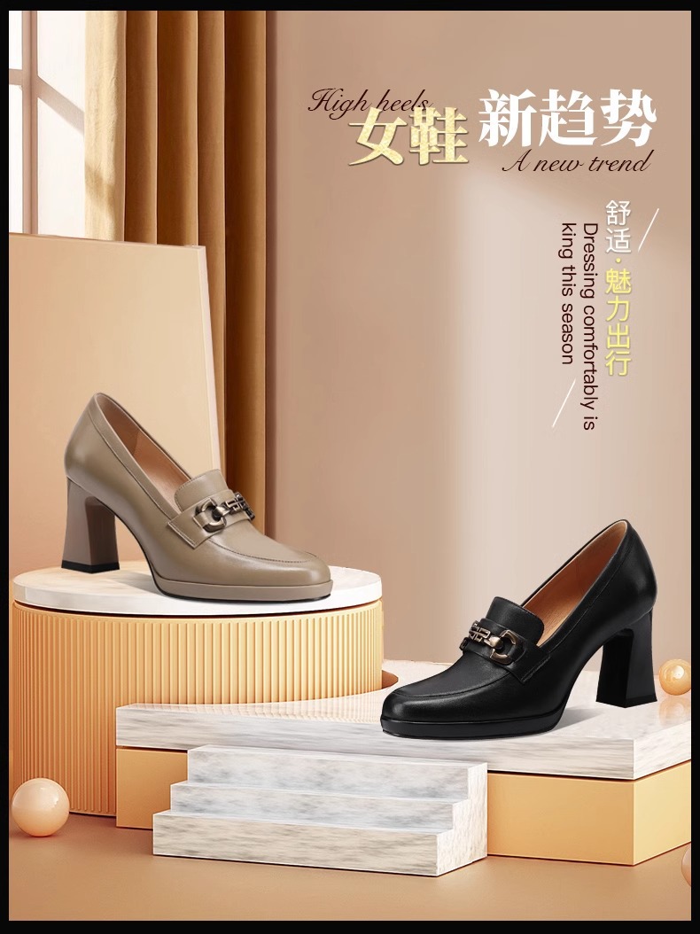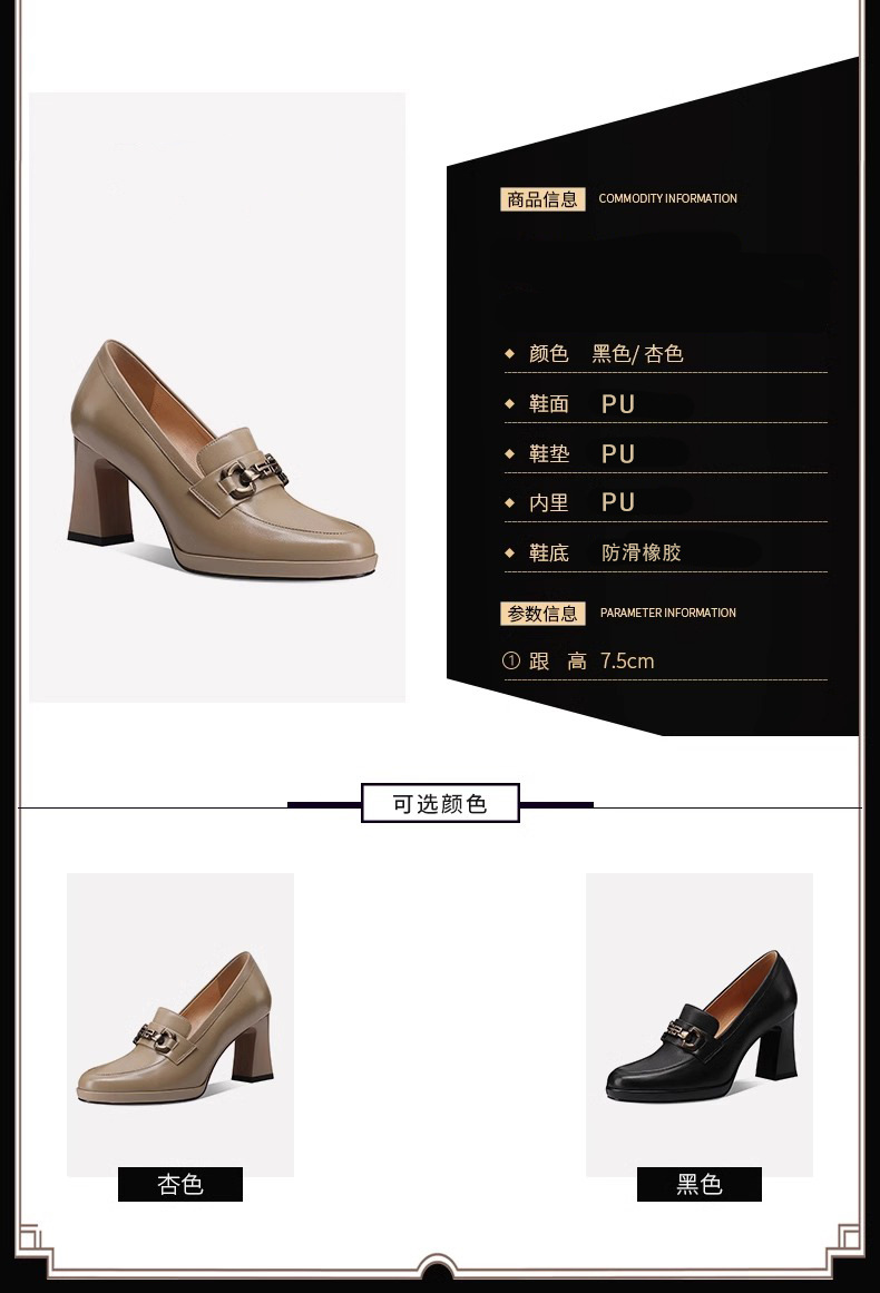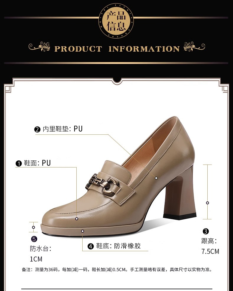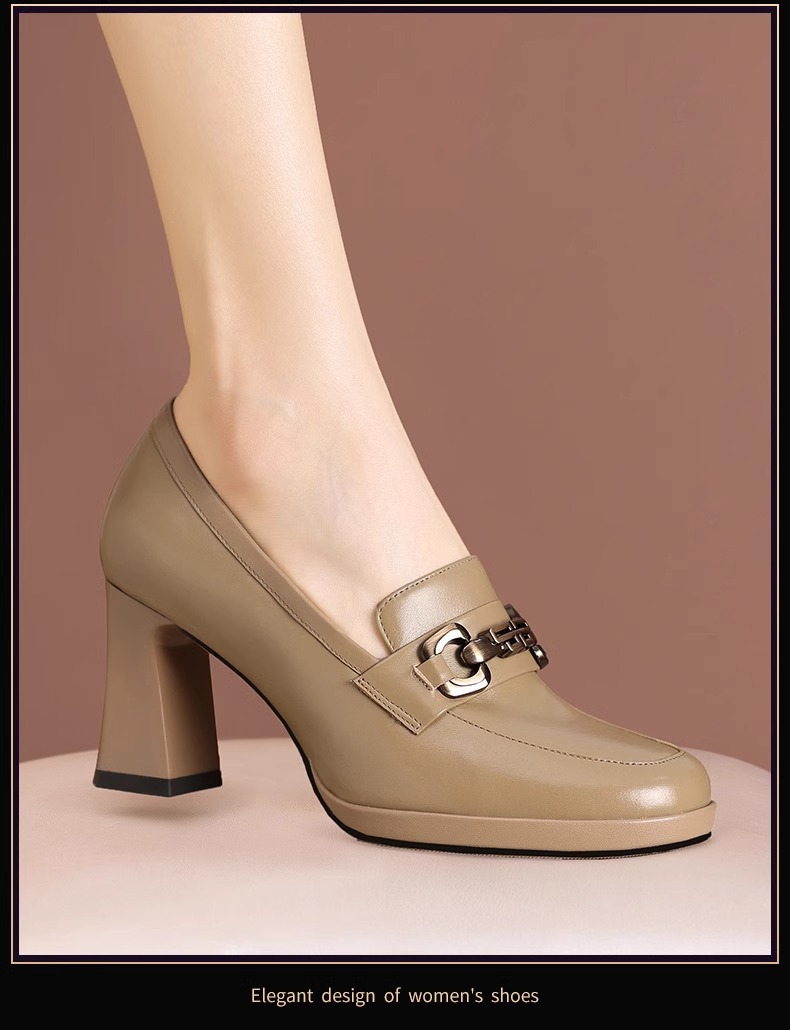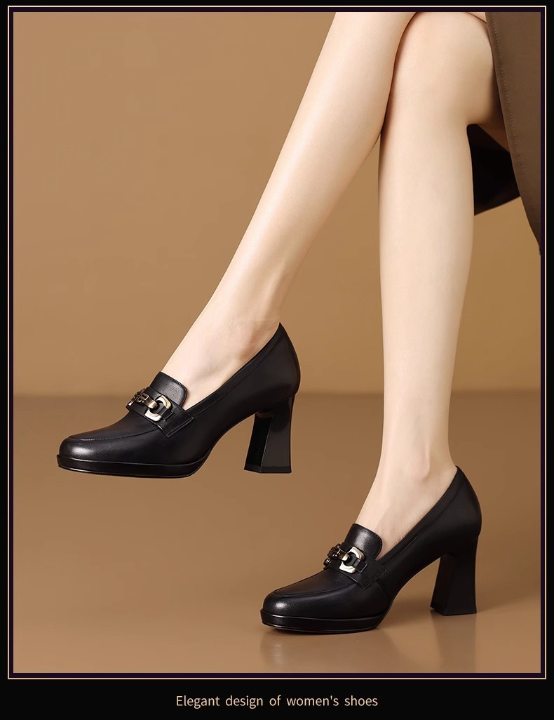 스퀘어 헤드 방수 플랫폼 싱글 레이어 신발 여성 두꺼운 힐 하이힐 2024 봄 새로운 도착 유행 올 매치 로퍼 여성 신발스토어 가기