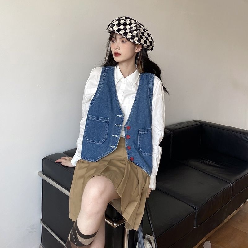 여름 새로운 레트로 패션 느슨한 랩 데님 조끼 여성 디자인 틈새 짧은 민소매 조끼스토어 가기