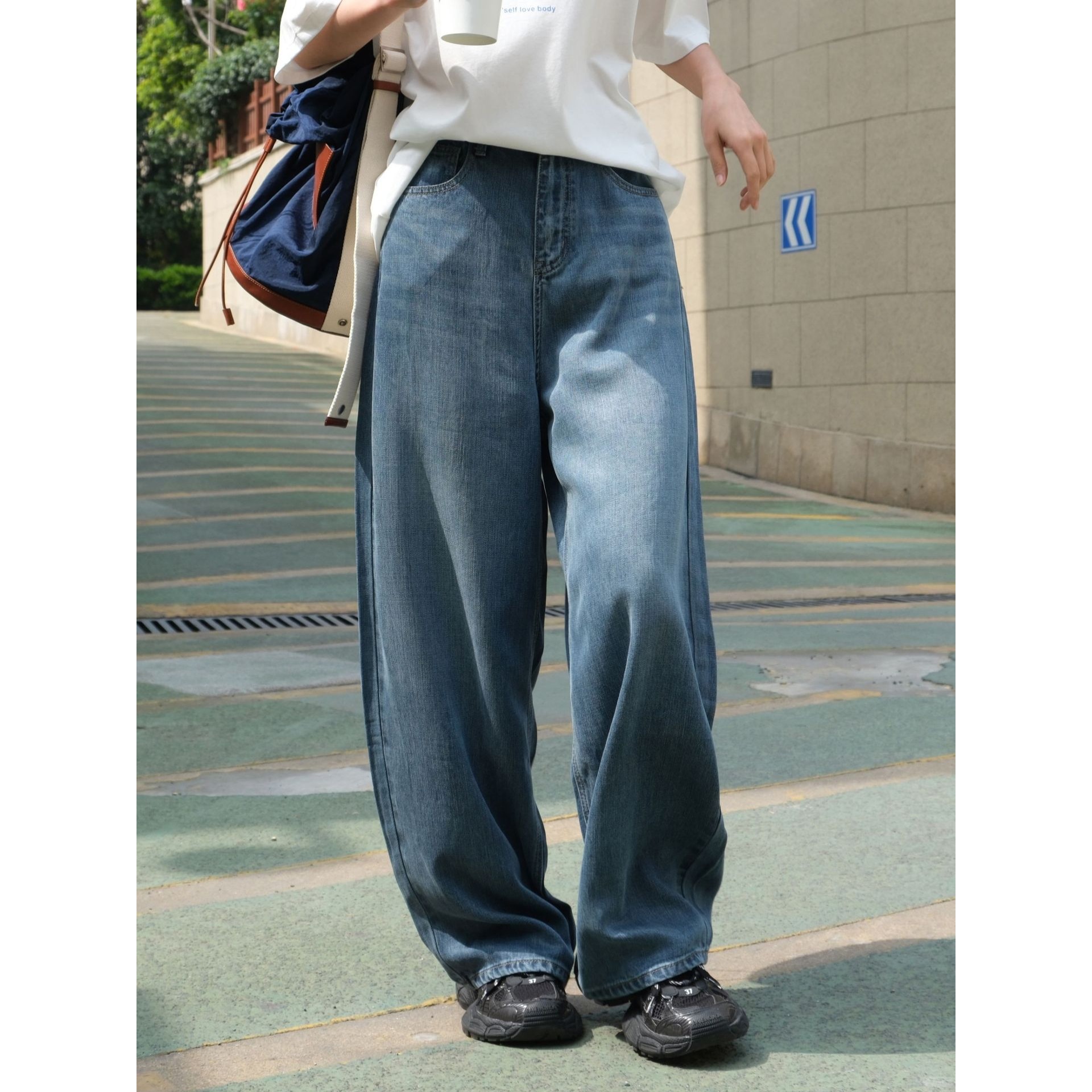 루 푸 여름 새로운 한국 스타일 패션 텐셀 커브 넓은 다리 청바지 멋진 피부 친화적 인 편안한 통기성 바지