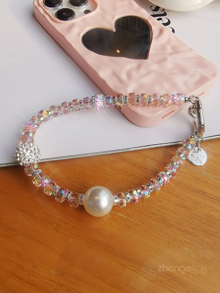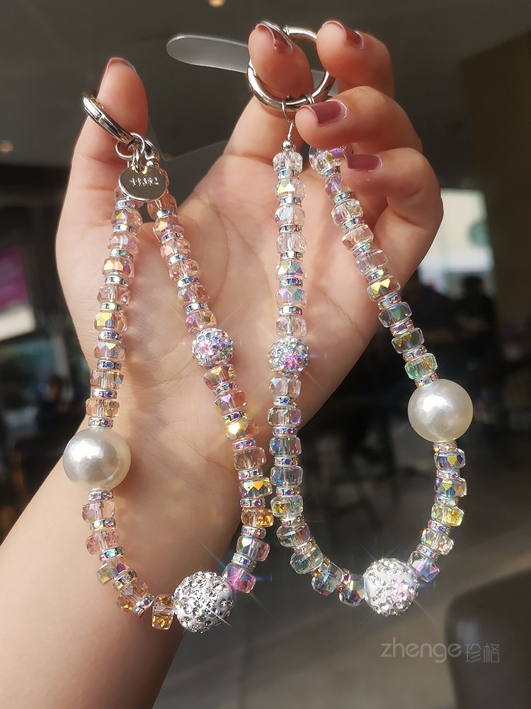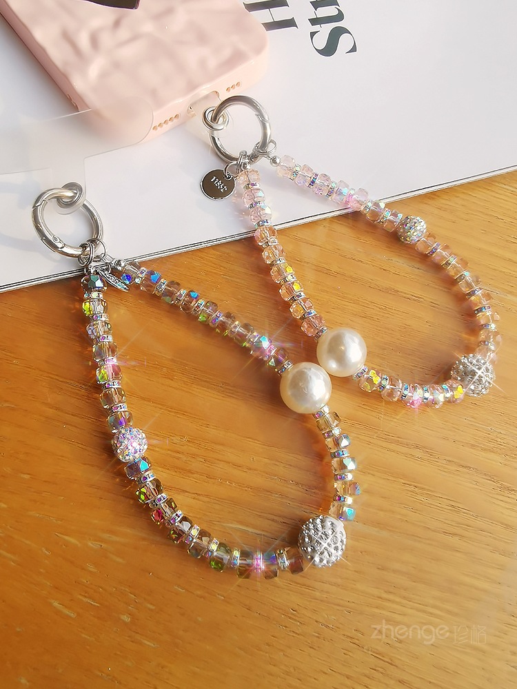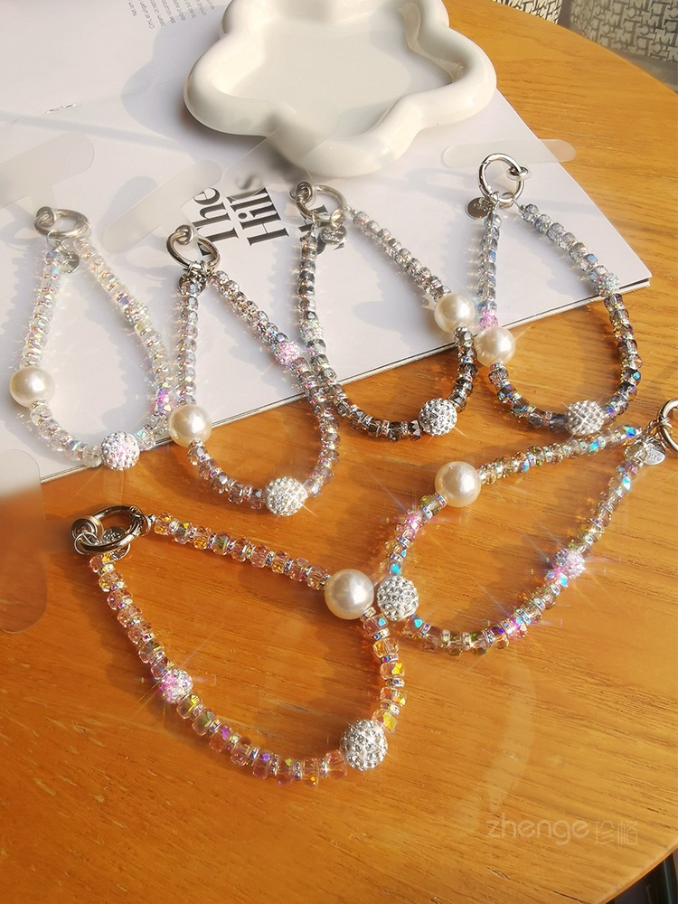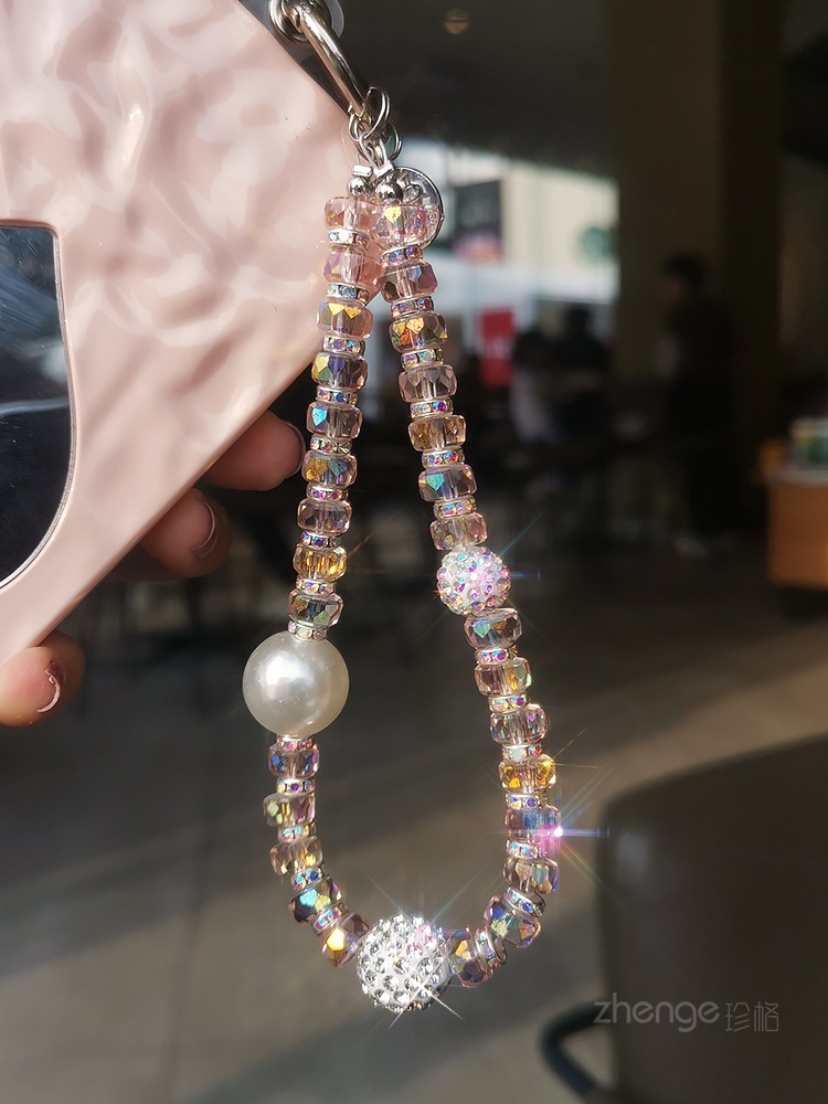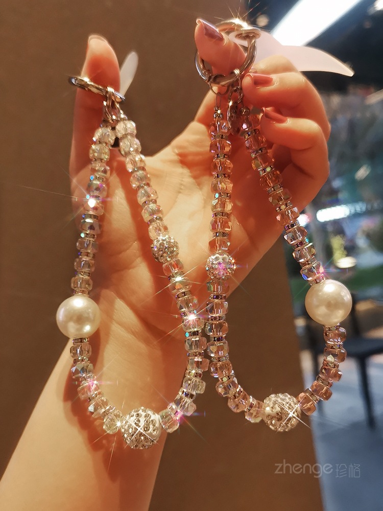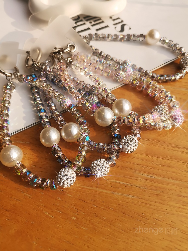 여성용 라인스톤 볼 팔찌 인 간단한 패션 라이트 럭셔리 신선한 교수형 체인 휴대 전화 끈 짧은 손목 교수형 액세서리스토어 가기