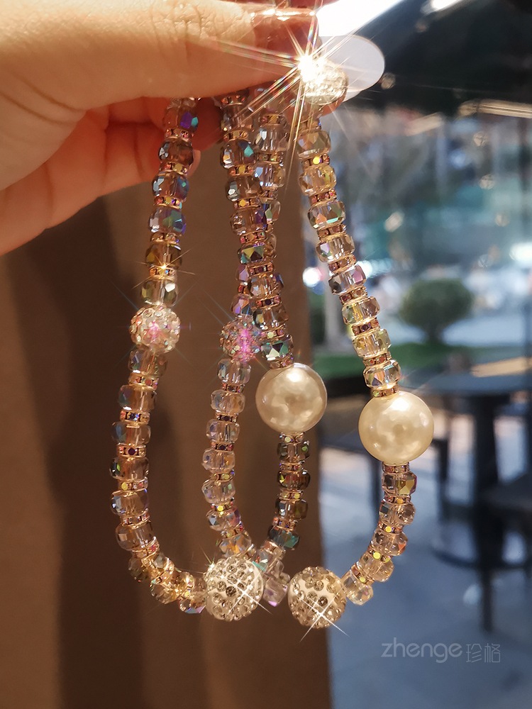 여성용 라인스톤 볼 팔찌 인 간단한 패션 라이트 럭셔리 신선한 교수형 체인 휴대 전화 끈 짧은 손목 교수형 액세서리