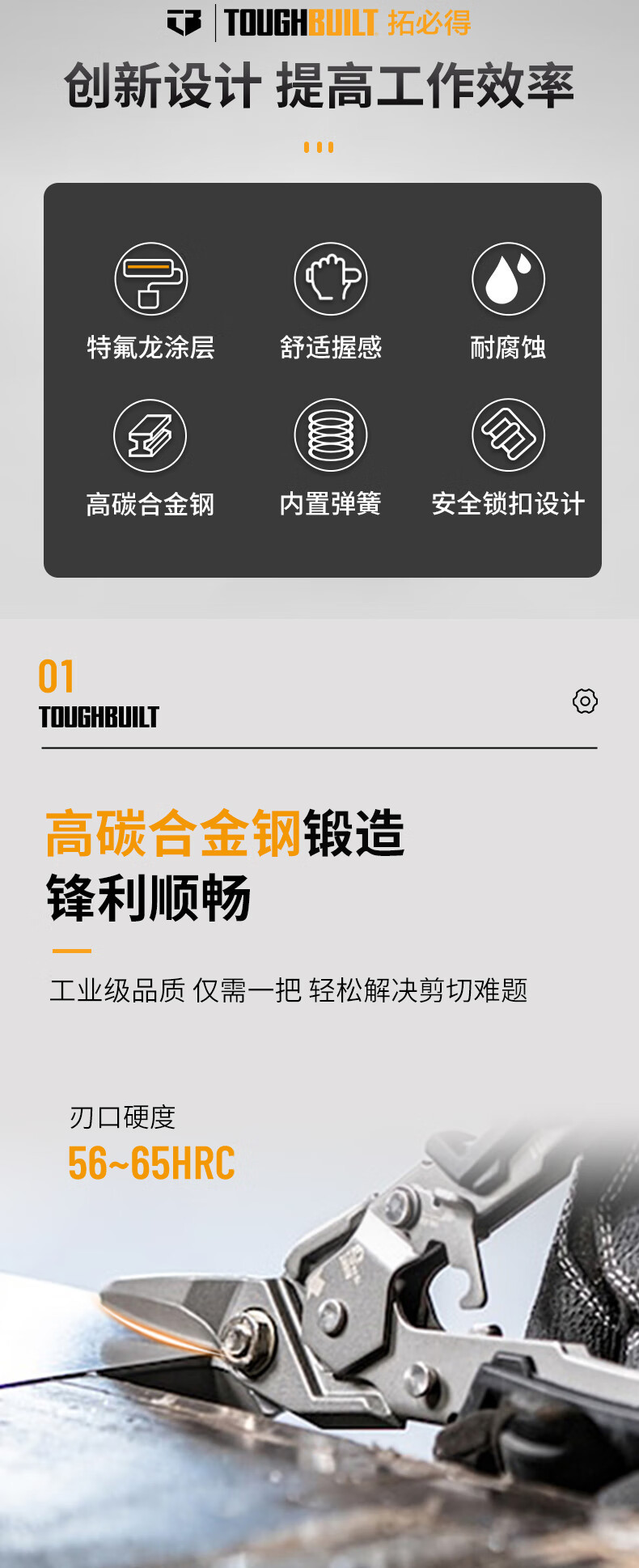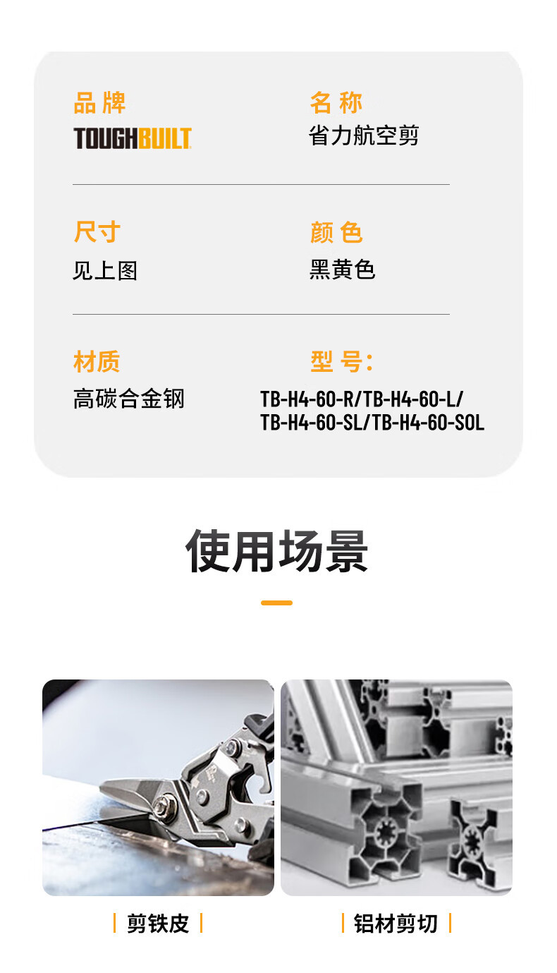 TOUGHBUGBUILT, 노동 절약 항공 전단 다기능 산업용 철 가위 철선 TB-H4-60-L