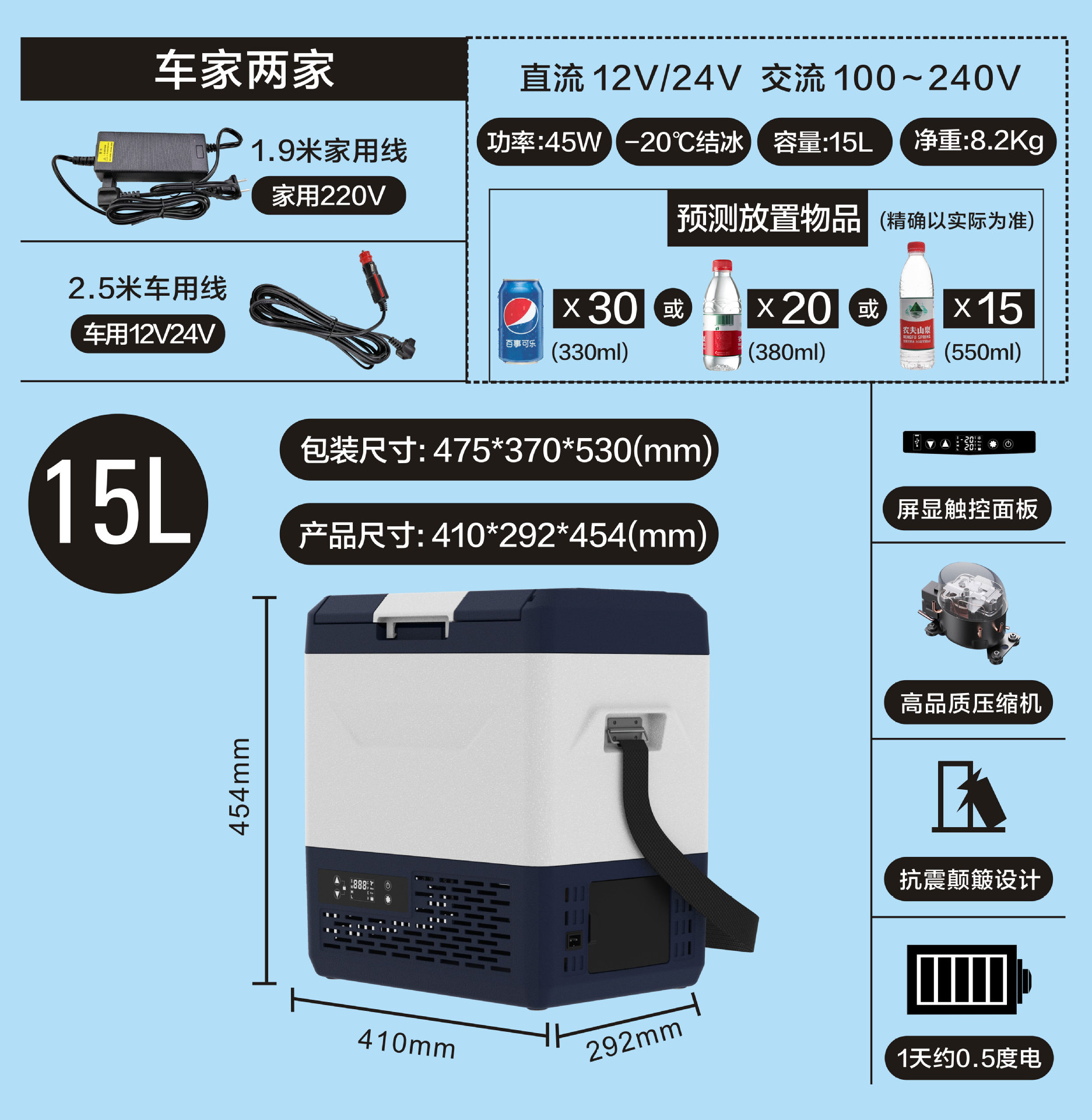 15L 압축기 자동차 냉장고 휴대용 이중 용도 12V24V 보편적 인 냉장고 국경 간 공급스토어 가기