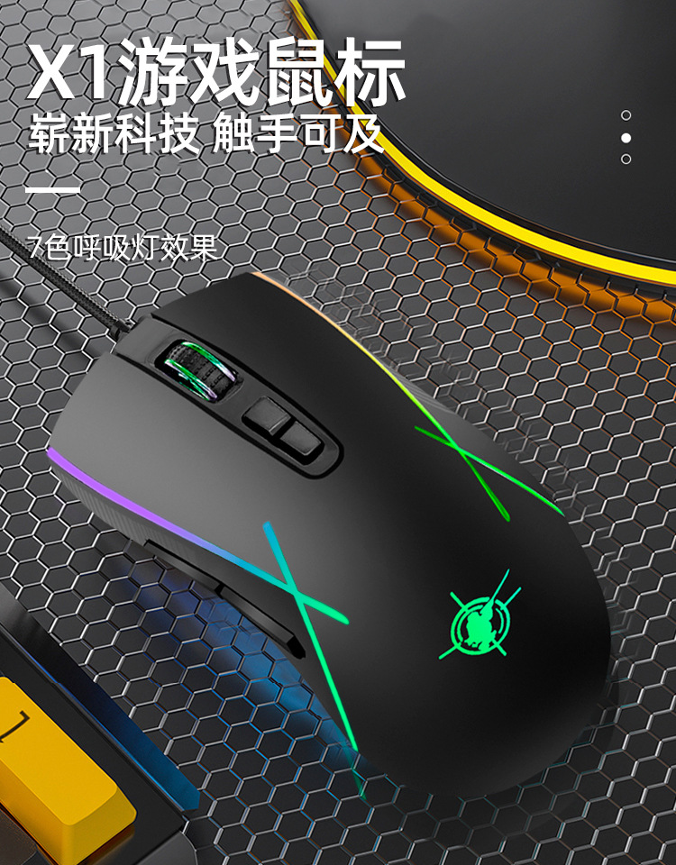 펭베이 X1 메카 브레이드 케이블 게이밍 마우스 컴퓨터 액세서리 USB 크로스보더 아마존 다채로운 조명 효과 데스크탑