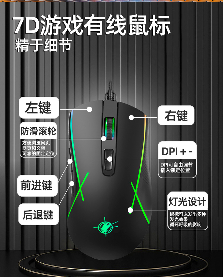 펭베이 X1 메카 브레이드 케이블 게이밍 마우스 컴퓨터 액세서리 USB 크로스보더 아마존 다채로운 조명 효과 데스크탑스토어 가기