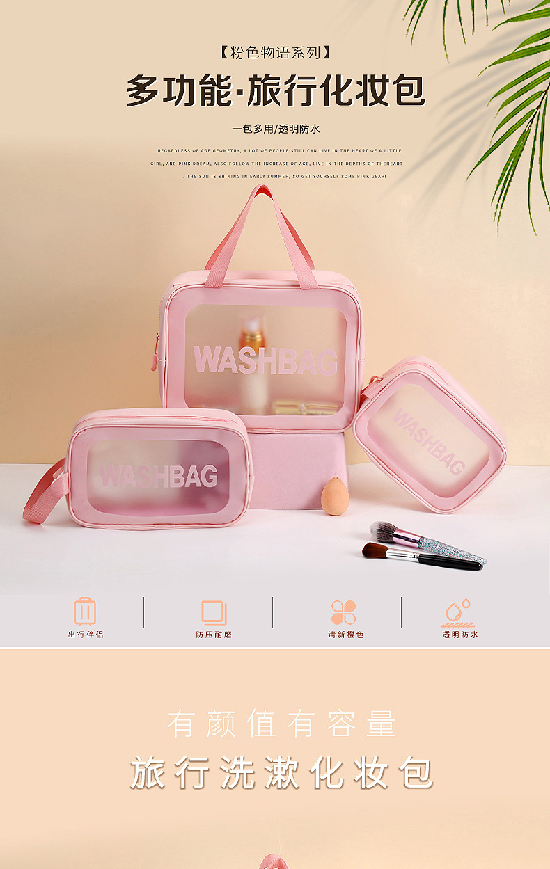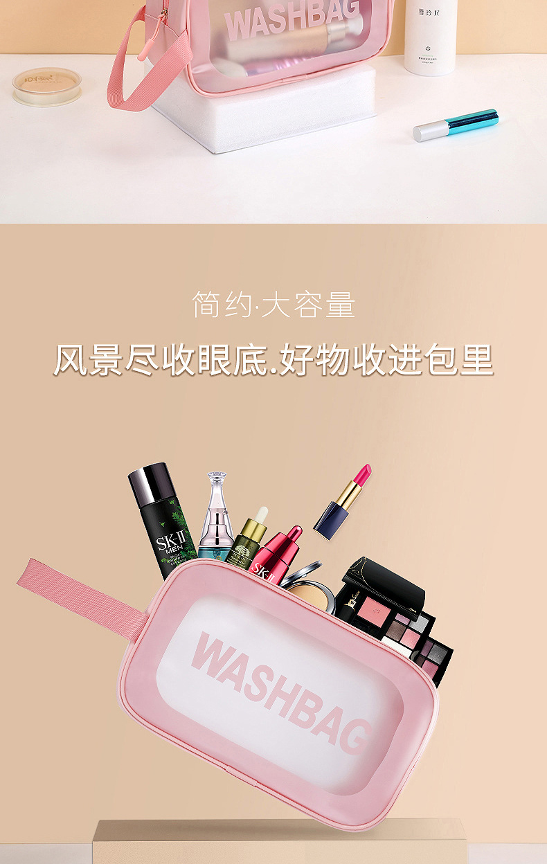 휴대용 화장품 가방 투명 pu 방수 in 스타일 높은 가치 화장품 가방 대용량 여성의 높은 수준의 감각스토어 가기