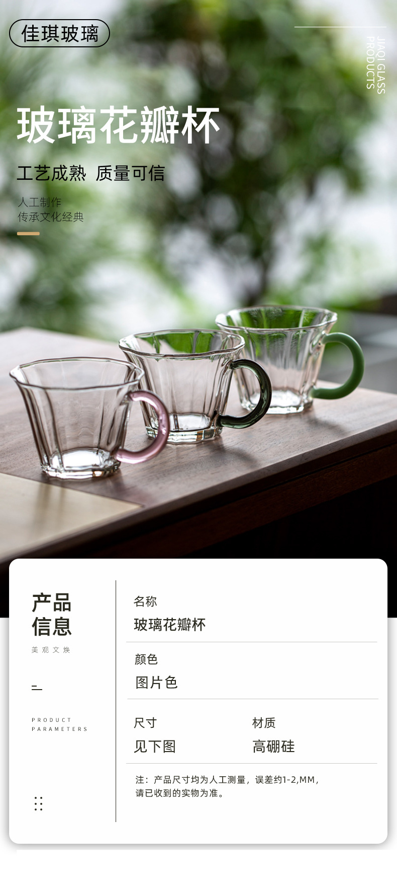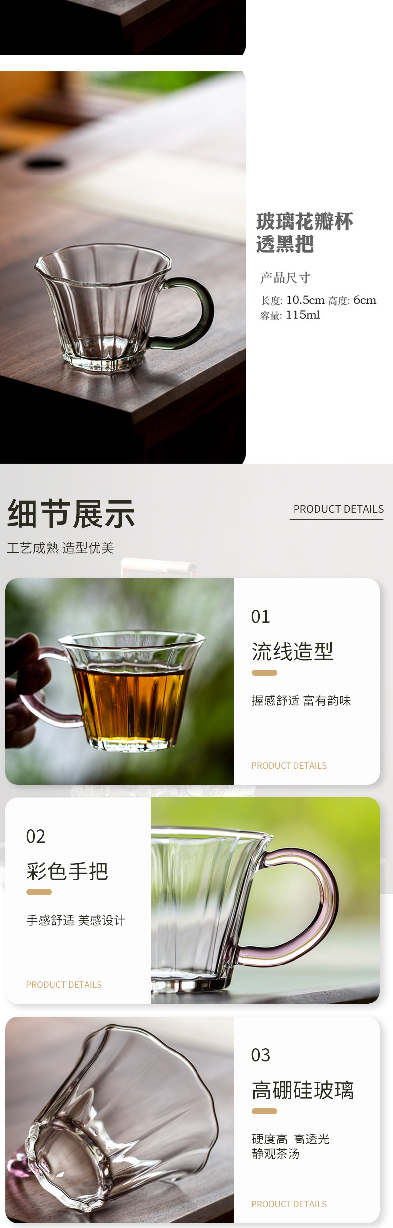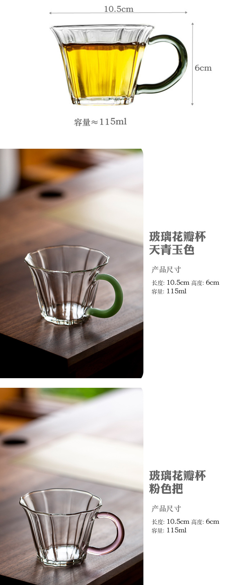 일본식 유리 꽃잎 차 컵 가정용 내열 물 컵 커피 컵 도매 쿵푸 차 세트 핸들 티 컵