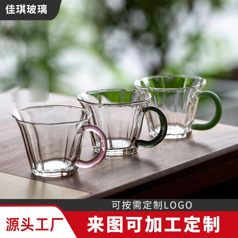 일본식 유리 꽃잎 차 컵 가정용 내열 물 컵 커피 컵 도매 쿵푸 차 세트 핸들 티 컵스토어 가기