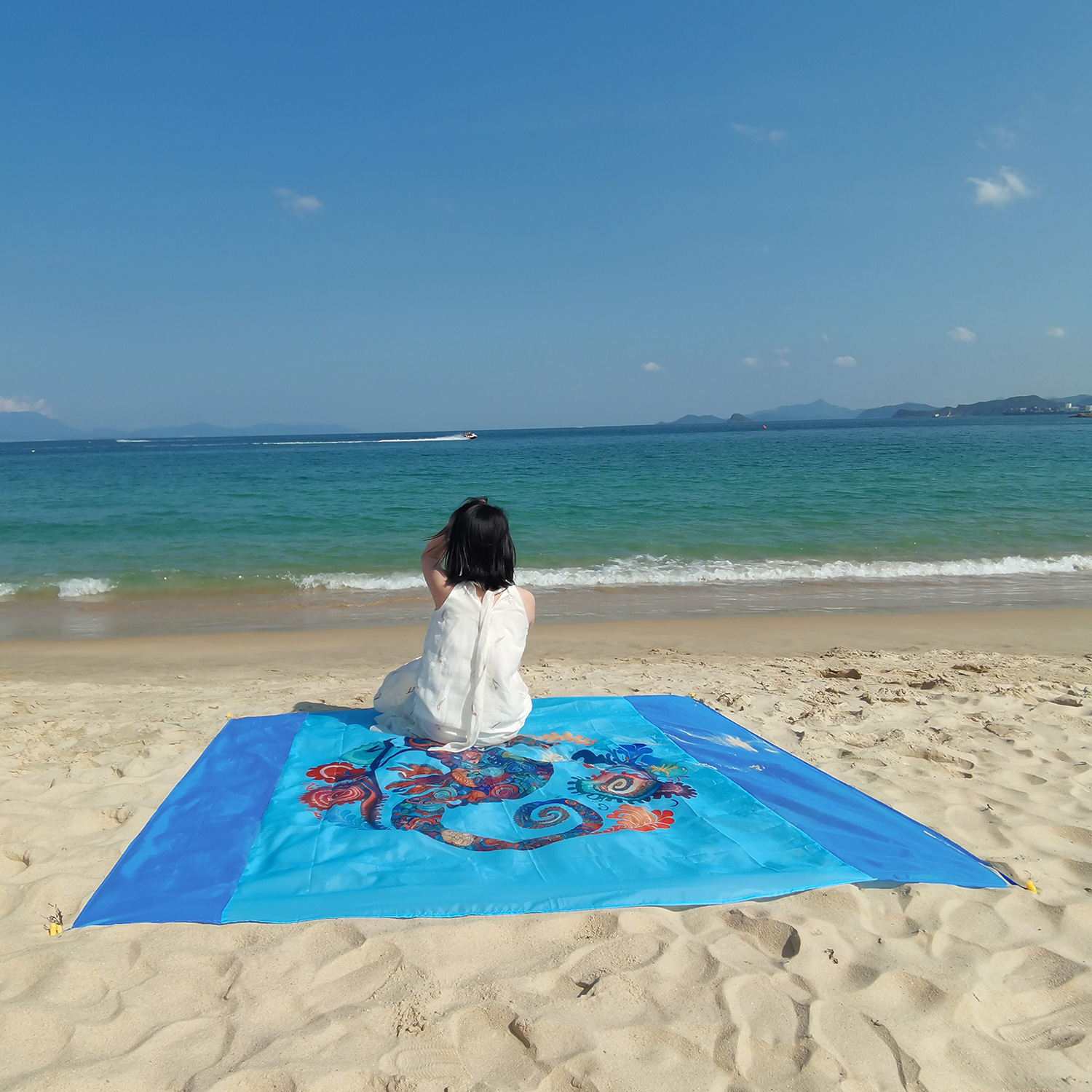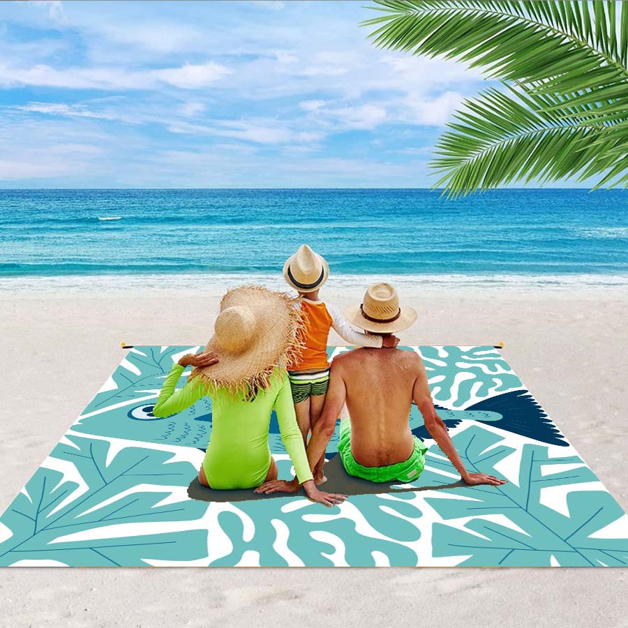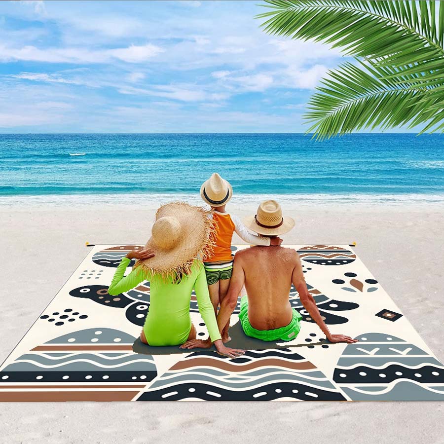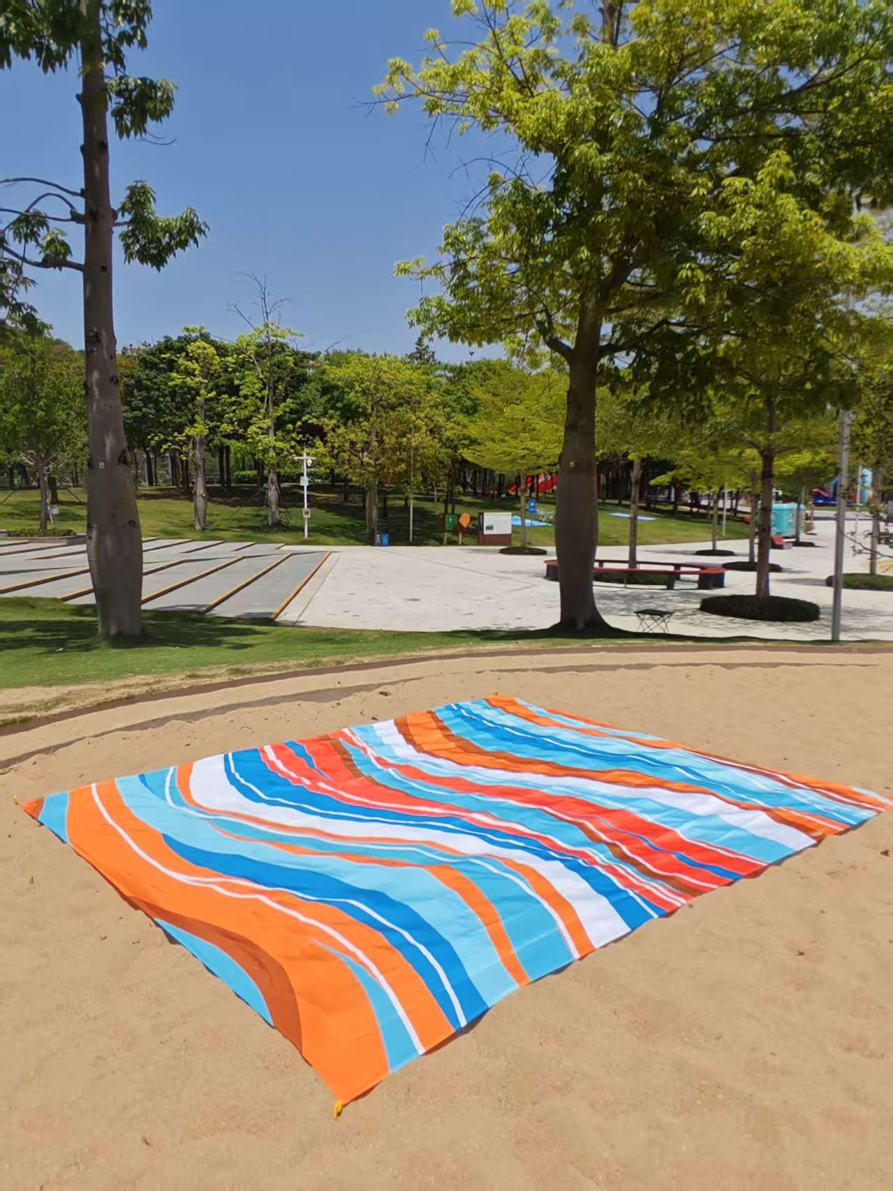 防水防沙毯:我们的沙滩毯具有防水和防沙功能。使用这些防沙沙滩毯,您可以尽情享受沙滩乐趣。只需轻轻一抖,防水毯就能轻松去除所有沙粒,始终保持沙滩垫的清洁。