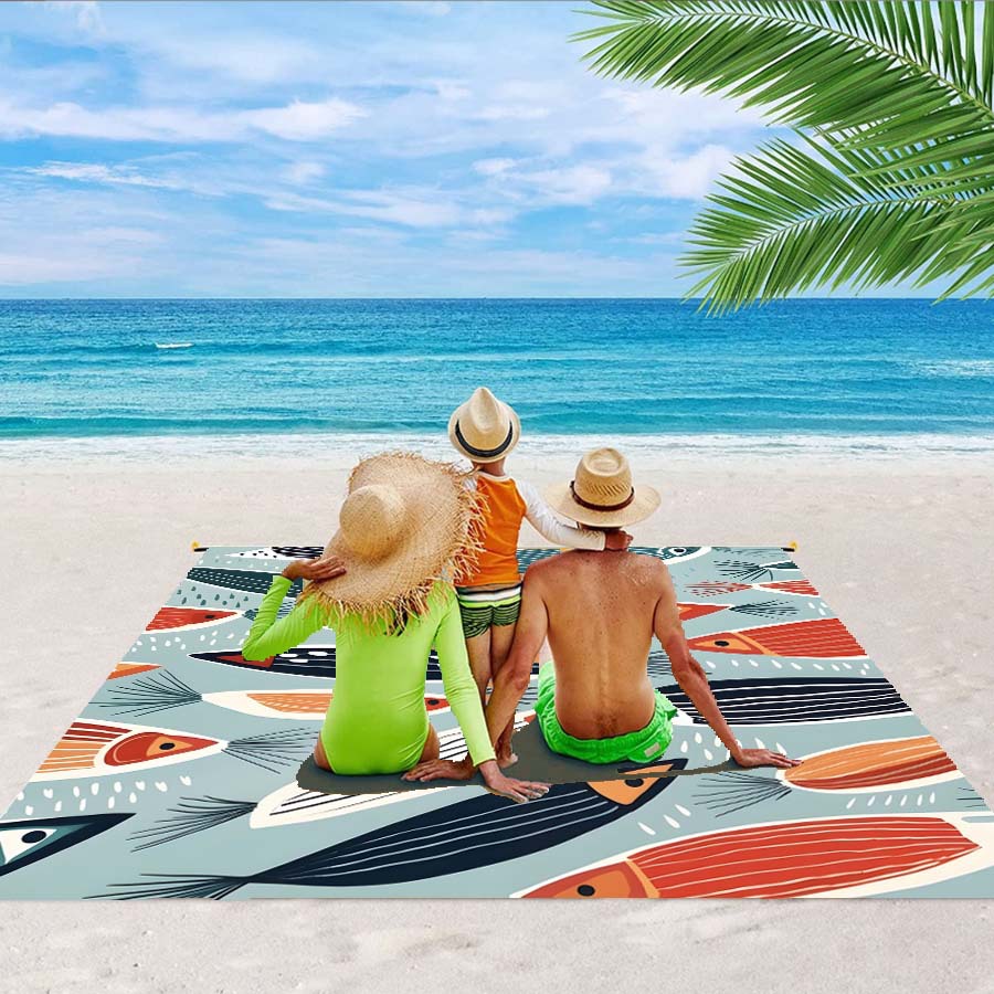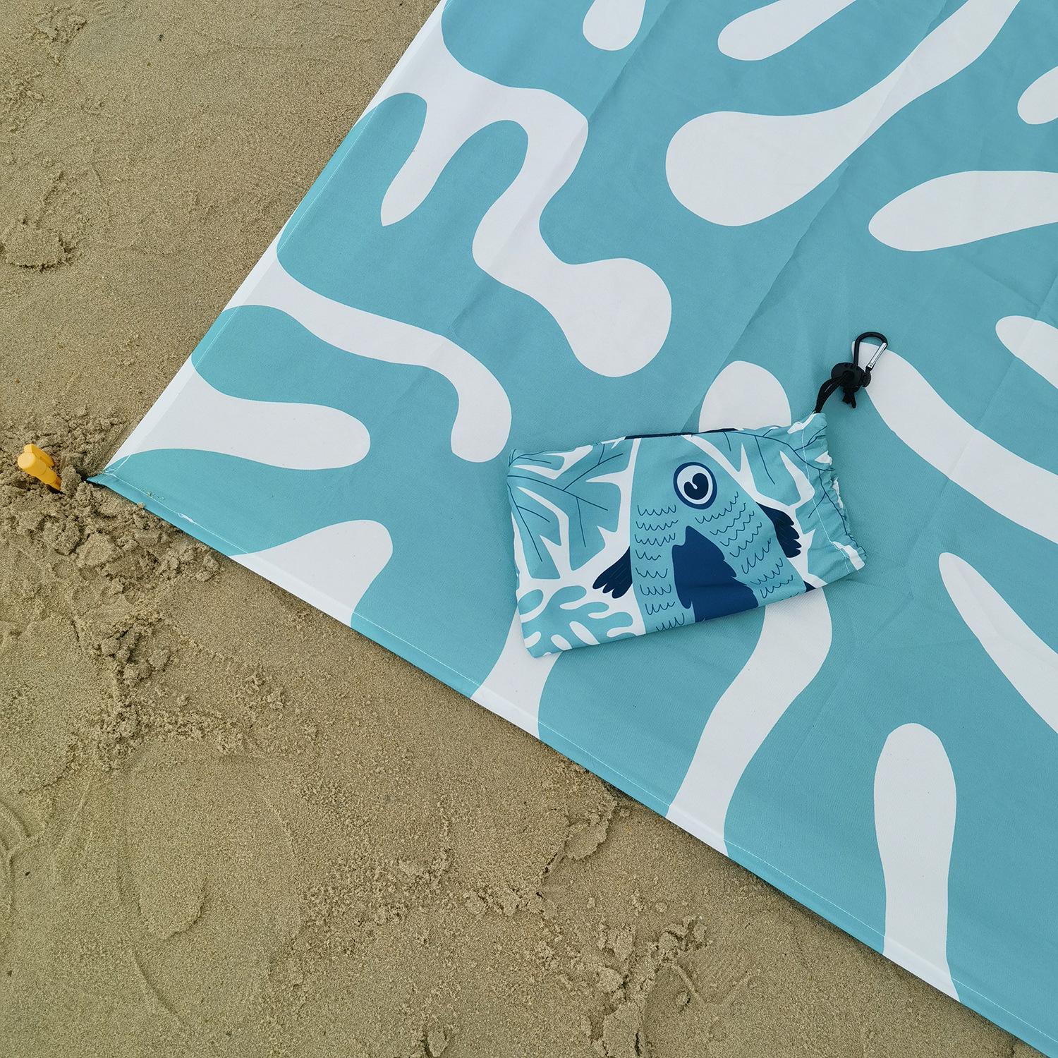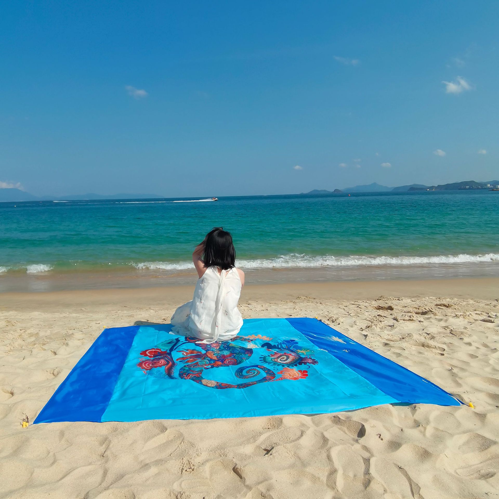 防水防沙毯:我们的沙滩毯具有防水和防沙功能。使用这些防沙沙滩毯,您可以尽情享受沙滩乐趣。只需轻轻一抖,防水毯就能轻松去除所有沙粒,始终保持沙滩垫的清洁。