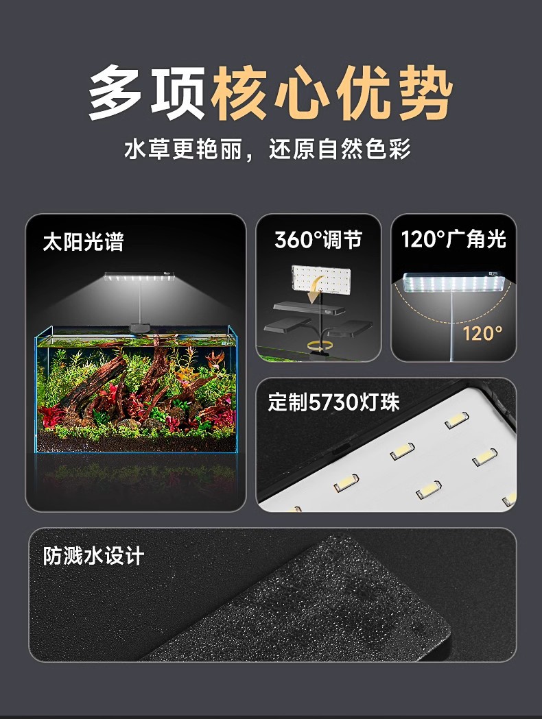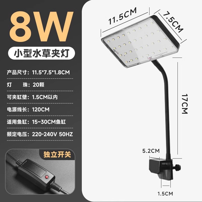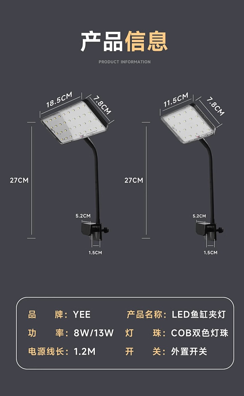 Yee 물고기 탱크 램프 물 잔디 램프 전체 스펙트럼 작은 클립 램프 작은 조경 특수 조명 램프 밝게하는 데스크톱보기 램프