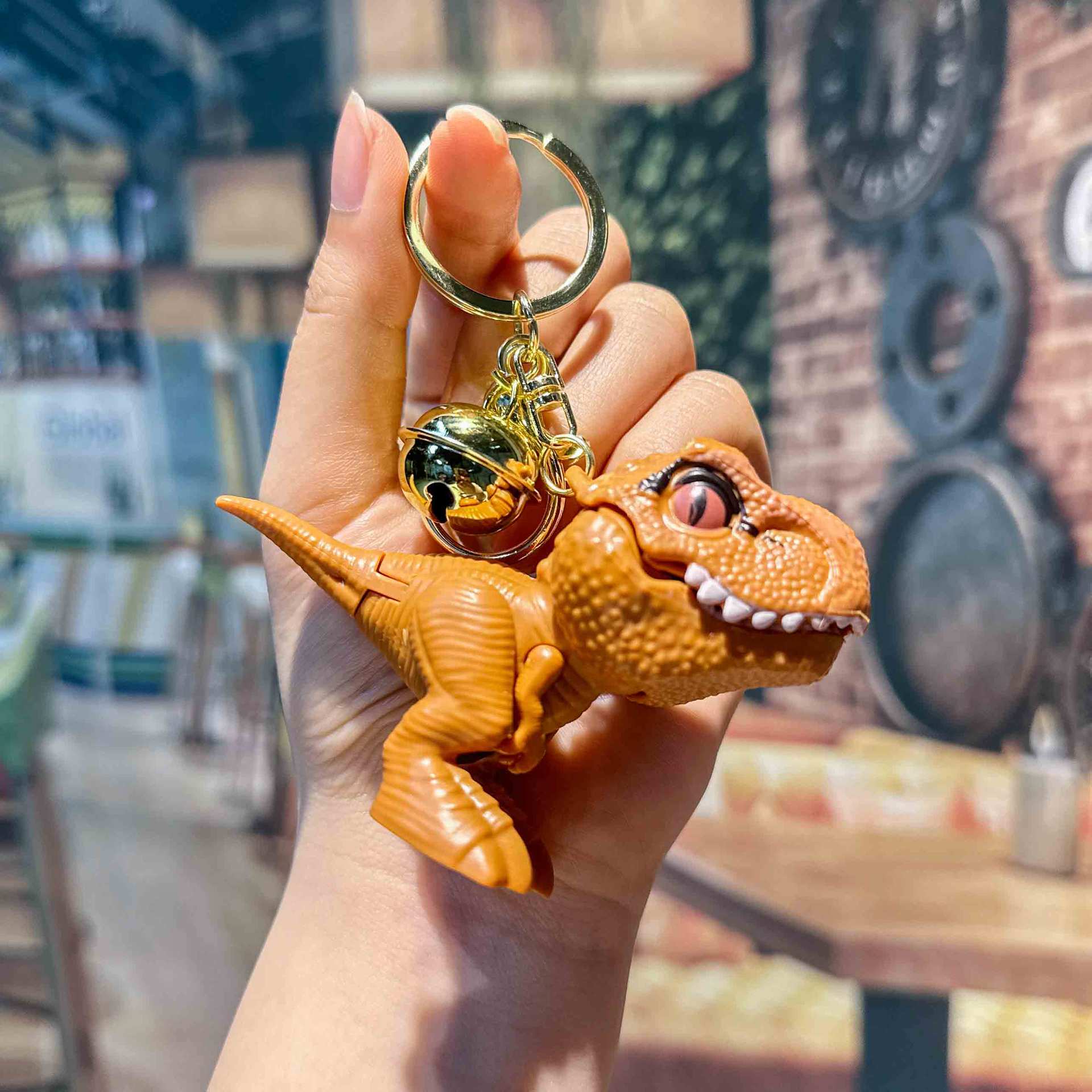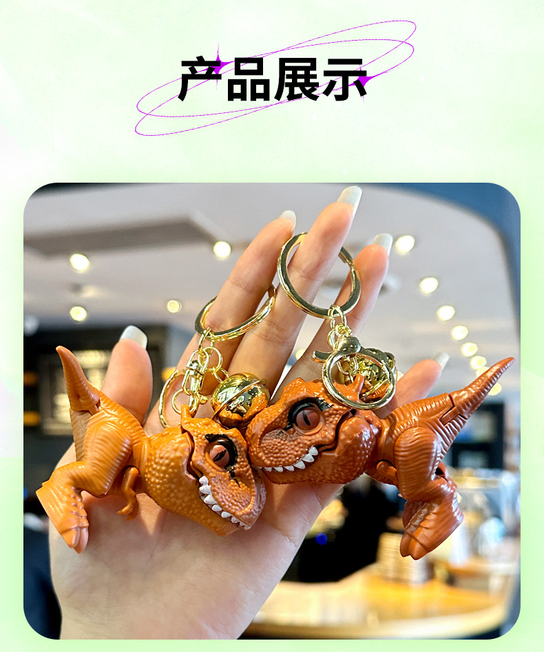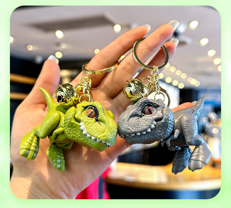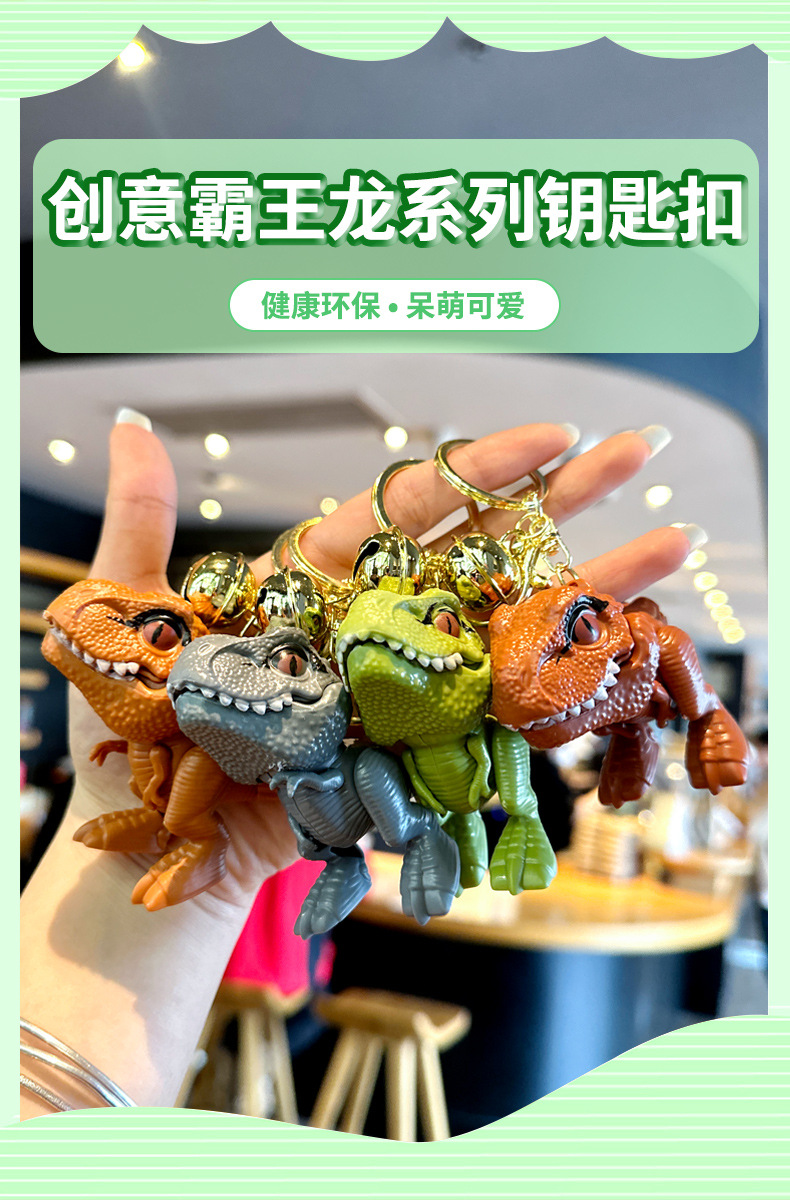 인터넷 연예인 PVC 만화 티라노사우루스 렉스 열쇠 고리 펜던트 공룡 벨 클립 인형 기계 핸드 바이트 열쇠 고리 펜던트스토어 가기