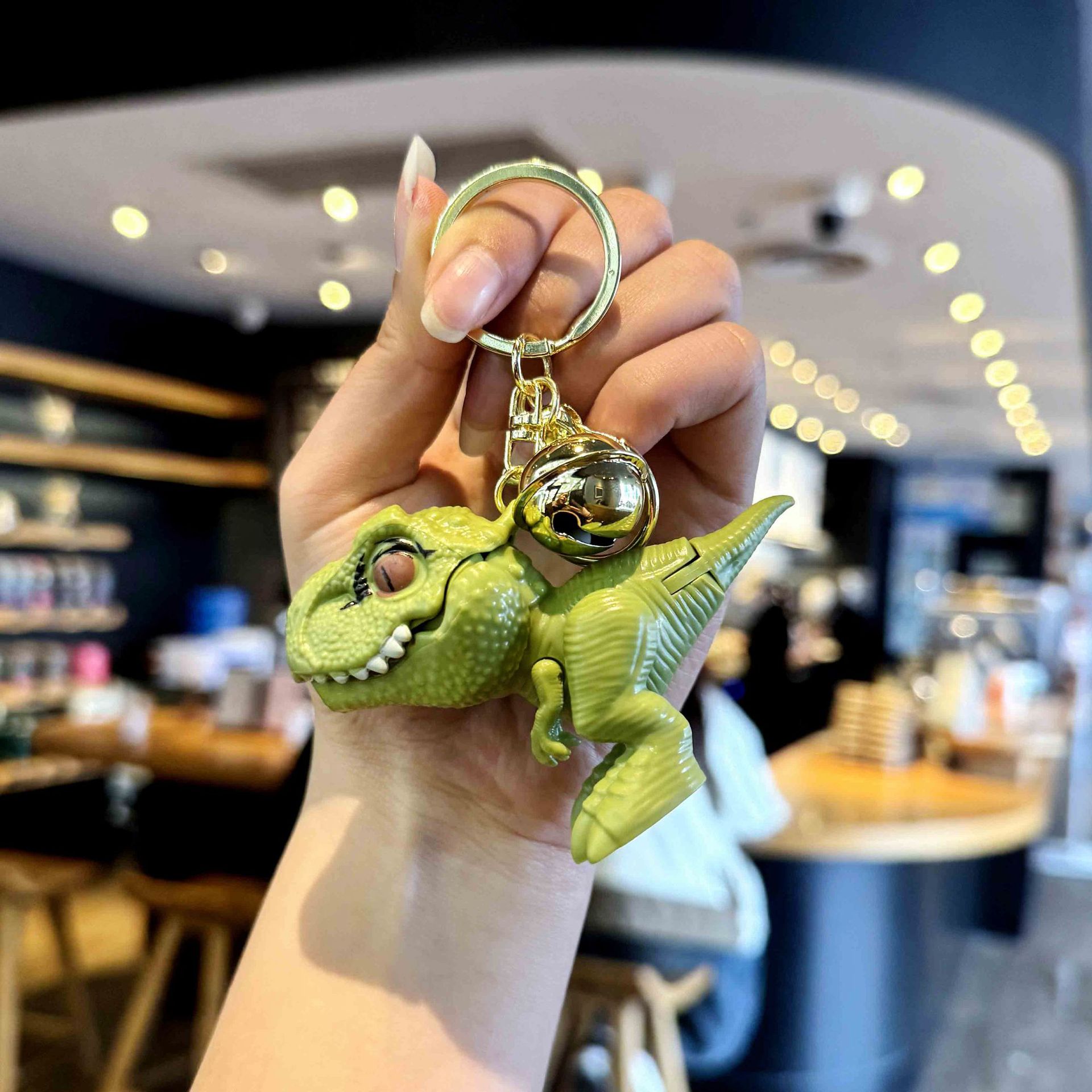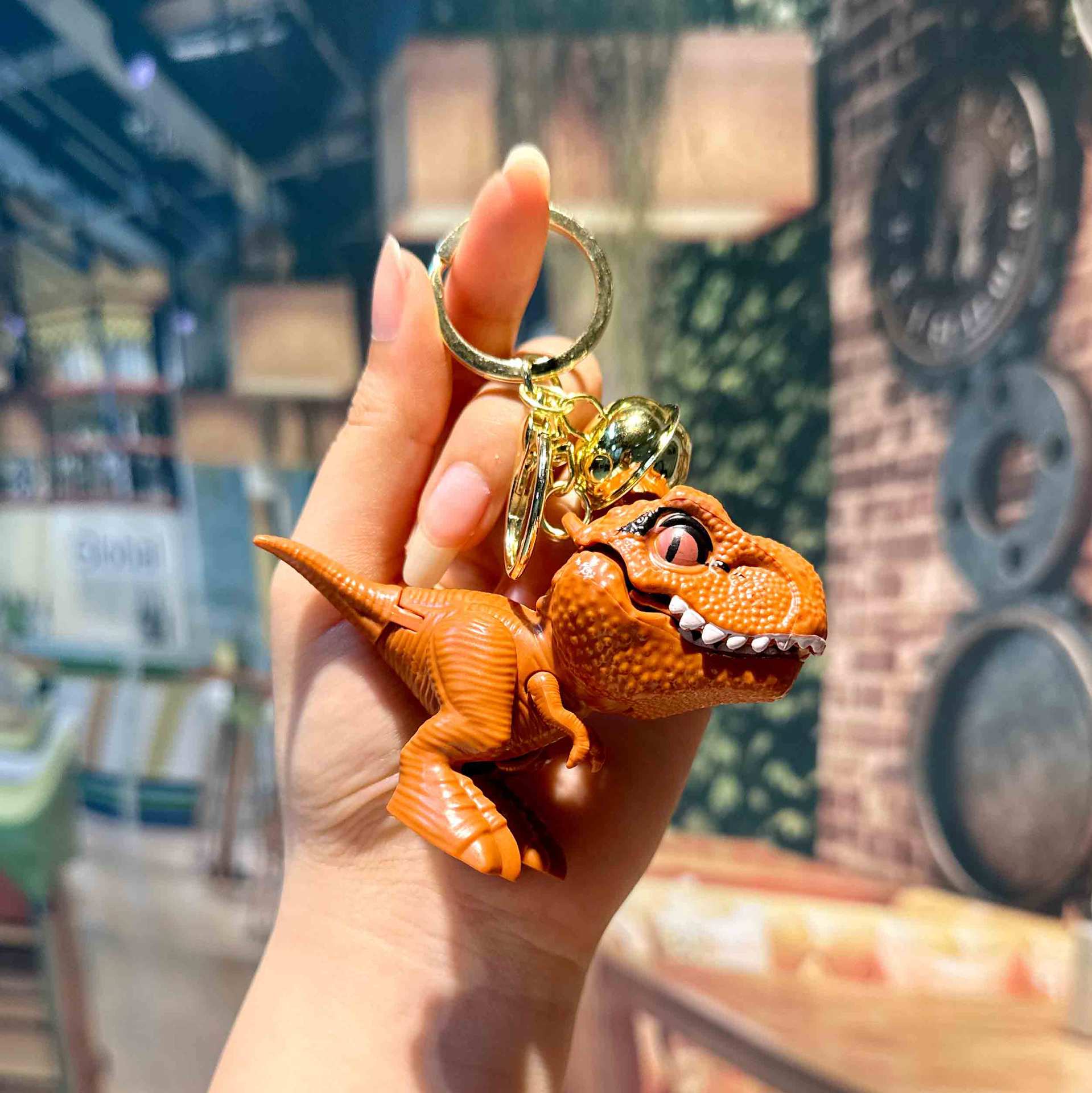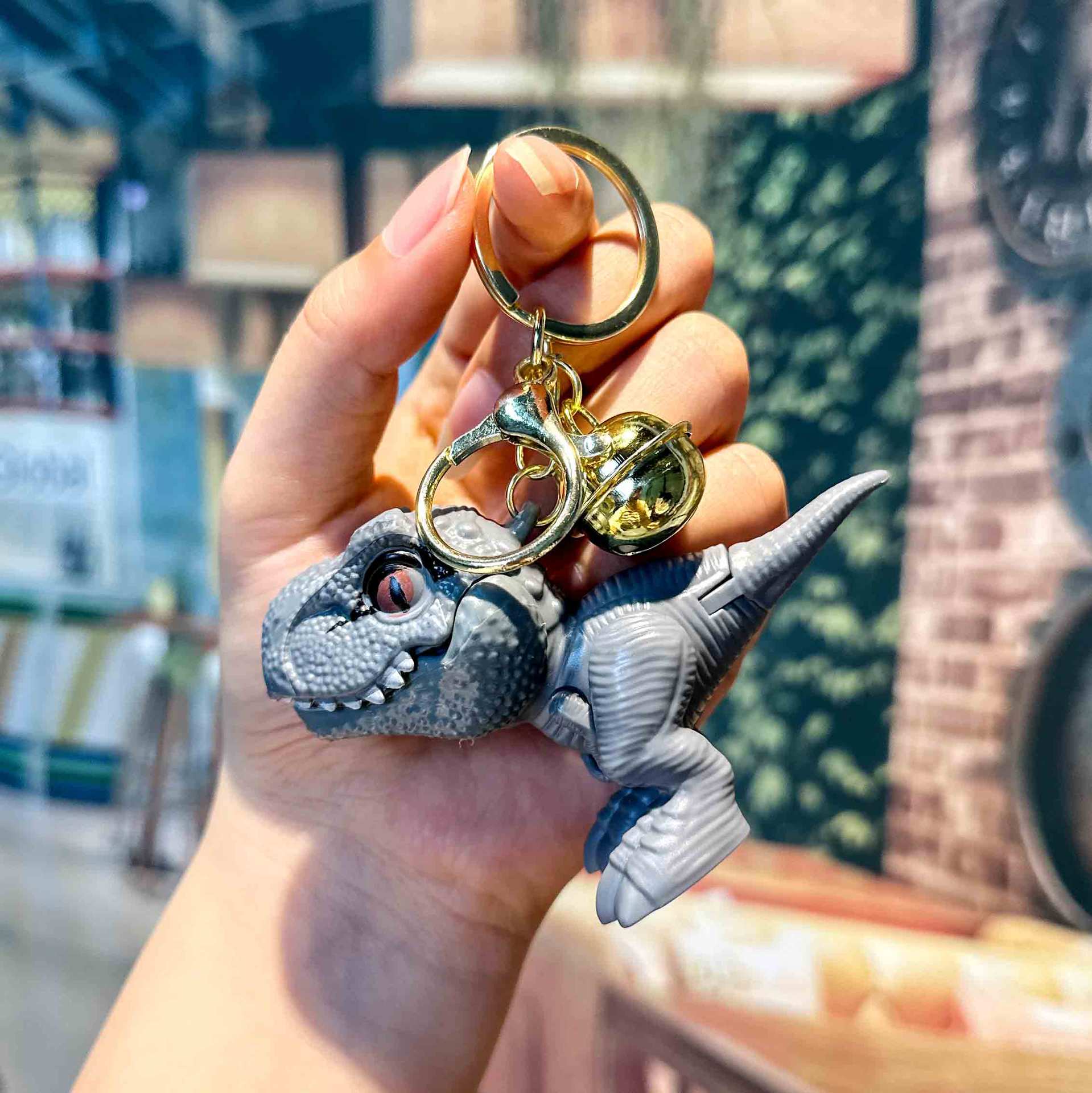 인터넷 연예인 PVC 만화 티라노사우루스 렉스 열쇠 고리 펜던트 공룡 벨 클립 인형 기계 핸드 바이트 열쇠 고리 펜던트스토어 가기