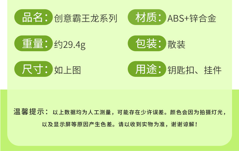 인터넷 연예인 PVC 만화 티라노사우루스 렉스 열쇠 고리 펜던트 공룡 벨 클립 인형 기계 핸드 바이트 열쇠 고리 펜던트