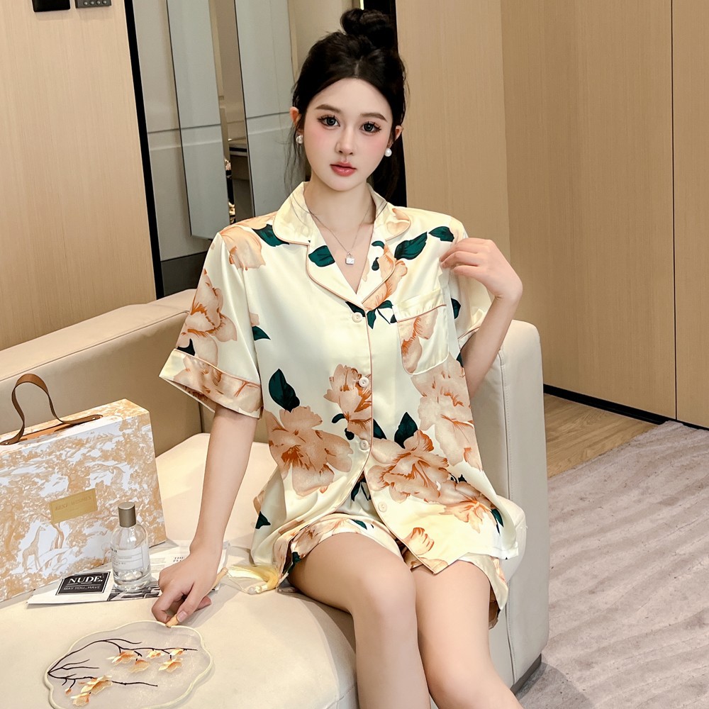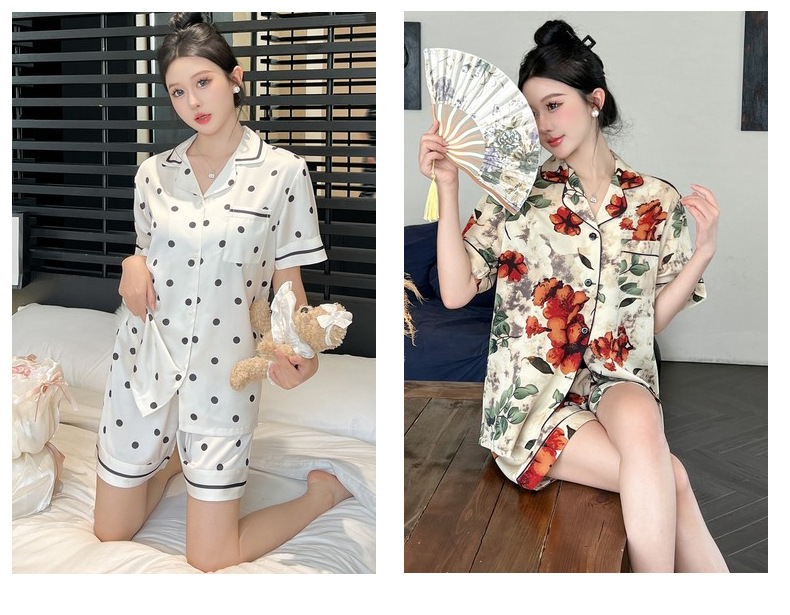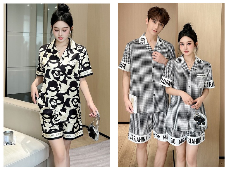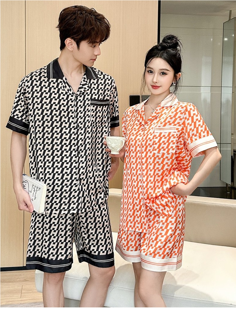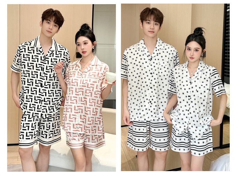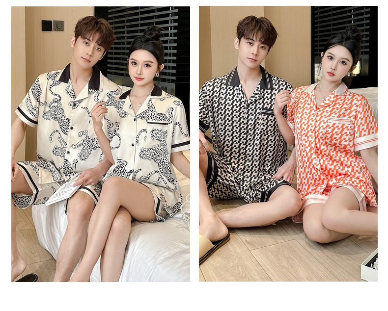커플 잠옷 2026 봄 여름 남성용 신상 아이스 실크 반팔 반바지 세트 얇은 여성용 홈웨어 도매스토어 가기