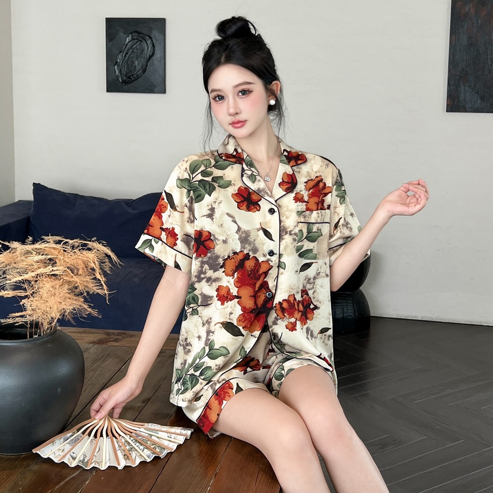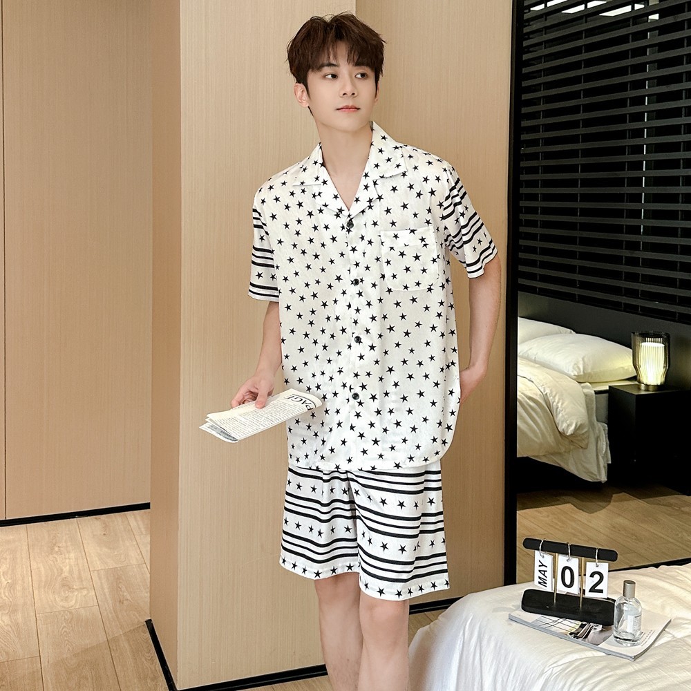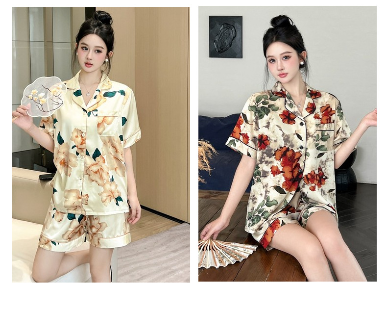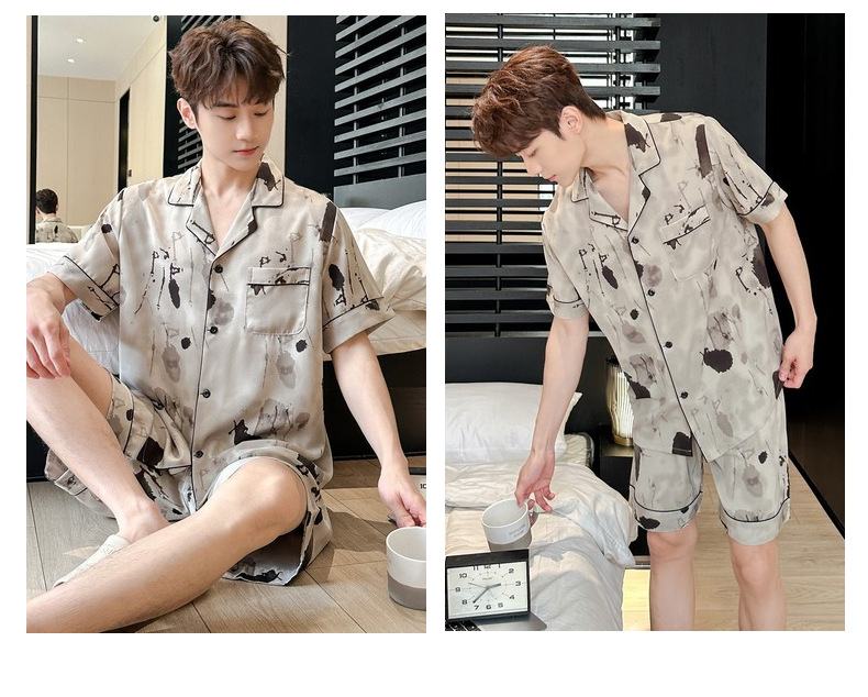 커플 잠옷 2026 봄 여름 남성용 신상 아이스 실크 반팔 반바지 세트 얇은 여성용 홈웨어 도매스토어 가기