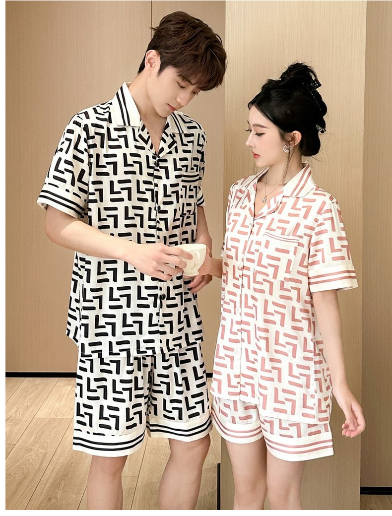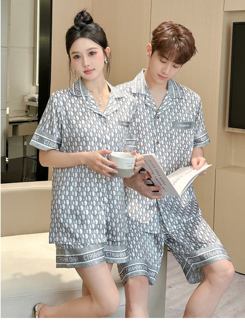 커플 잠옷 2026 봄 여름 남성용 신상 아이스 실크 반팔 반바지 세트 얇은 여성용 홈웨어 도매