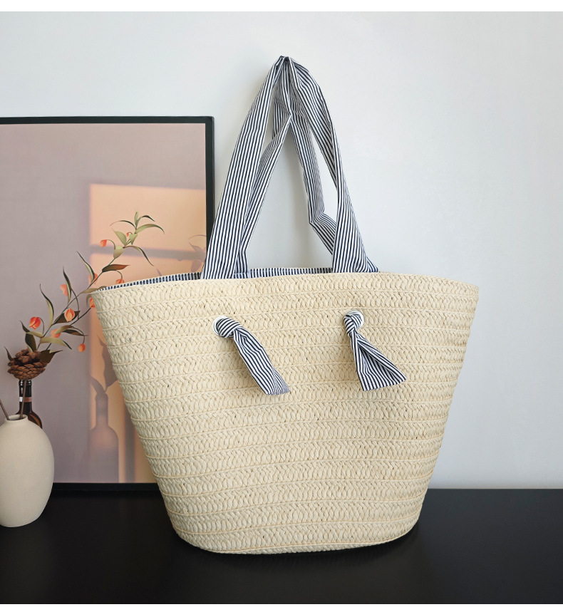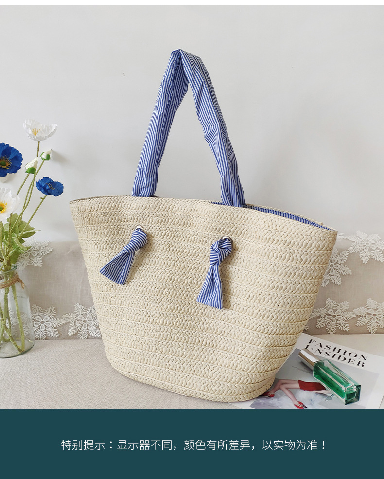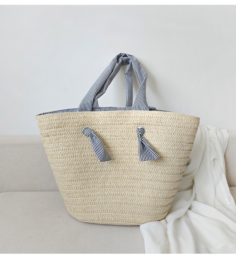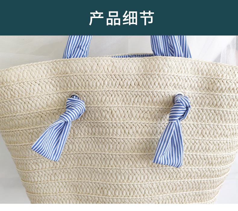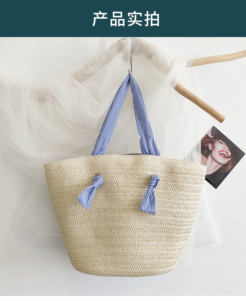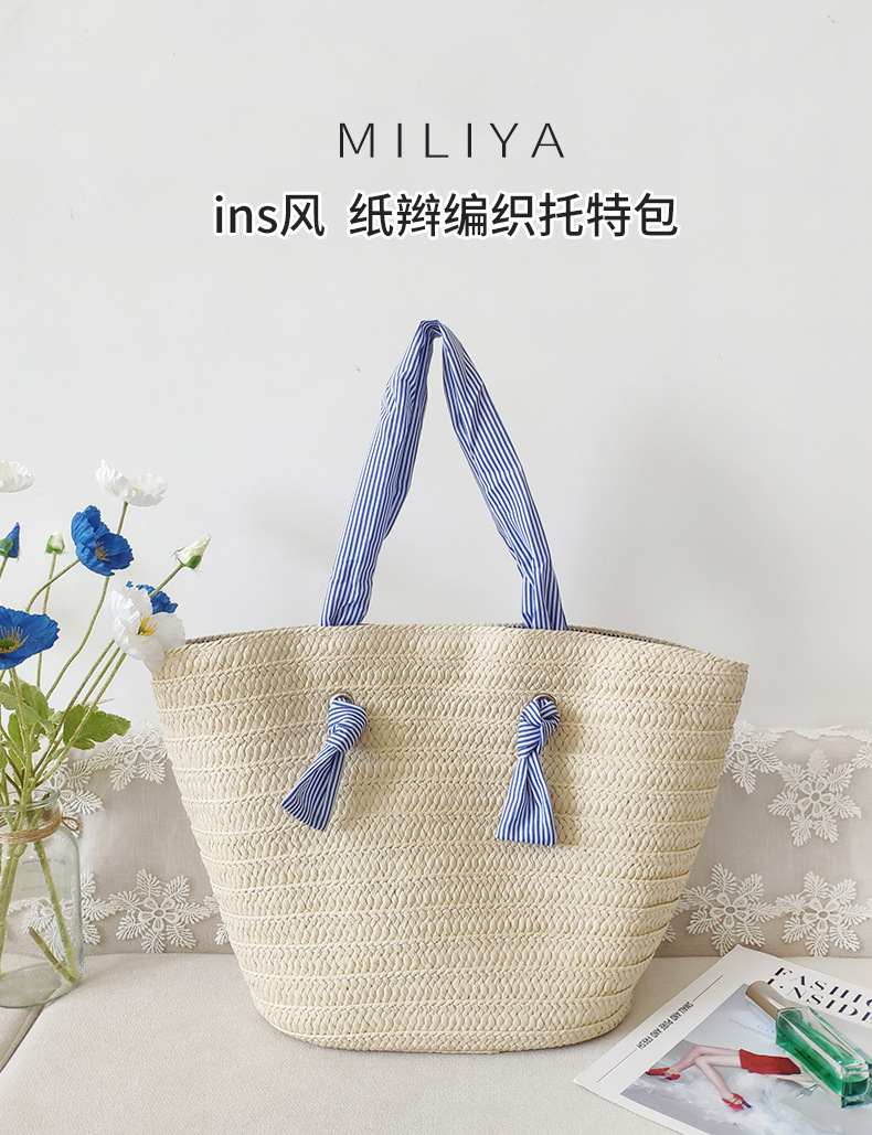 ins风新款大容量托特通勤手工草编包纸辫编织包单肩包度假沙滩女包斜挎