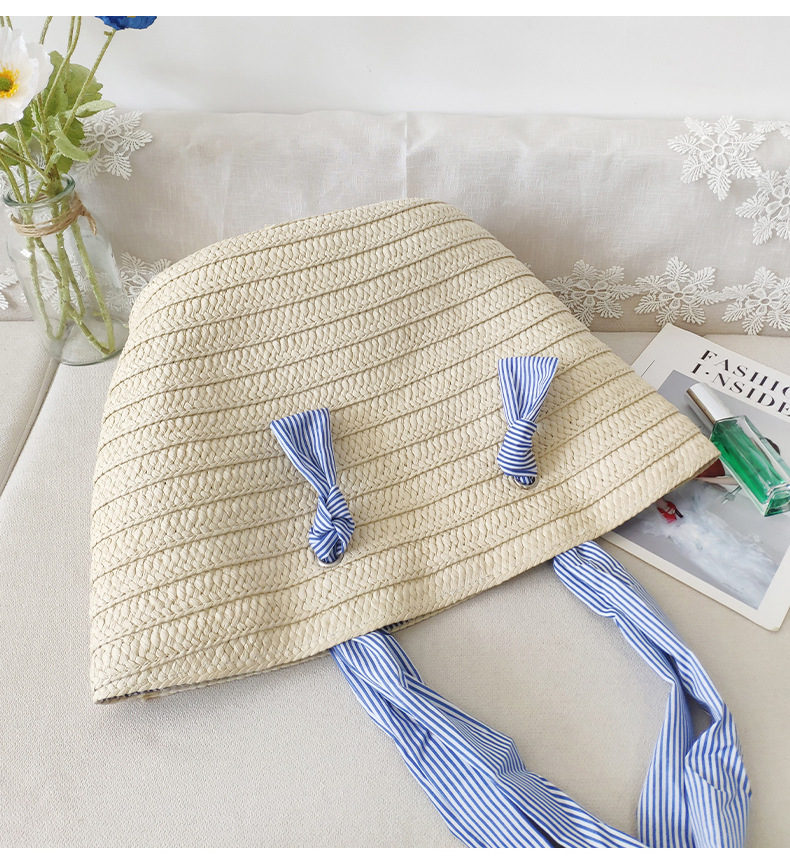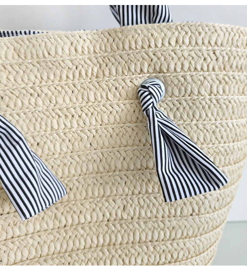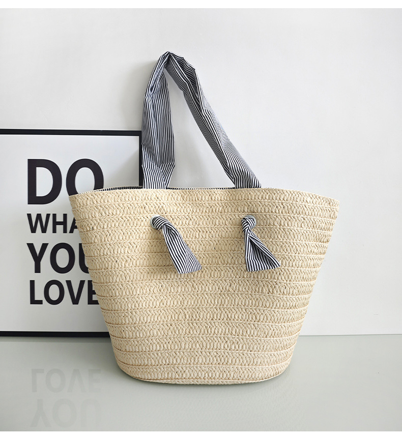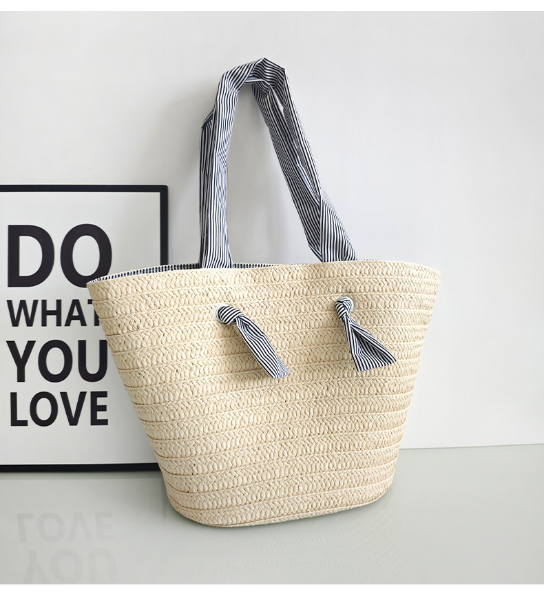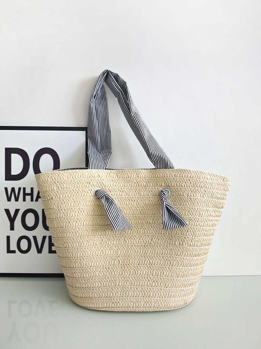 ins风新款大容量托特通勤手工草编包纸辫编织包单肩包度假沙滩女包斜挎