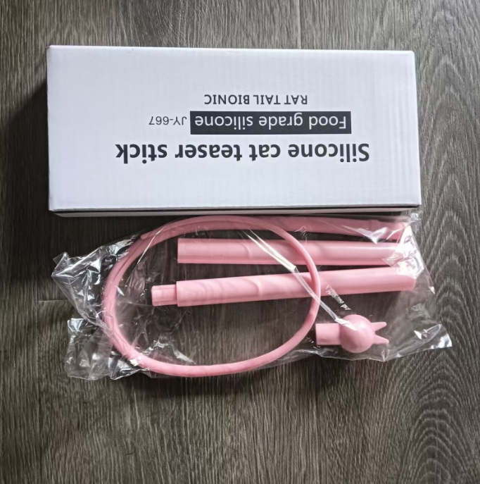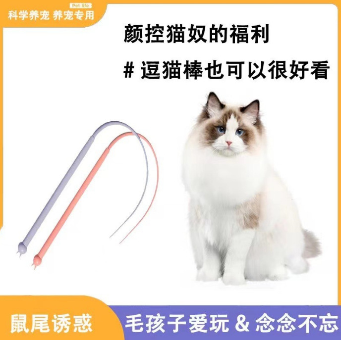 실리콘 고양이 티저 막대 마우스 테일 실리콘 고양이 티저 막대 고양이 대화 형 시뮬레이션 마우스 교체 가능한 막대 고양이 장난감을 잡아라스토어 가기