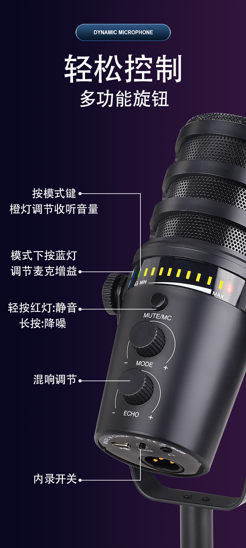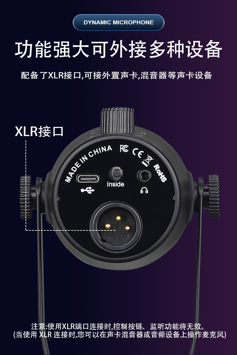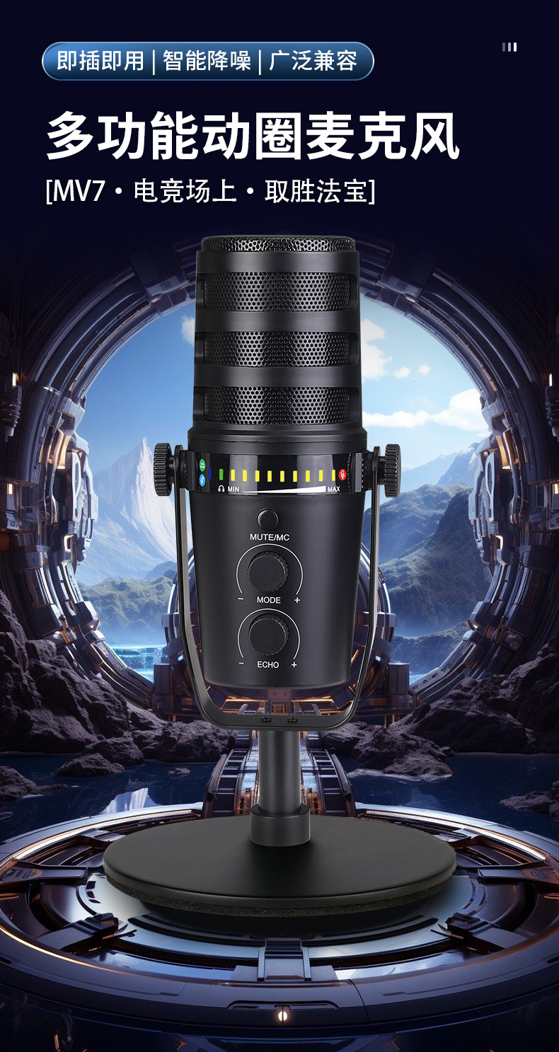 제조사 MV7 유선 USB/XLR 다이나믹 마이크 컴퓨터 휴대폰 사운드 카드 라이브 방송 녹음 노래방 게임용 마이크