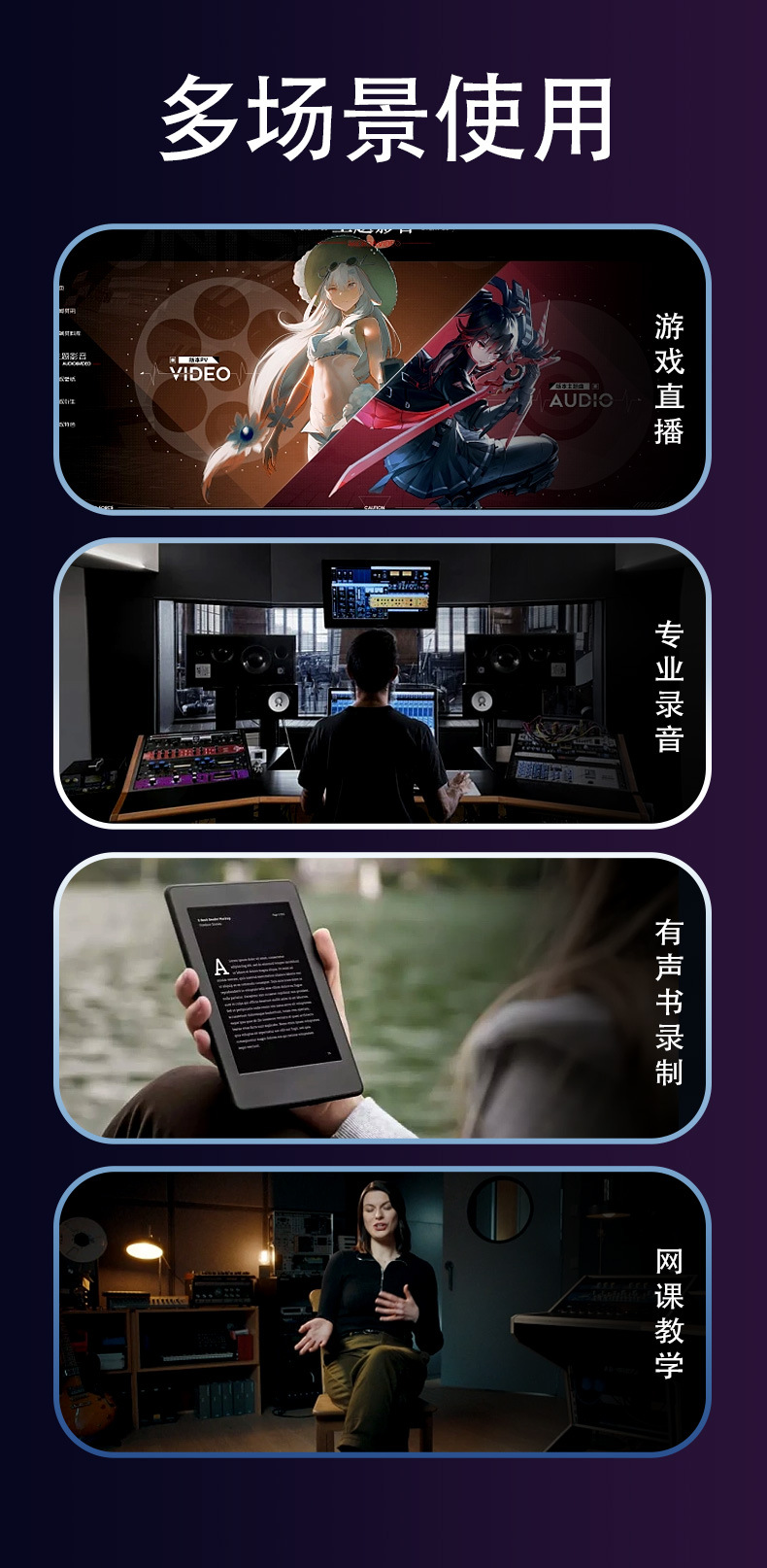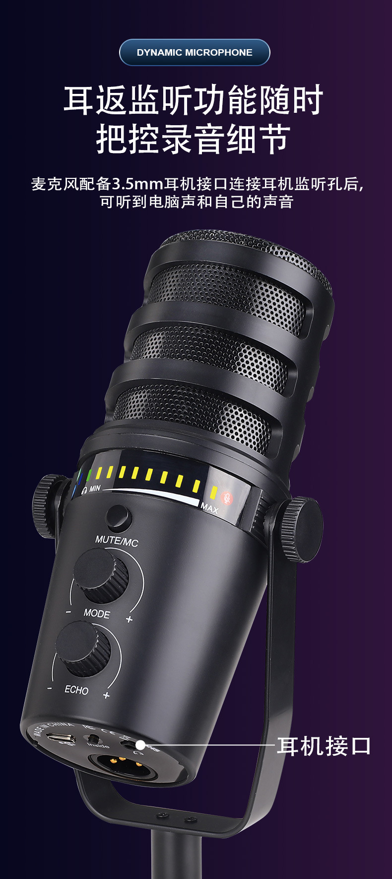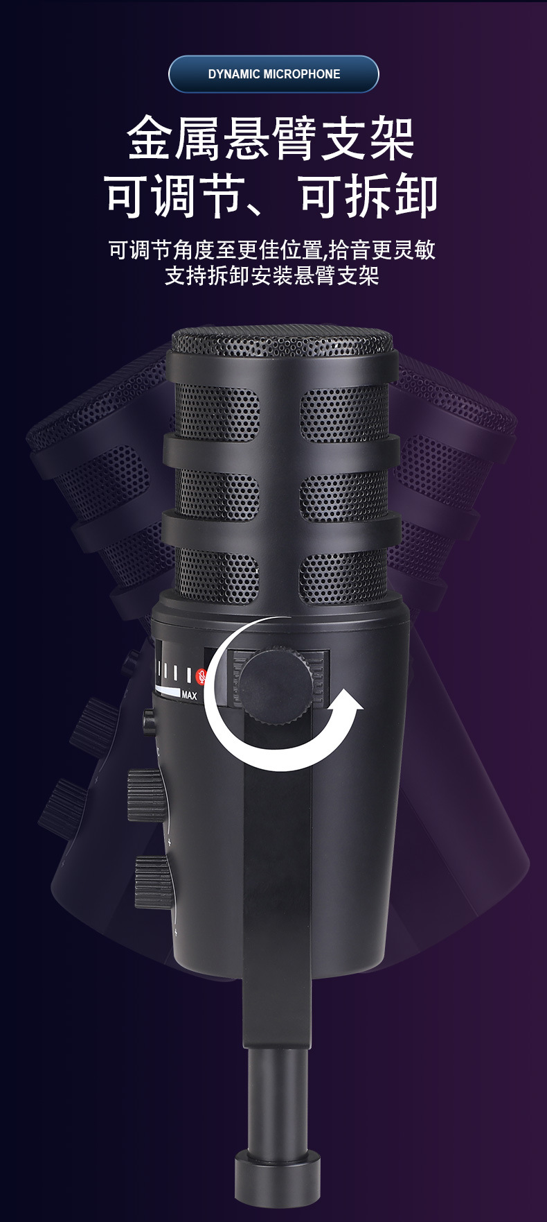 제조사 MV7 유선 USB/XLR 다이나믹 마이크 컴퓨터 휴대폰 사운드 카드 라이브 방송 녹음 노래방 게임용 마이크