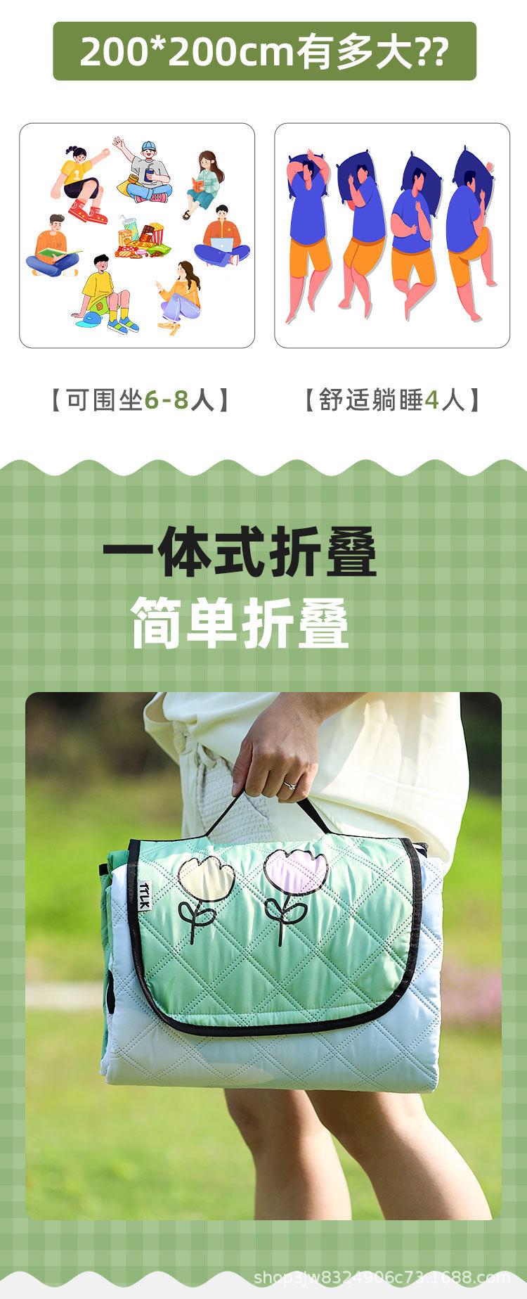 피크닉 매트 습기 방지 매트 두꺼운 야외 바닥 매트 휴대용 야외 피크닉 방수 쿠션 캠핑 매트 초음파 기술