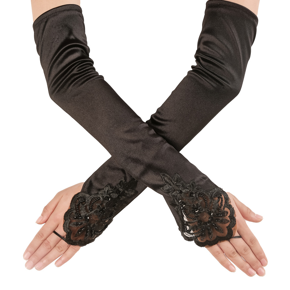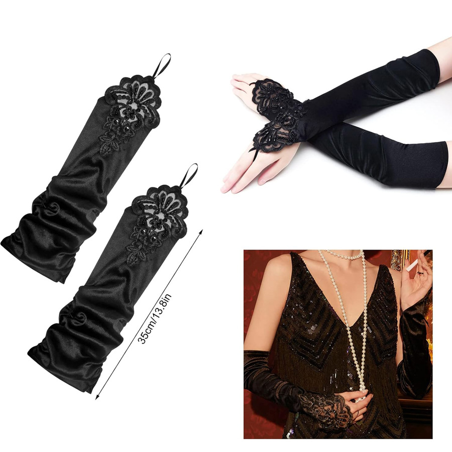 1920 년대 가장 무도회 장갑 여성 개츠비 블랙 레드 화이트 장갑 웨딩 원피스 헤드폰 정리