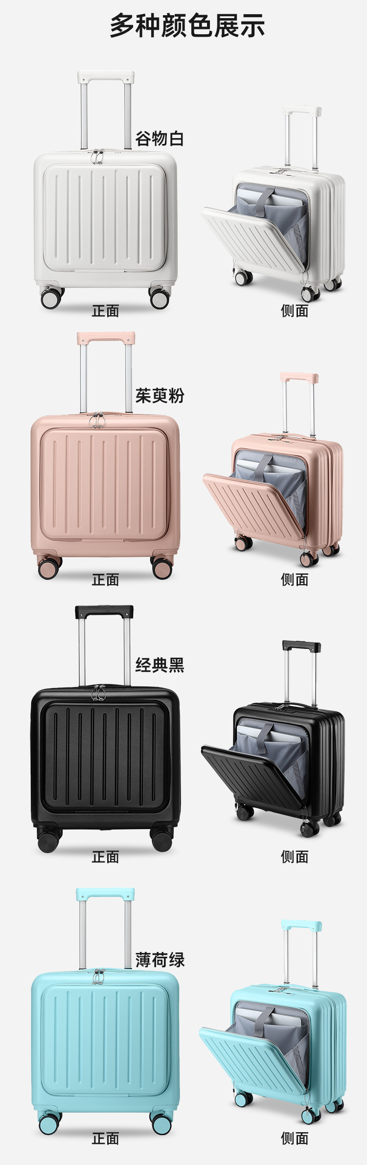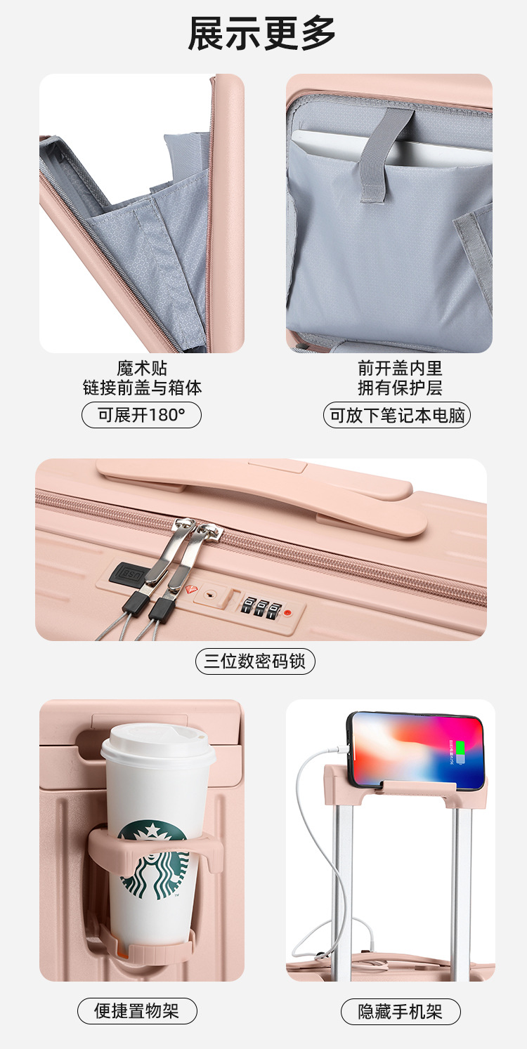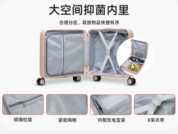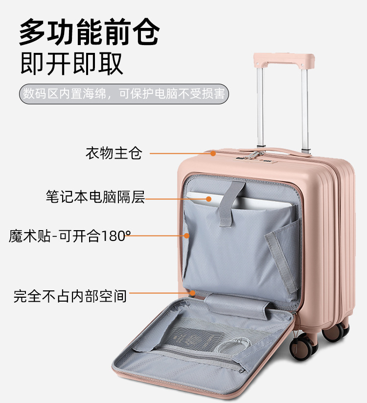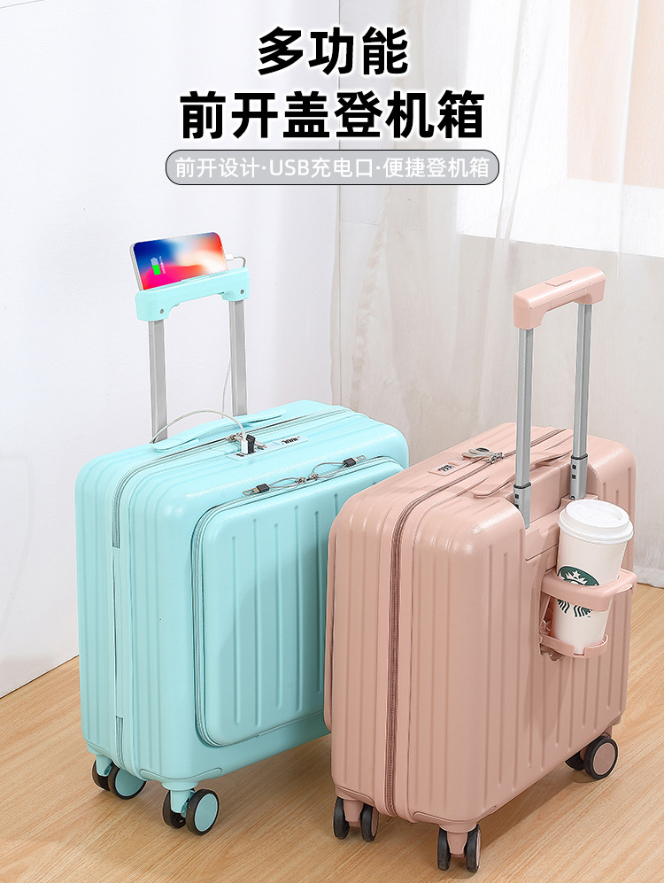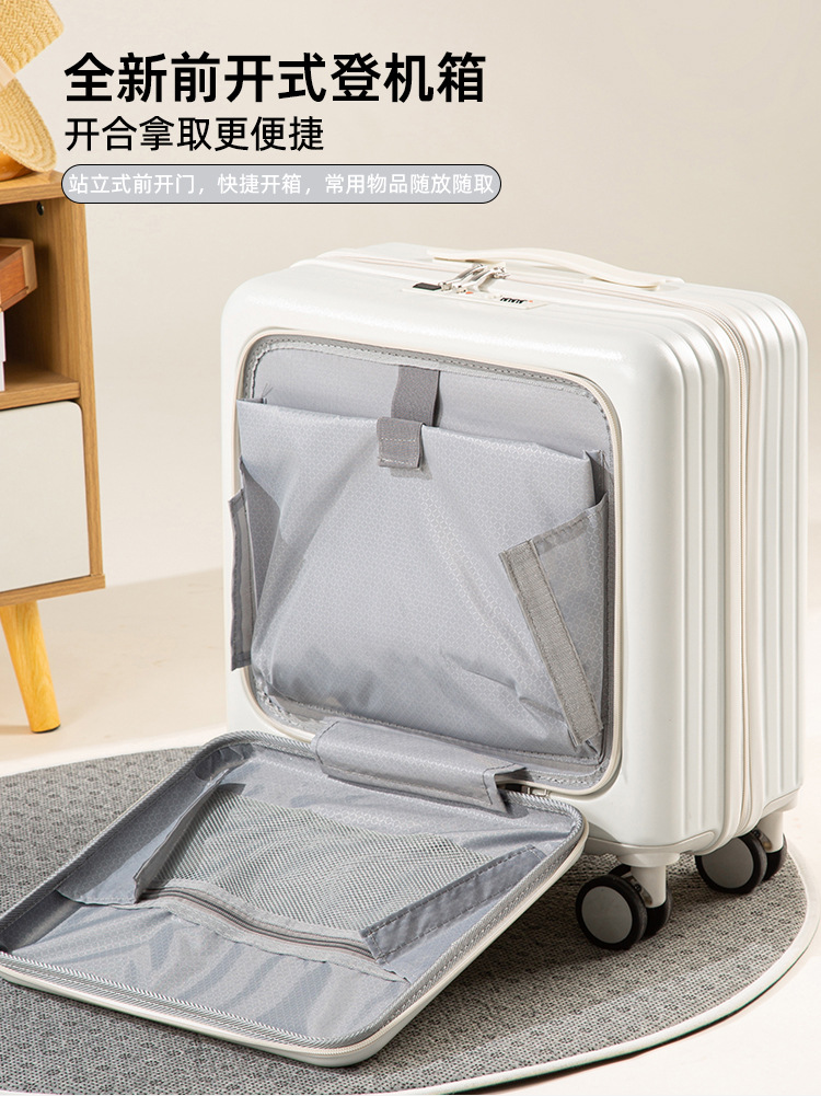 18인치 탑승용 캐리어 가방, 학생용 20inch 여행용 캐리어, 앞면 개방형 비밀번호 잠금 여행 가방스토어 가기