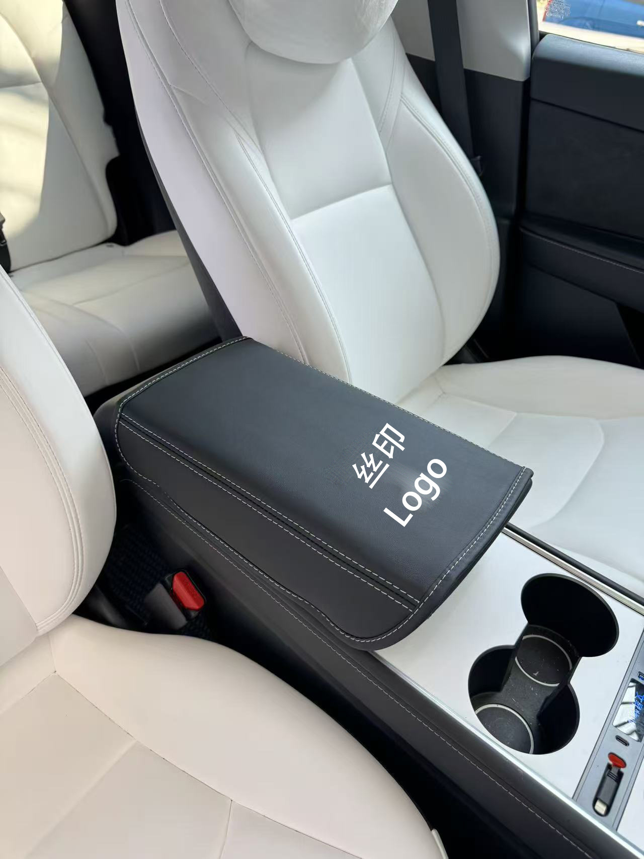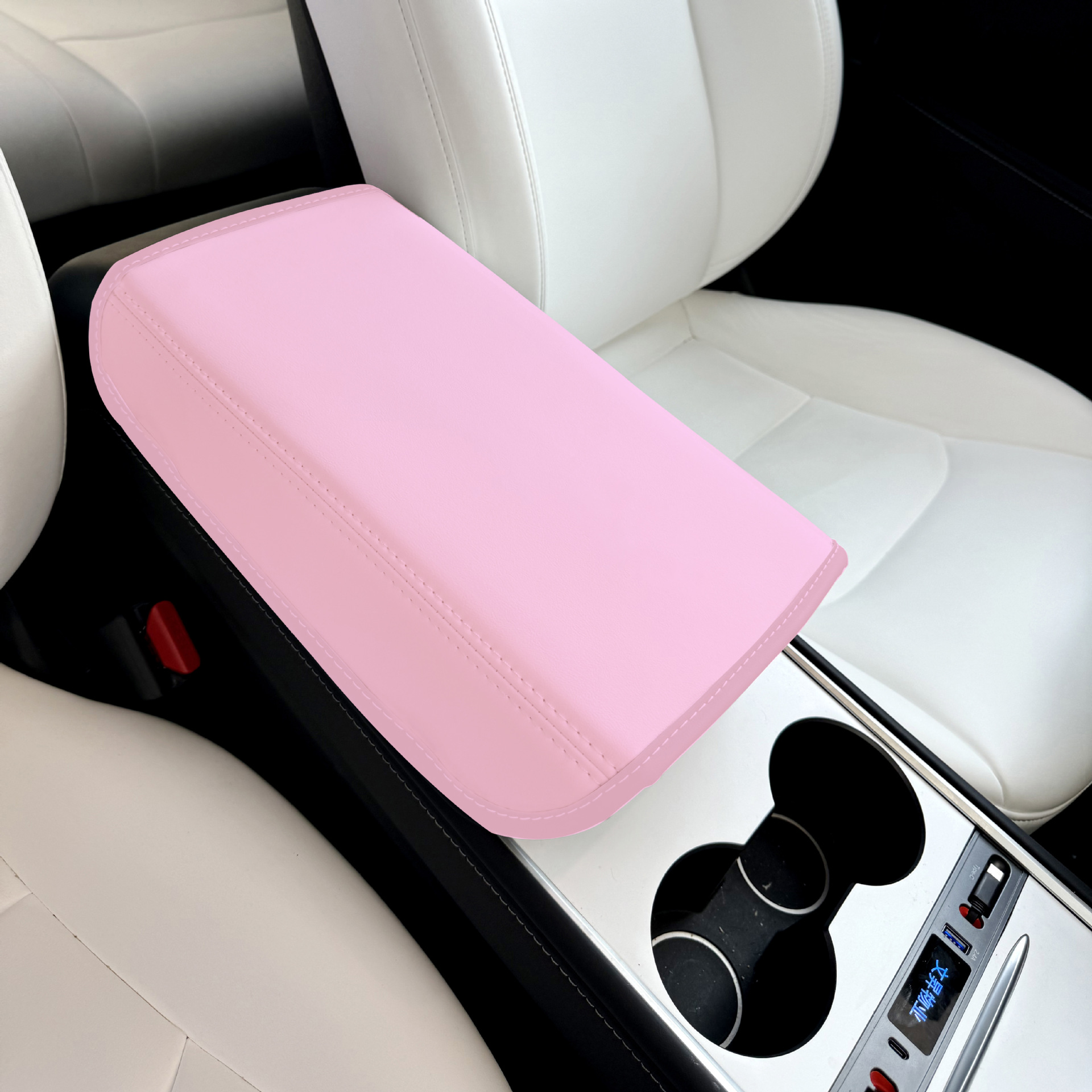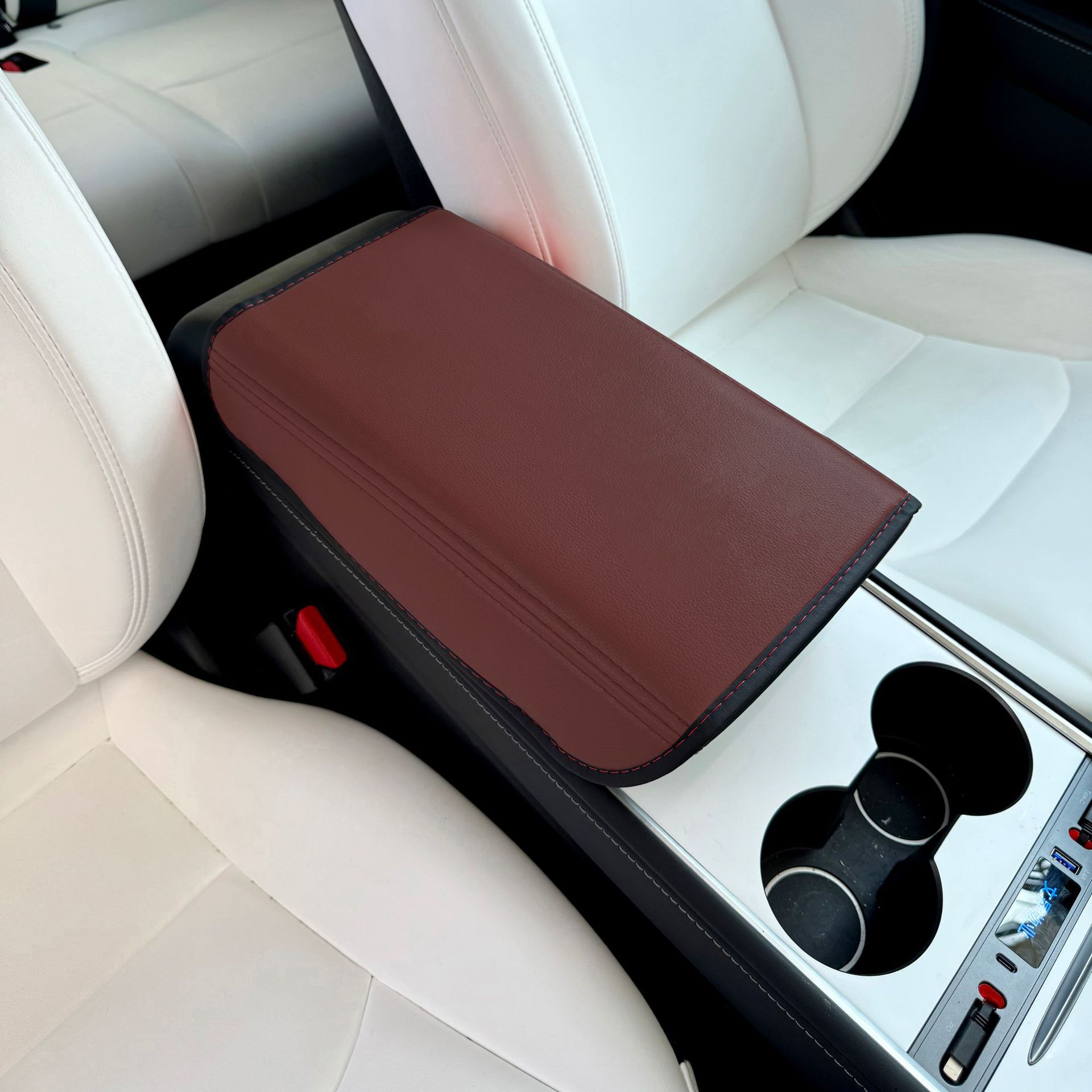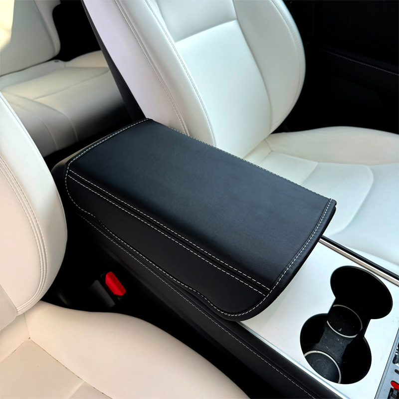 테슬라 Huanxin Model3/y 팔걸이 상자 보호 커버 아마존 가죽 자동차 중앙 팔걸이 패드에 적합