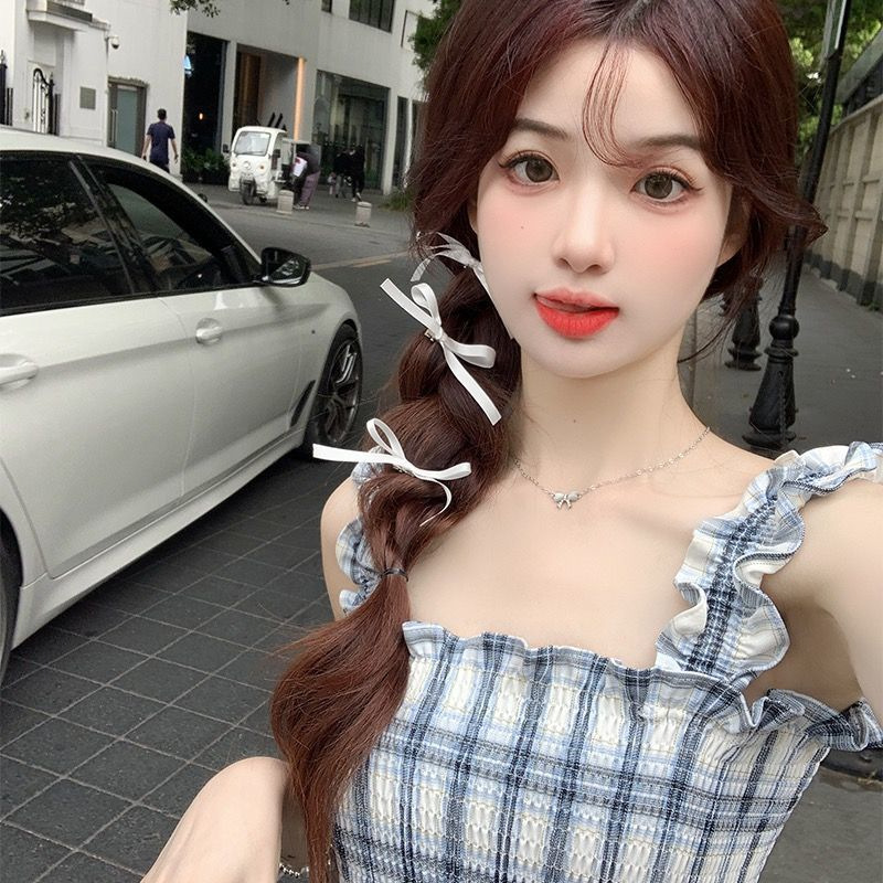 봄과 가을 새로운 통근 광장 칼라 높은 허리 슬림 긴 원피스 민소매 격자 무늬 슬립 원피스