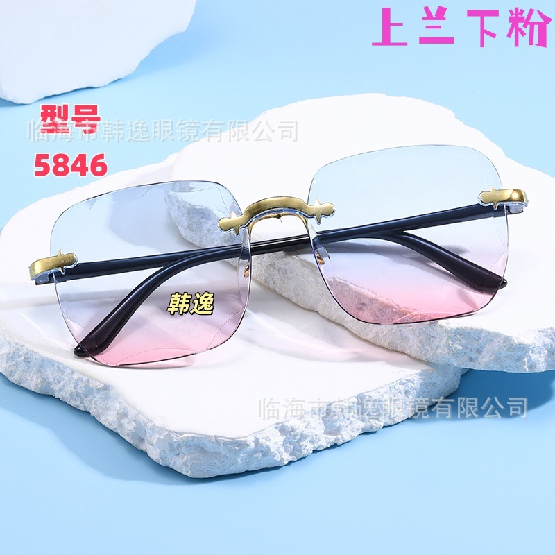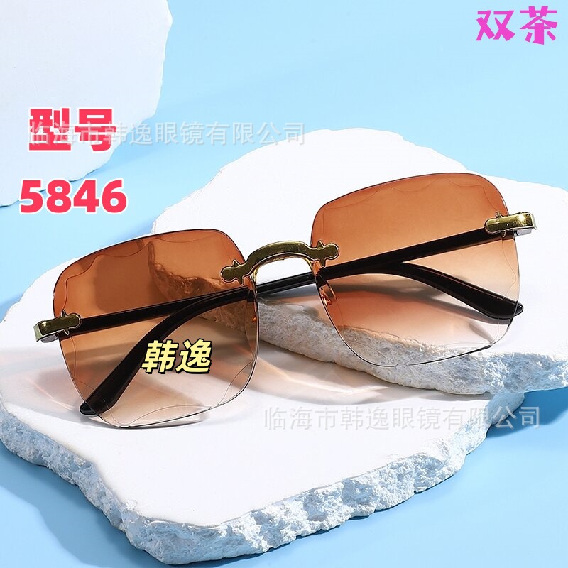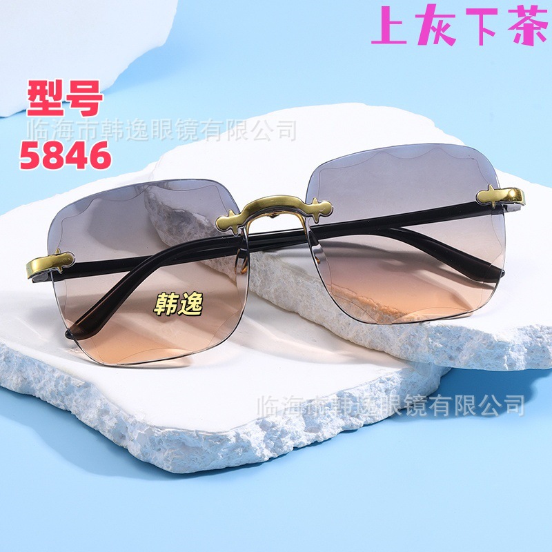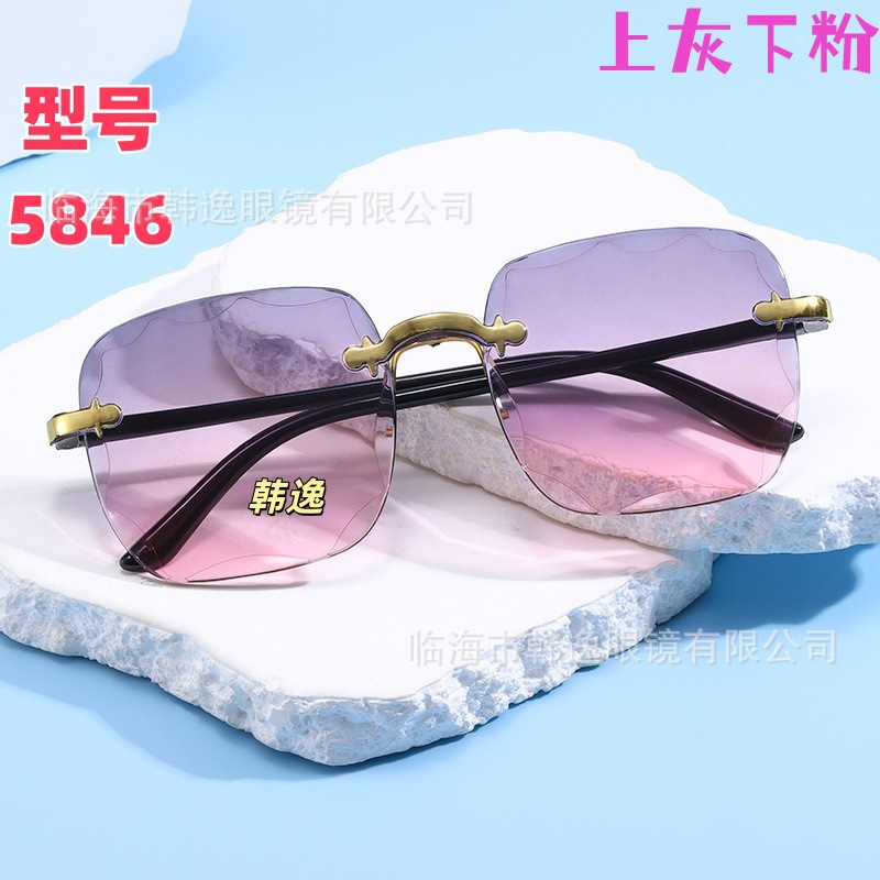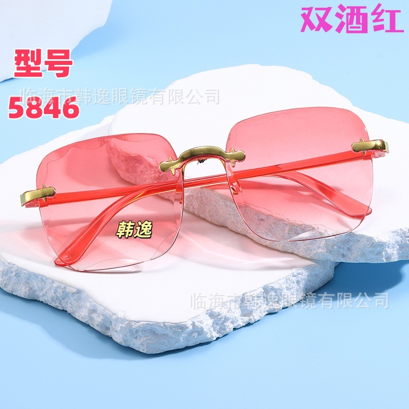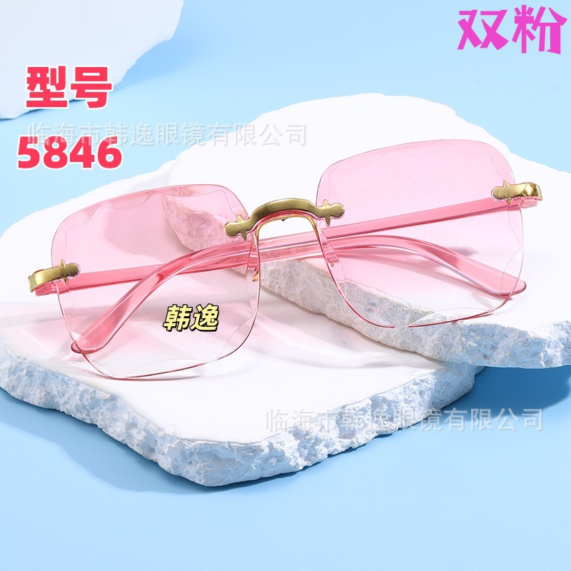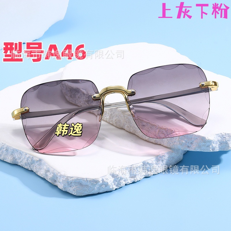 2026년 신상 개성있는 무테 컷팅 선글라스, 인터넷 인기 여성 패션 한국 스타일 자외선 차단 선글라스