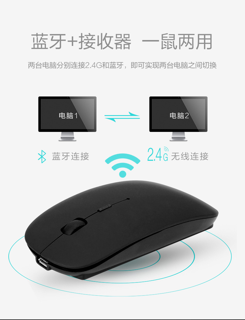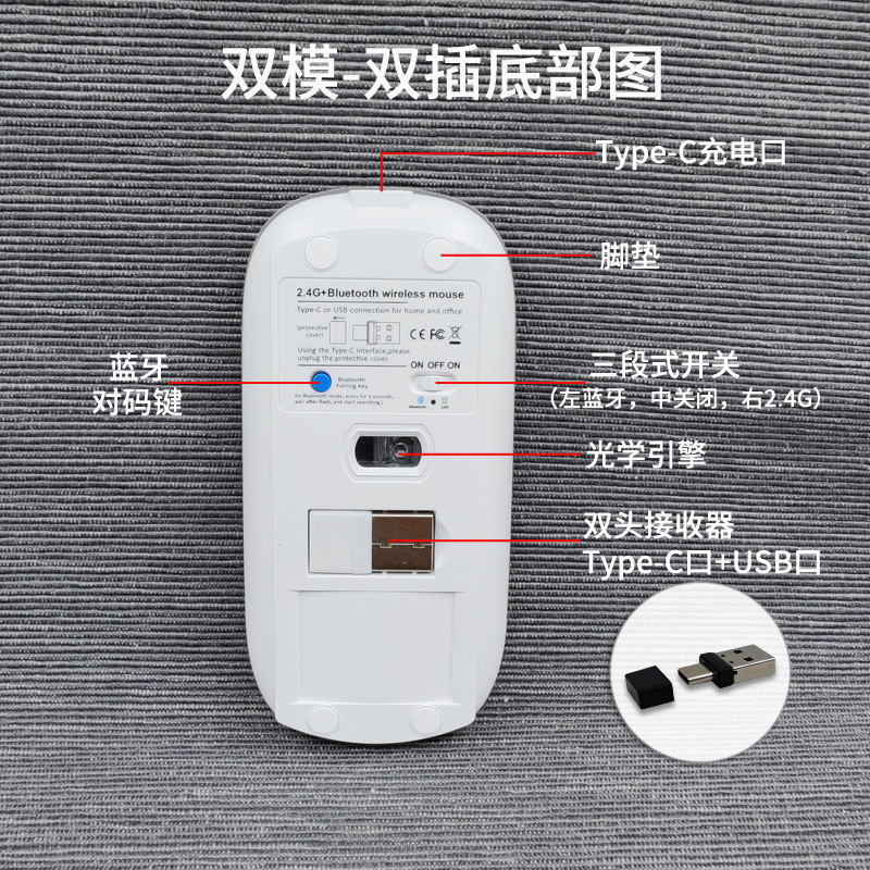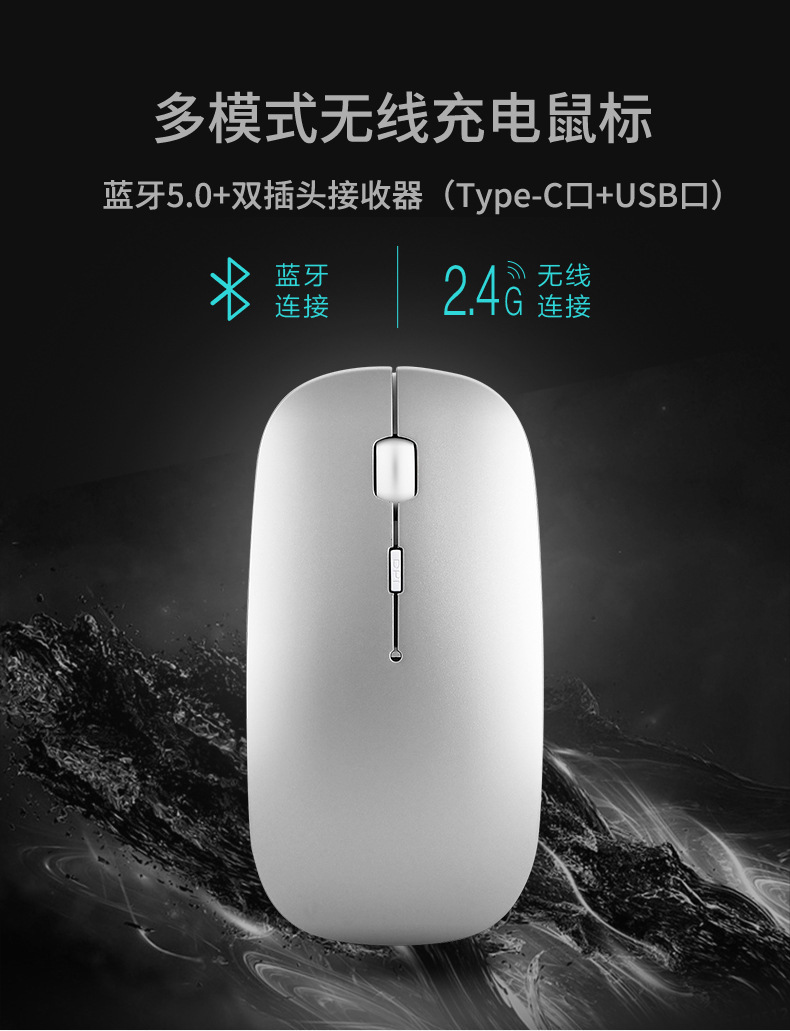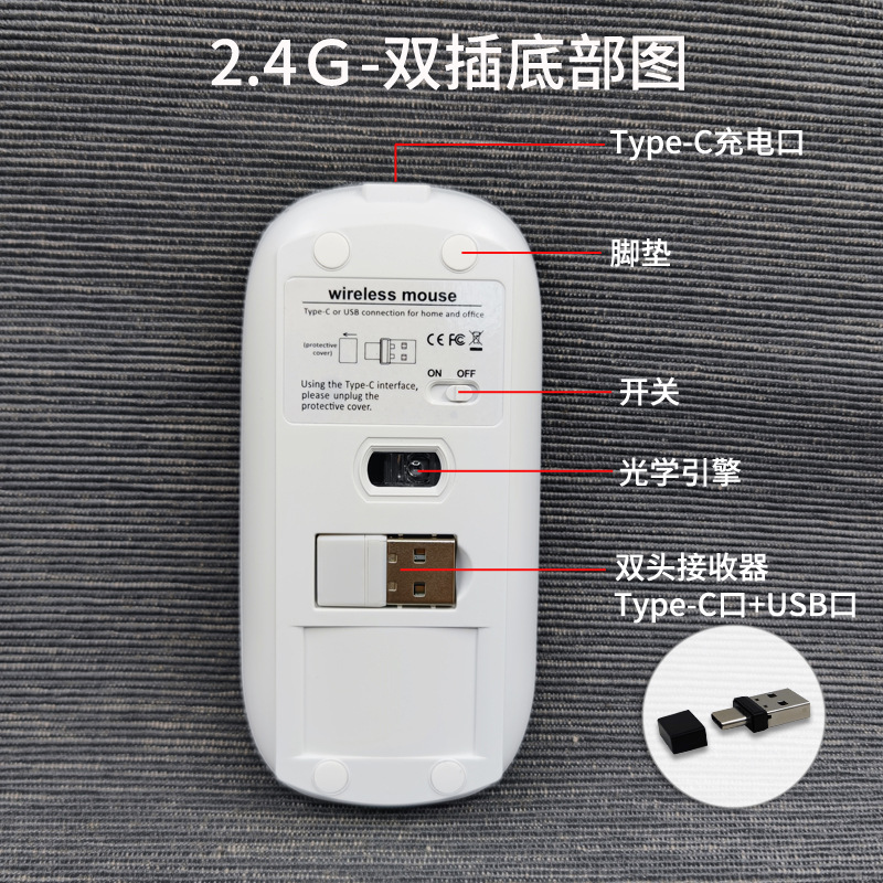 재고 도매 듀얼 플러그 듀얼 모드 2.4G 충전식 마우스 Type-C A 포트 BT5.0 블루투스 무선 마우스