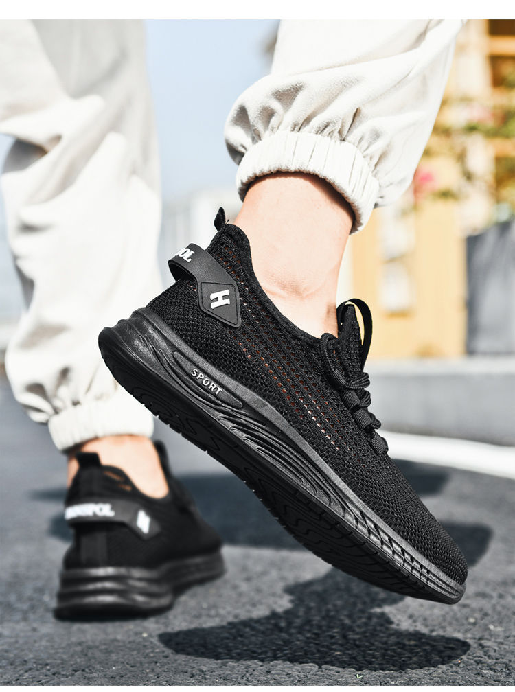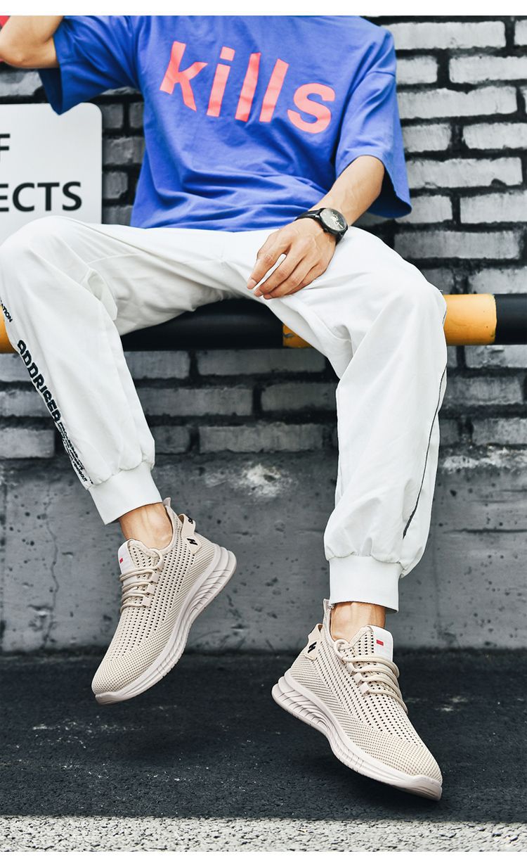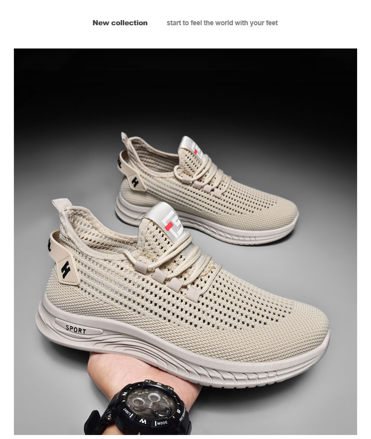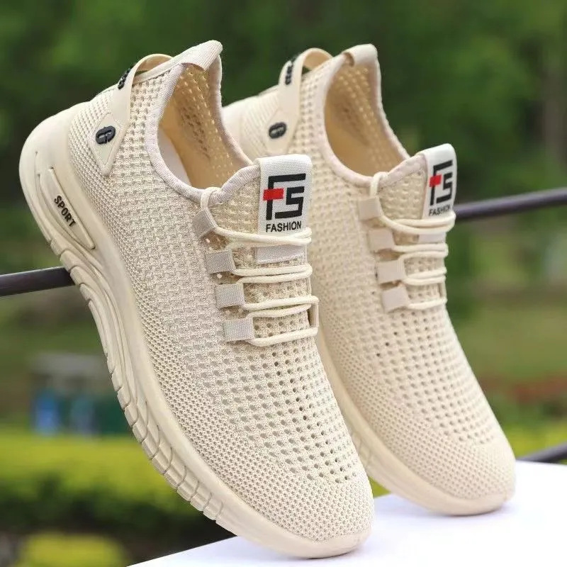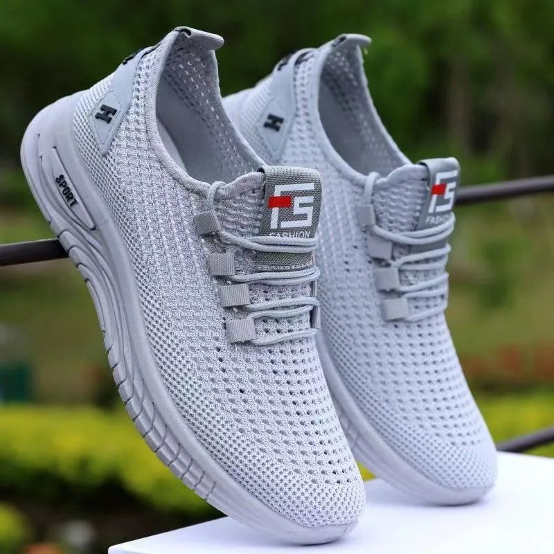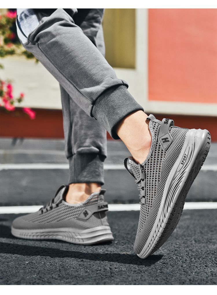 새로운 메쉬 통기성 남성 운동화 야외 캐주얼 메쉬 신발 단색 간단한 남성 운동화스토어 가기