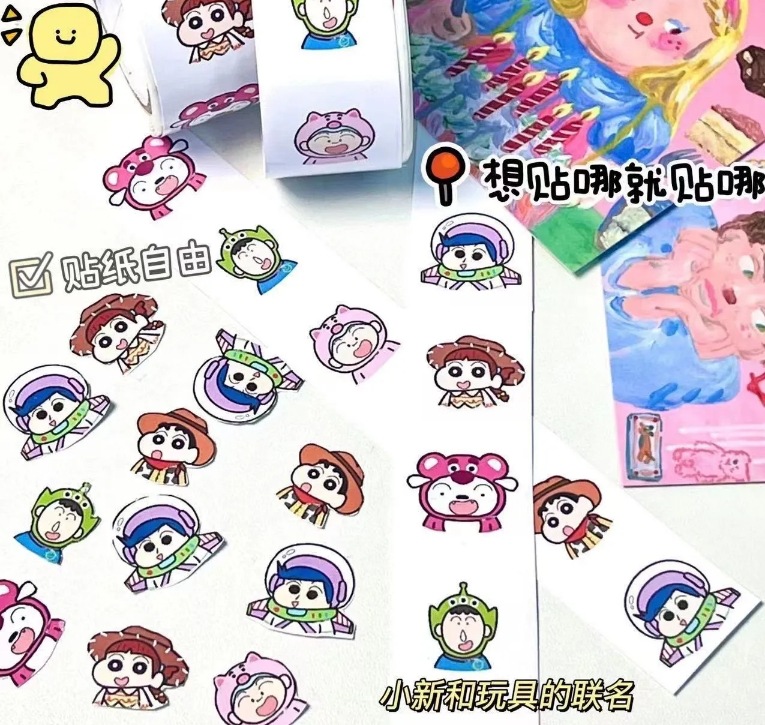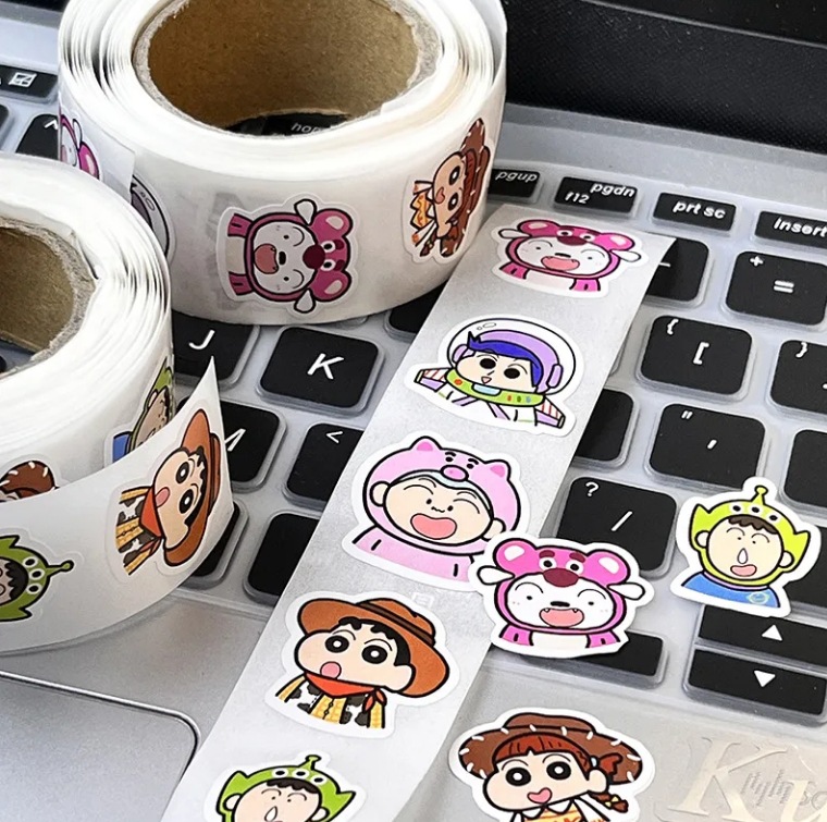 카우보이 크레용 작은 새 롤 스티커 귀여운 토이 스토리 장식 만화 스티커 손 계정 밀봉 스티커스토어 가기
