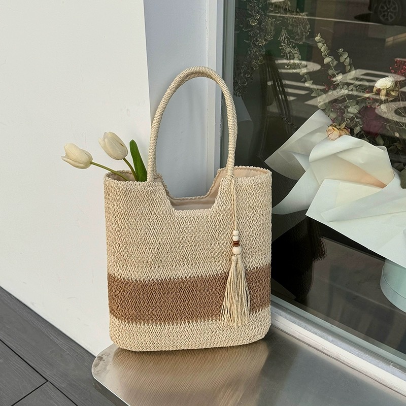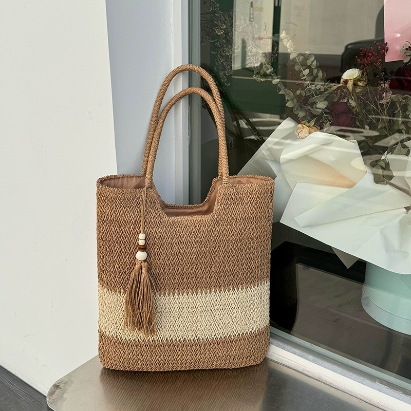공장 스트레이트 헤어 Ins 새로운 메커니즘 대비 컬러 술 짠 가방 패션 어깨 캐주얼 가방 홀리데이 비치 백